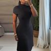 Venta al por mayor de ropa de mujer transfronteriza 2025 verano nuevo estilo europeo y americano ropa de mujer vestido negro midi sin espalda
