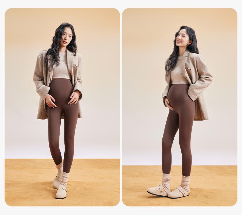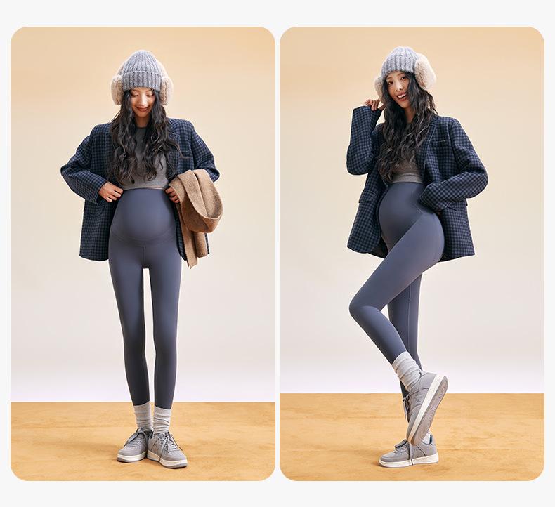 Leggings para Embarazadas Forrado de Felpa Grueso Nuevo Estilo Pantalones Shark para Embarazadas Otoño e Invierno Ropa Exterior Pantalones de Yoga Pantalones Cálidos Pantalones de Maternidad