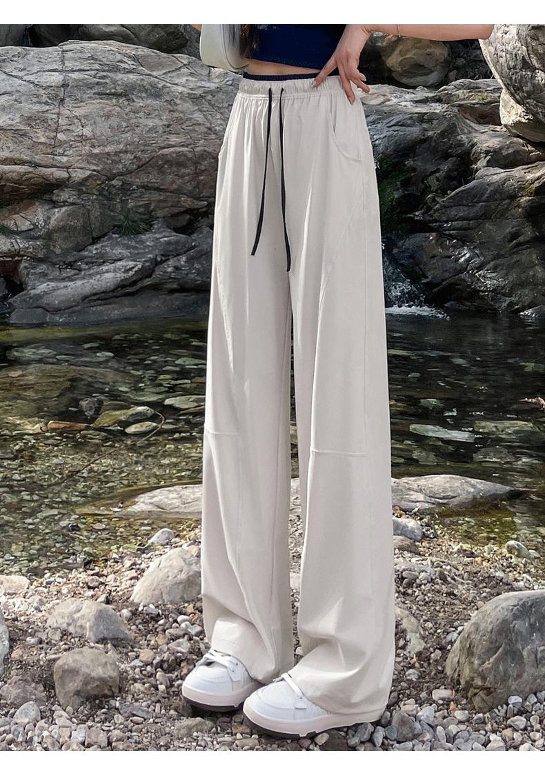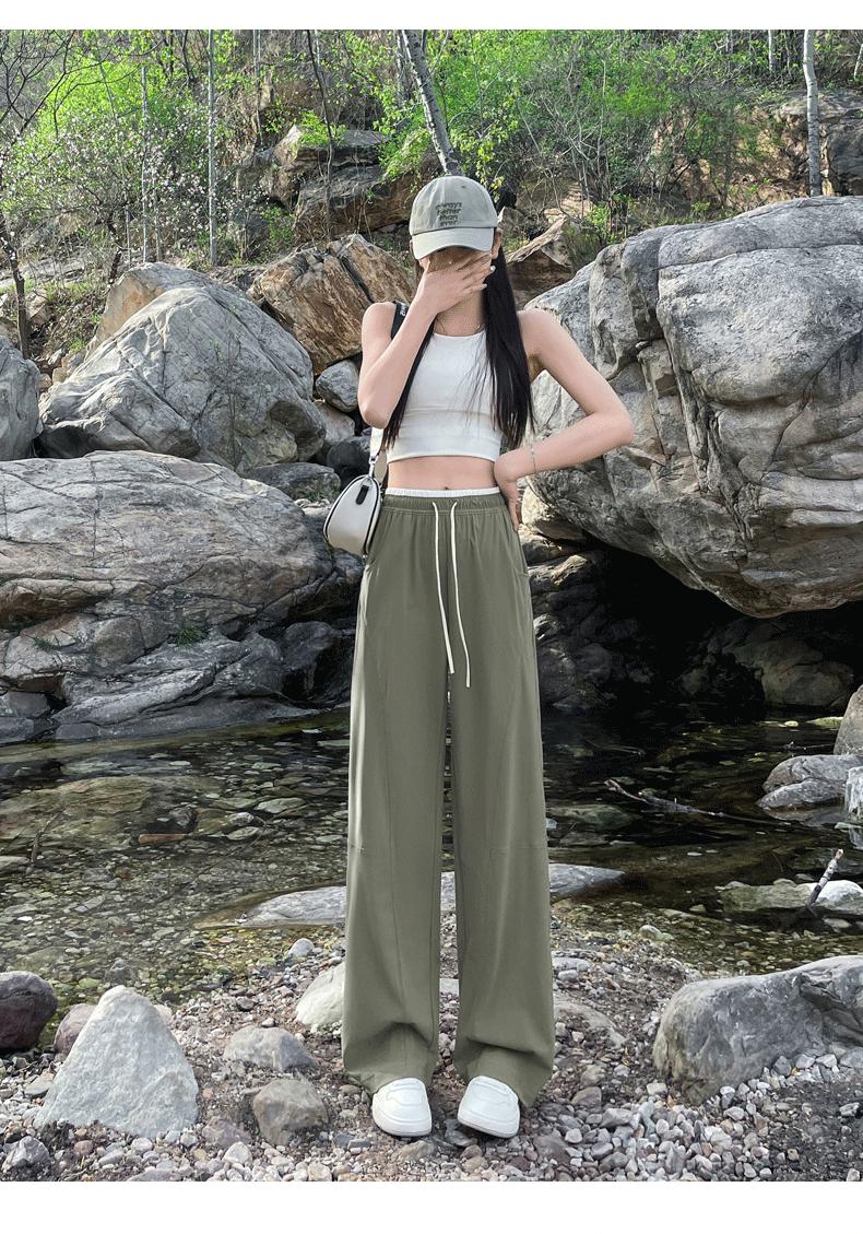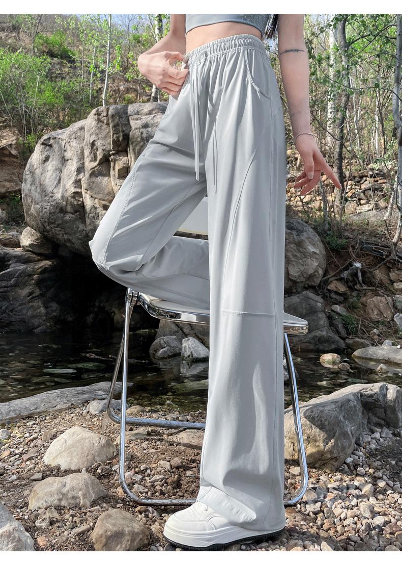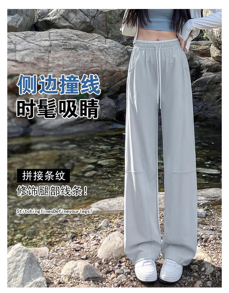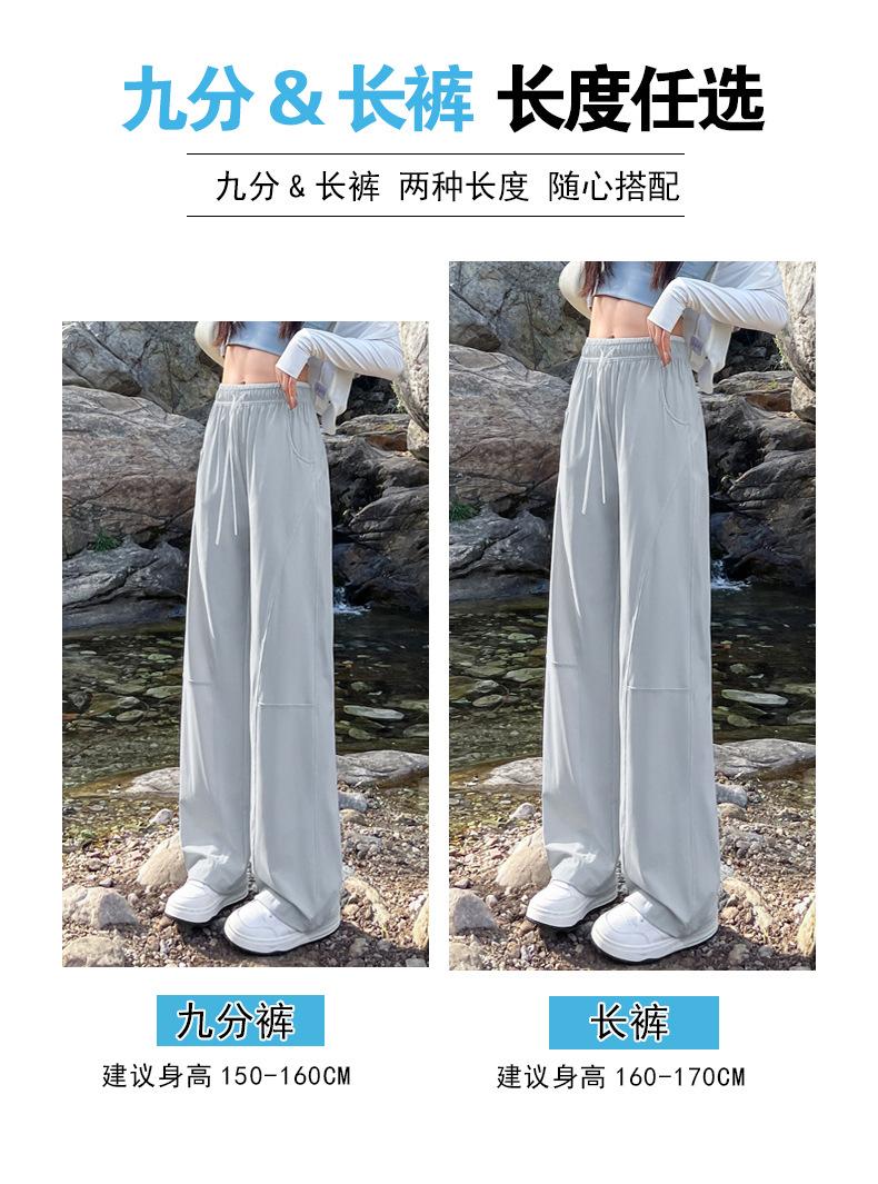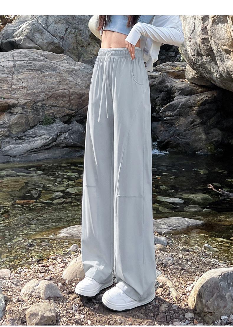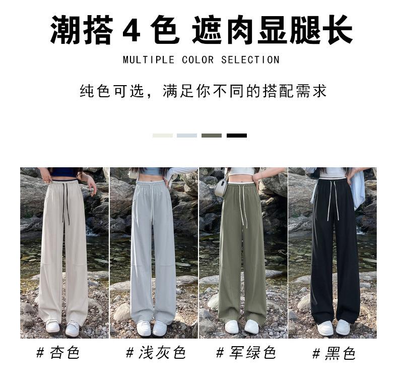 Pantalones de Pierna Ancha de Secado Rápido de Seda de Hielo para Mujer 2025 Nuevos Pantalones Rectos Casuales Sueltos Tipo Banana para Personas Pequeñas Pantalones Ligeros de Verano