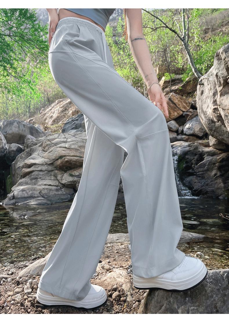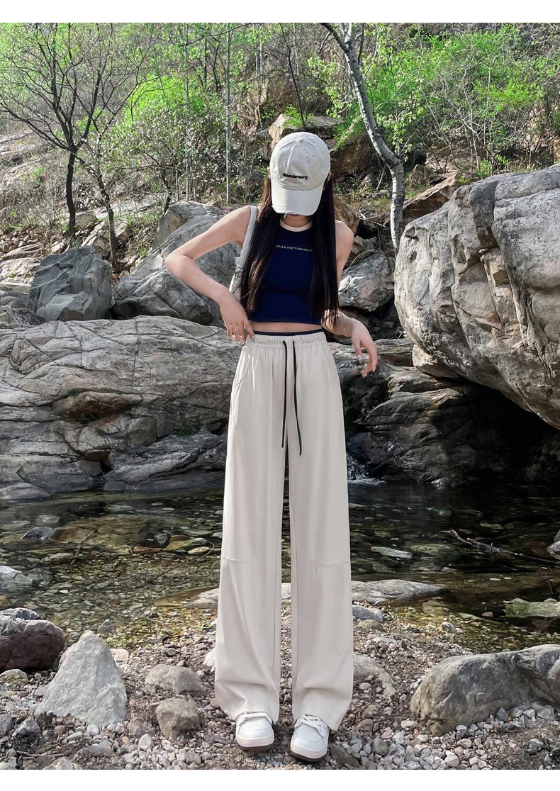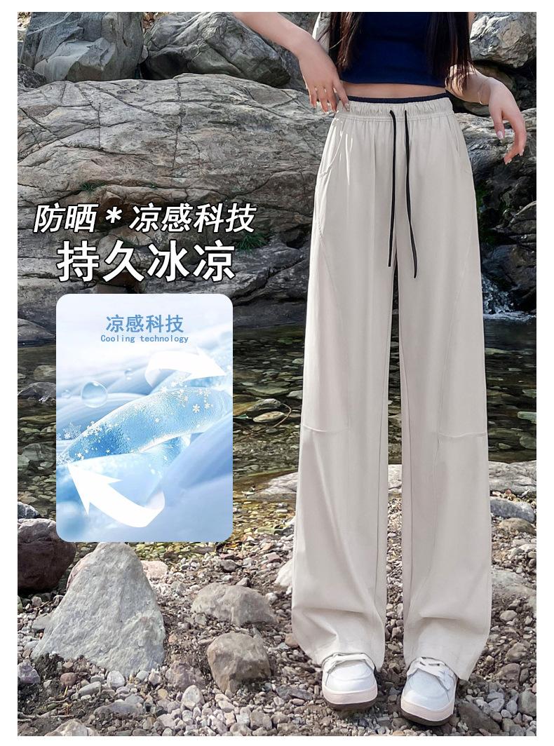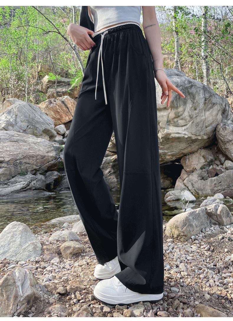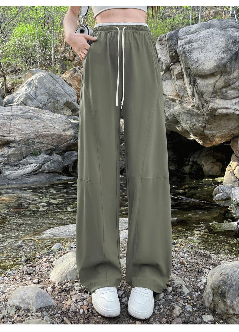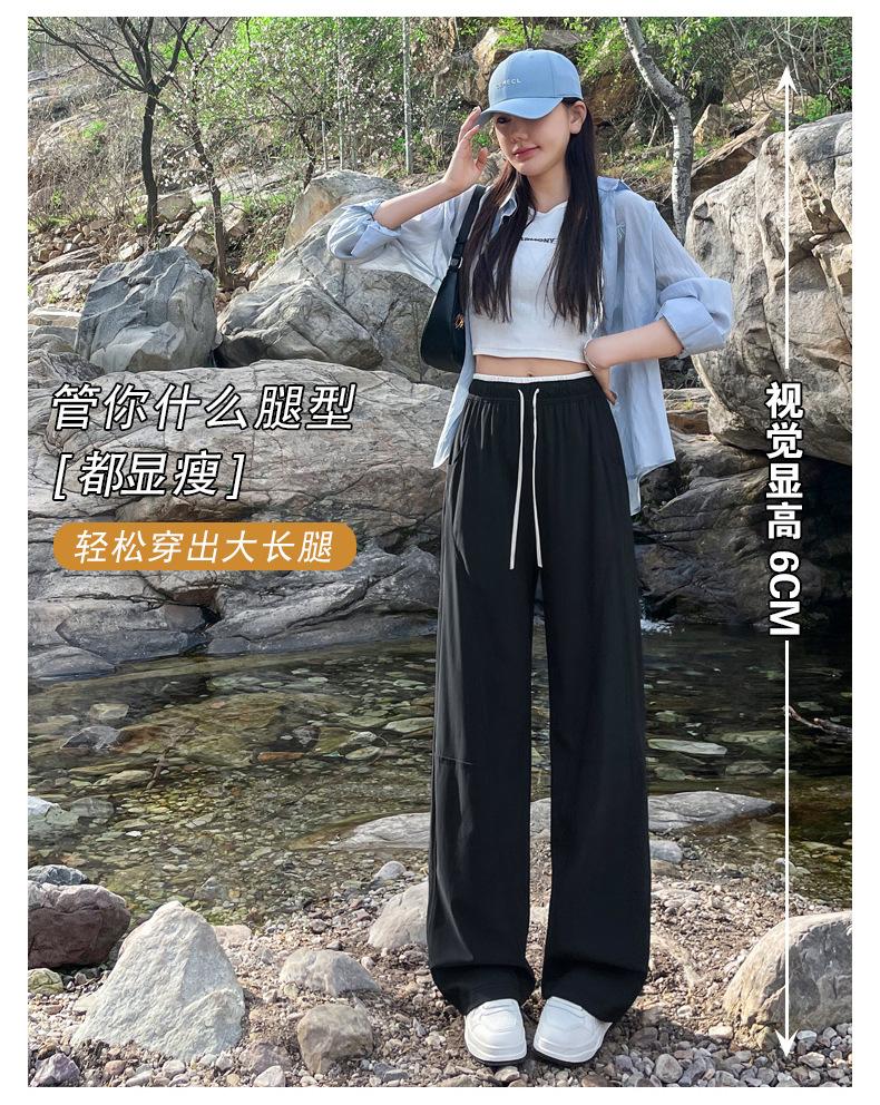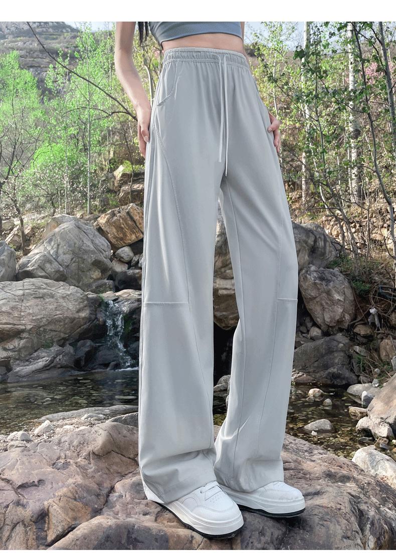Pantalones de Pierna Ancha de Secado Rápido de Seda de Hielo para Mujer 2025 Nuevos Pantalones Rectos Casuales Sueltos Tipo Banana para Personas Pequeñas Pantalones Ligeros de Verano