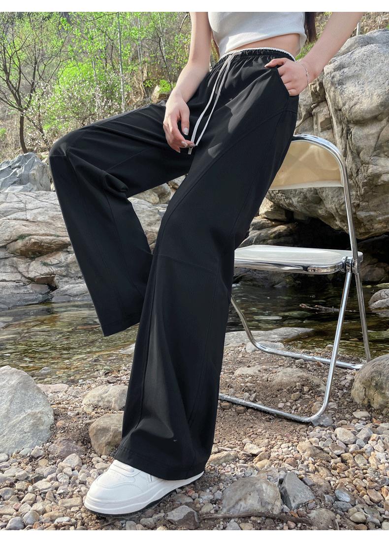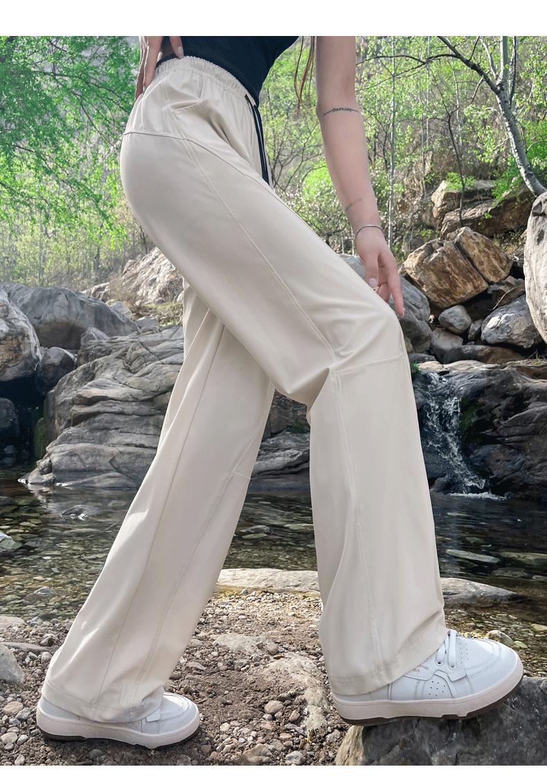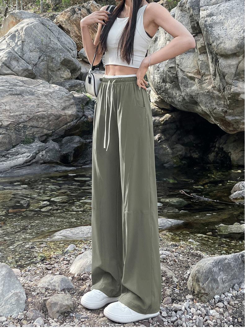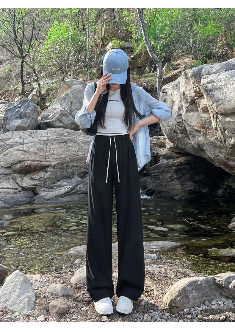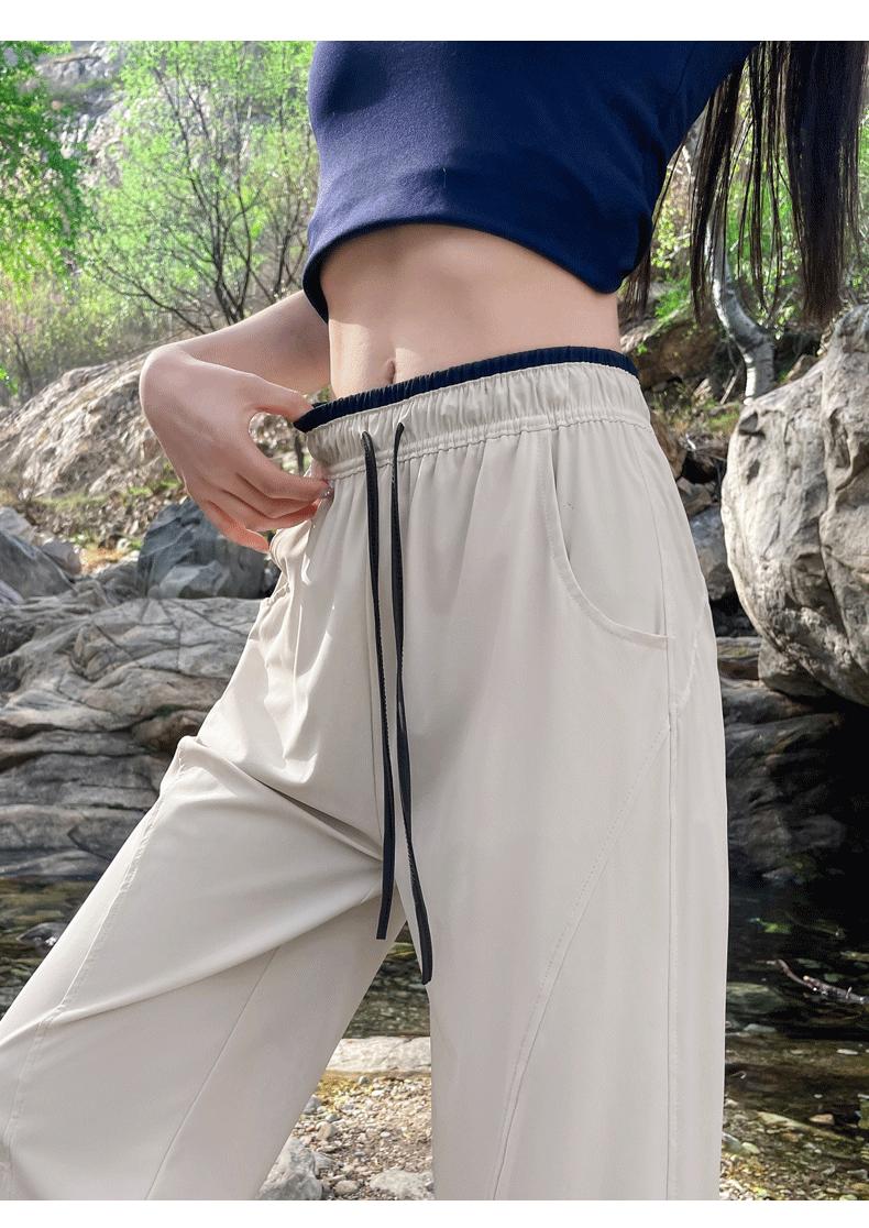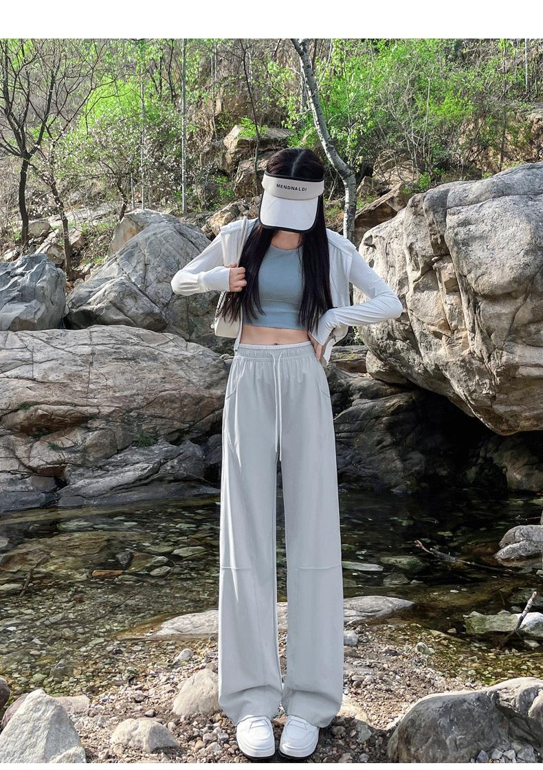 Pantalones de Pierna Ancha de Secado Rápido de Seda de Hielo para Mujer 2025 Nuevos Pantalones Rectos Casuales Sueltos Tipo Banana para Personas Pequeñas Pantalones Ligeros de Verano