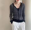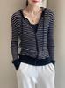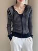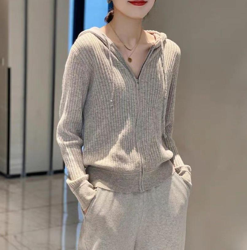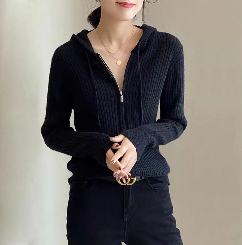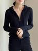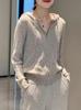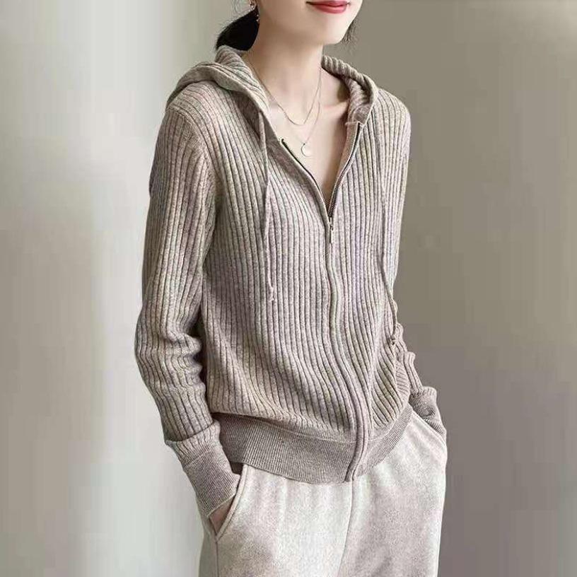 Cárdigan de punto con capucha moderno que reduce la edad 2025 Otoño Nuevo sentido del diseño Suelto Cremallera Casual Top a rayas Marea