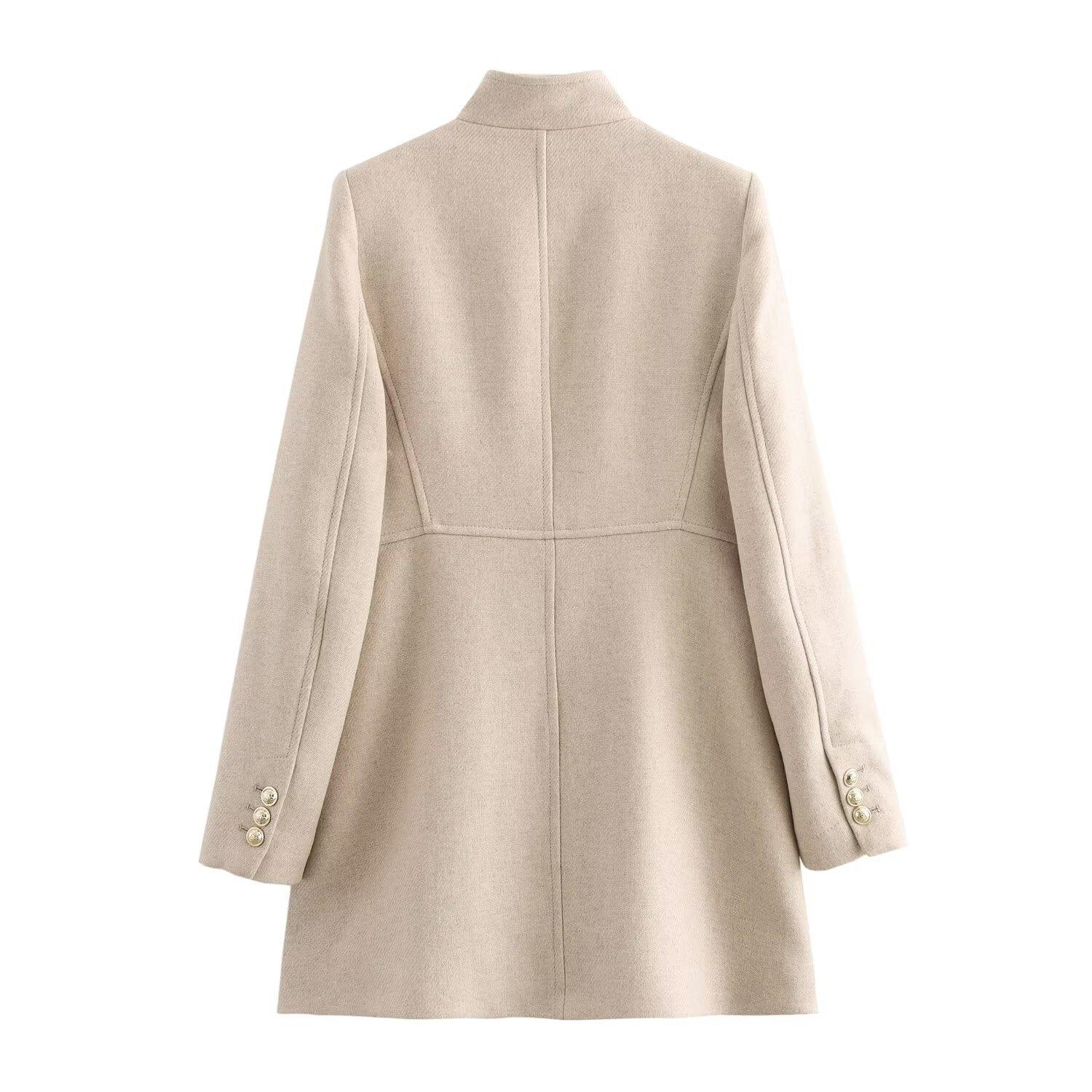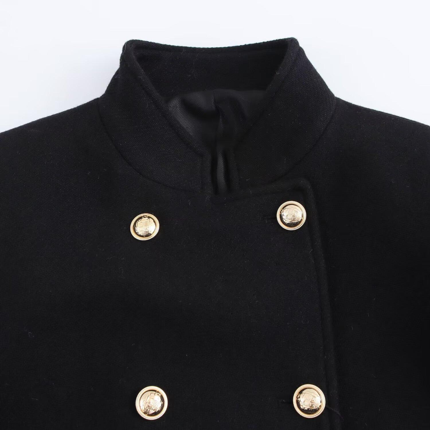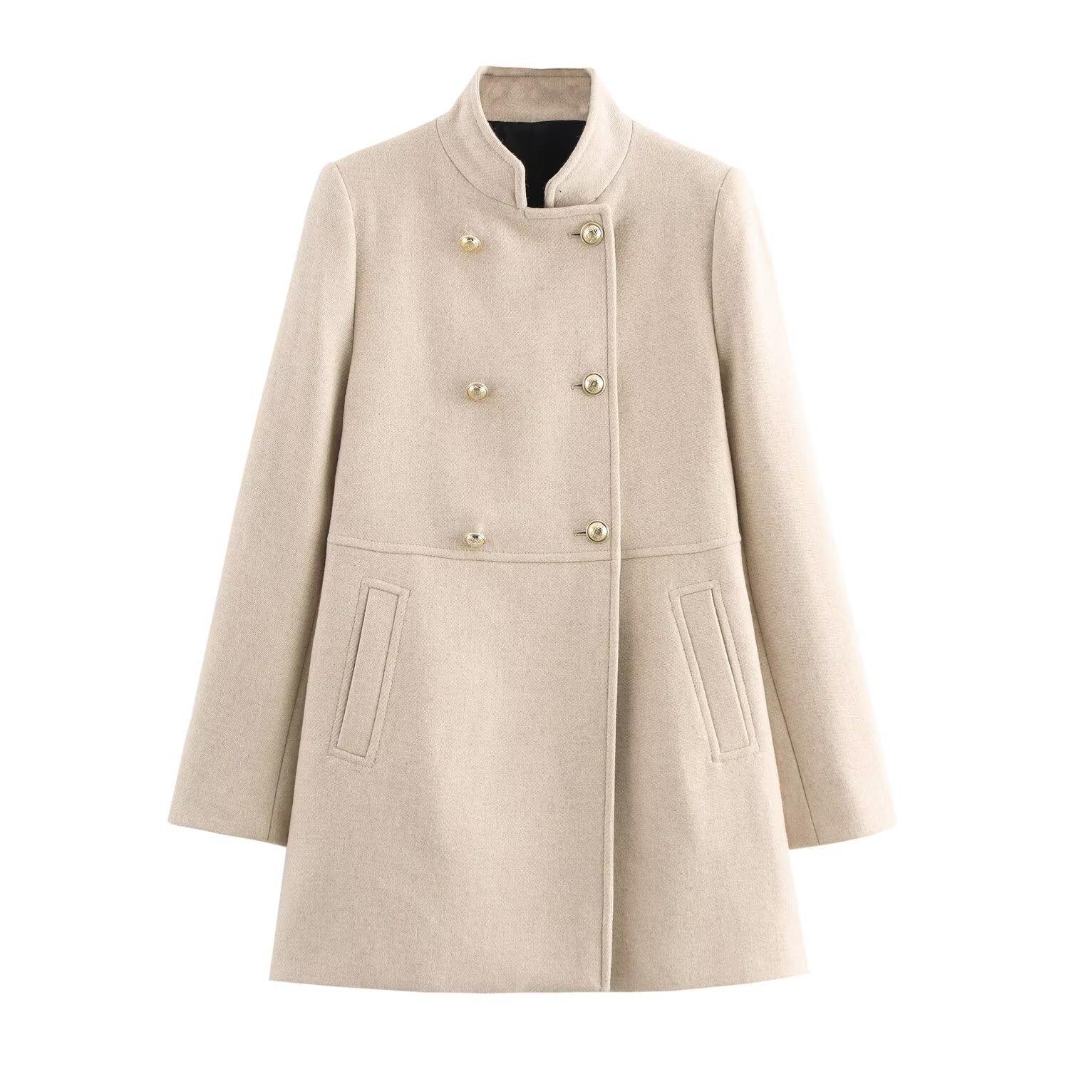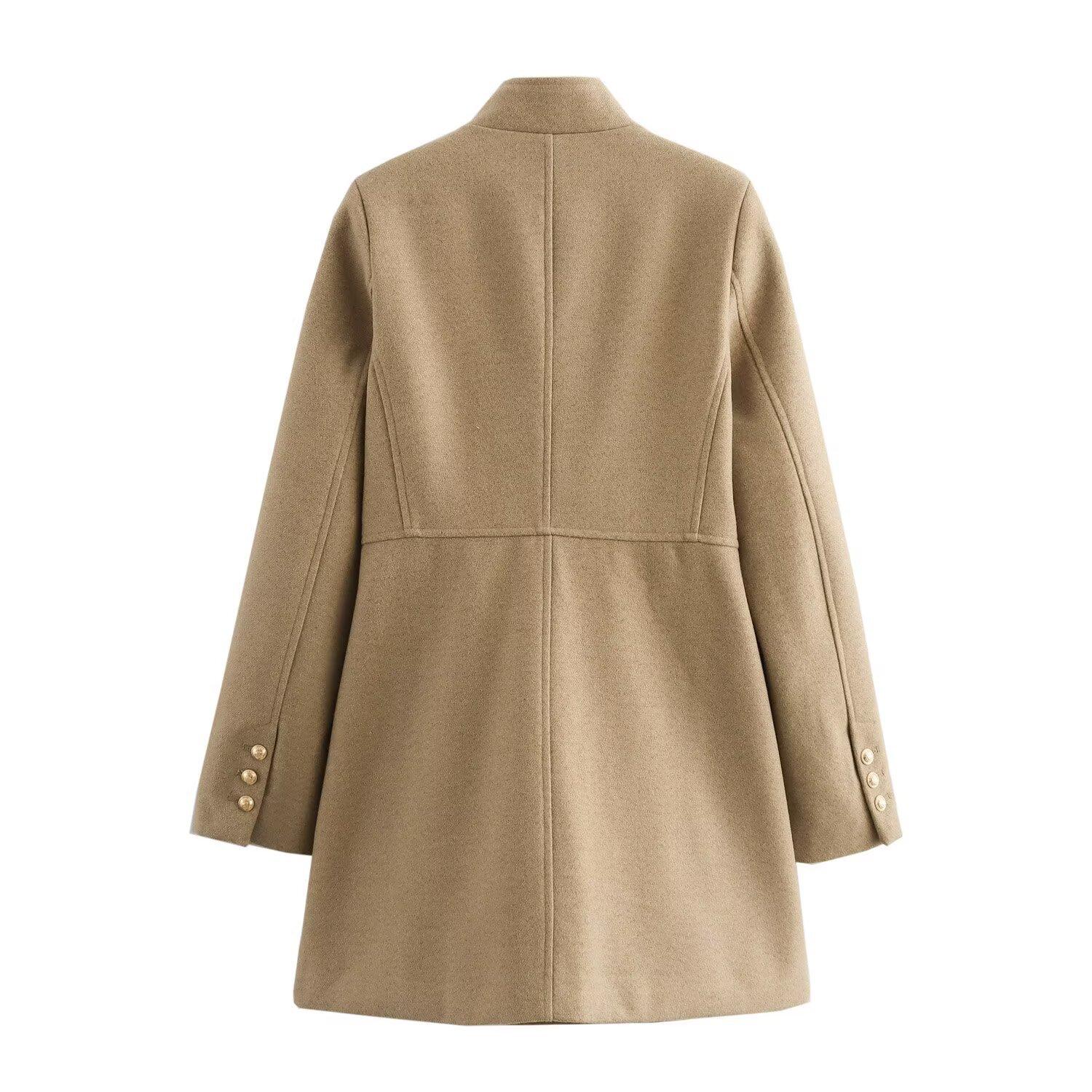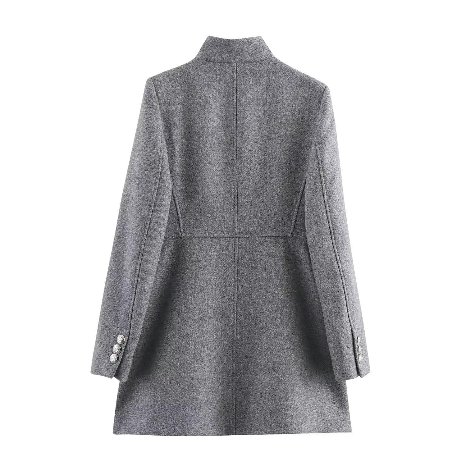 Abrigo chaqueta cruzado de moda versátil casual holgado de cuello alto para mujer otoño/invierno 2025 nuevo 9037141