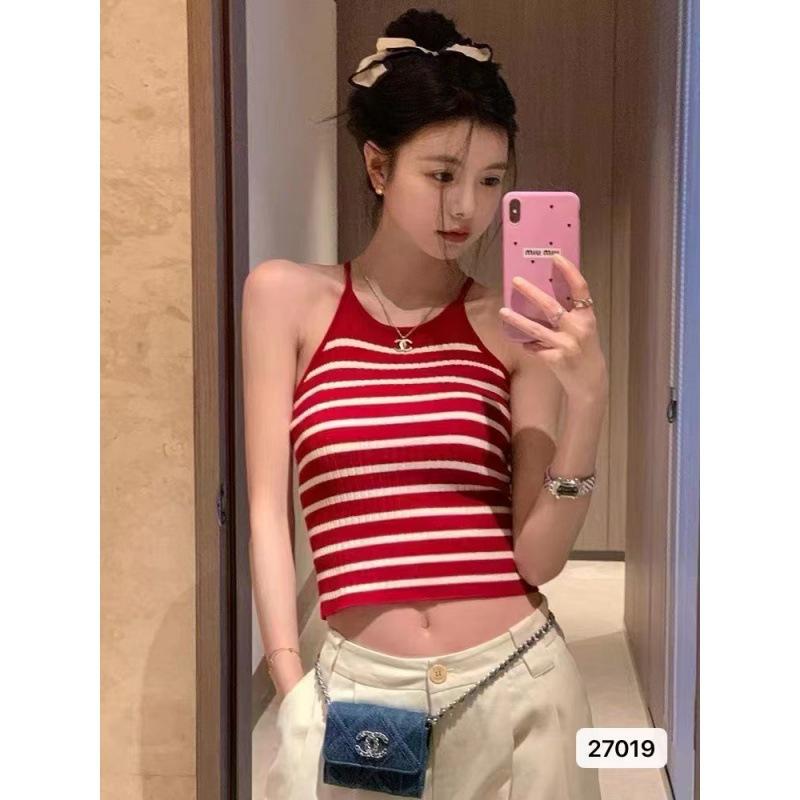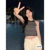 Camisola Cruzada para Mujer Verano Ropa Exterior Primavera y Otoño Camisa Interior de Capas ins Rayas Contraste Axila Top de Punto
