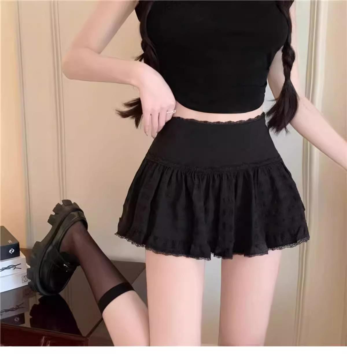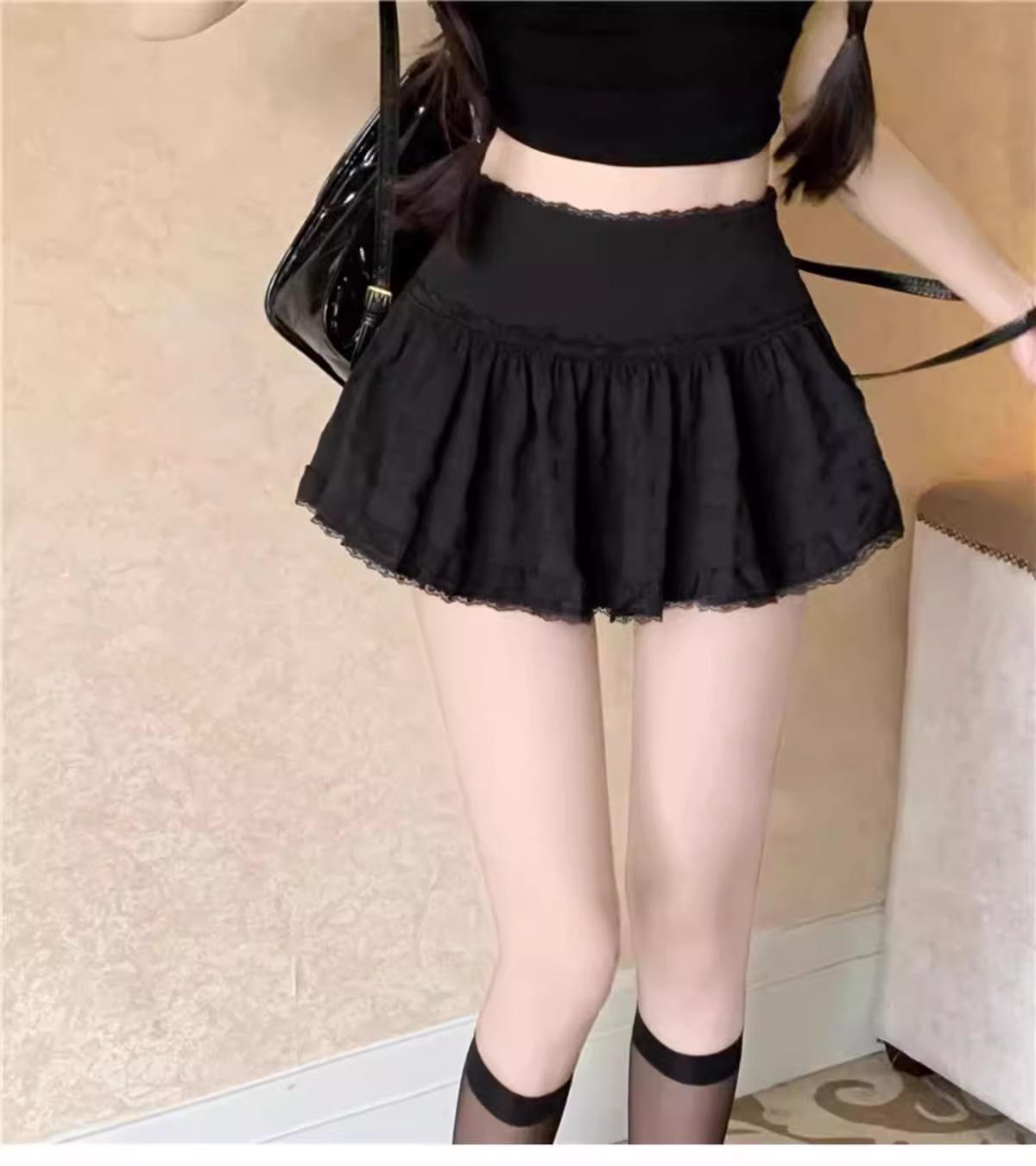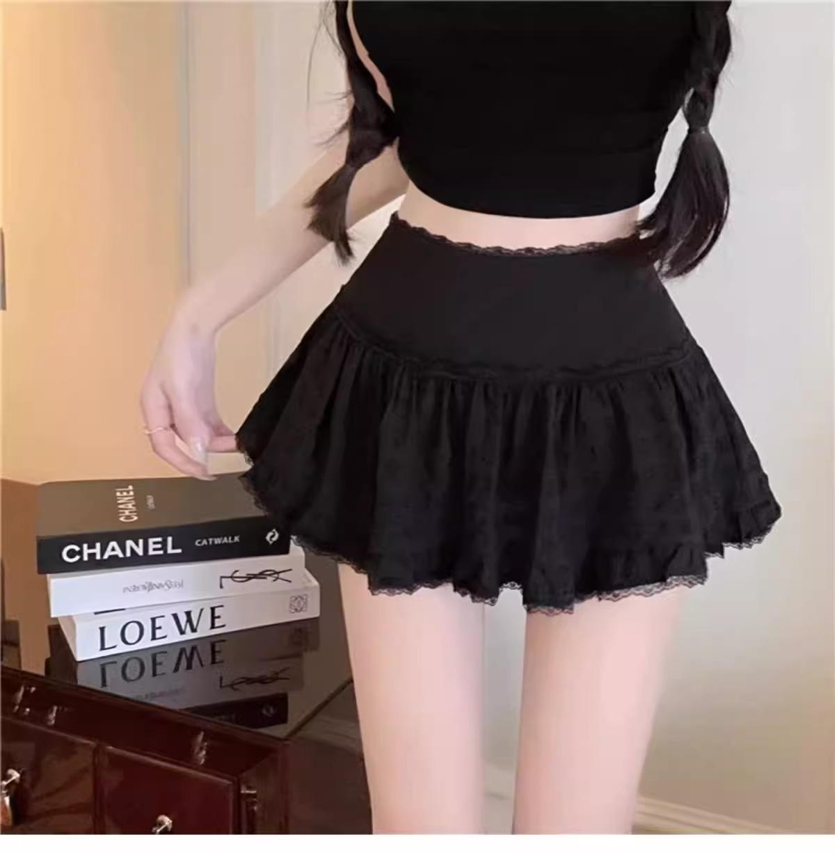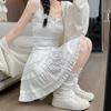 Falda de Encaje Blanco para Mujeres Pequeñas Verano Cintura Alta Falda A-Line Falda Pastel Esponjosa Falda Estilo Ballet XS