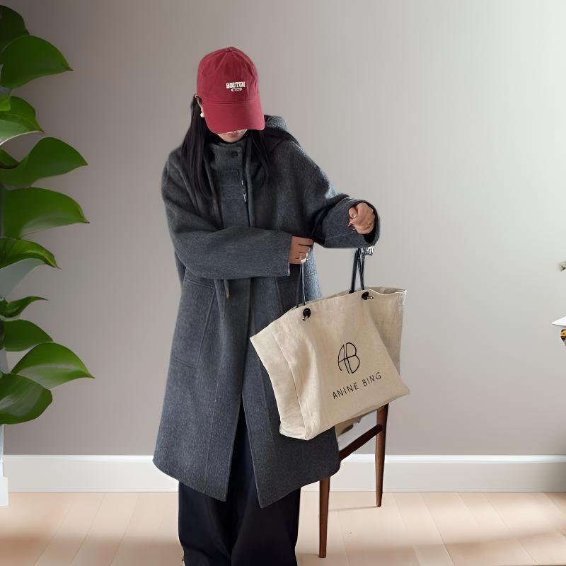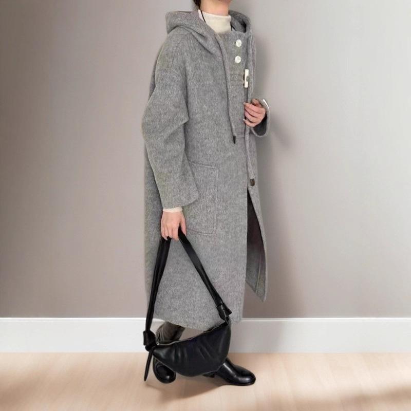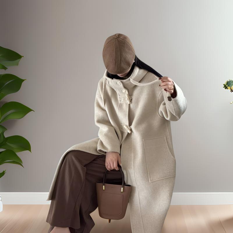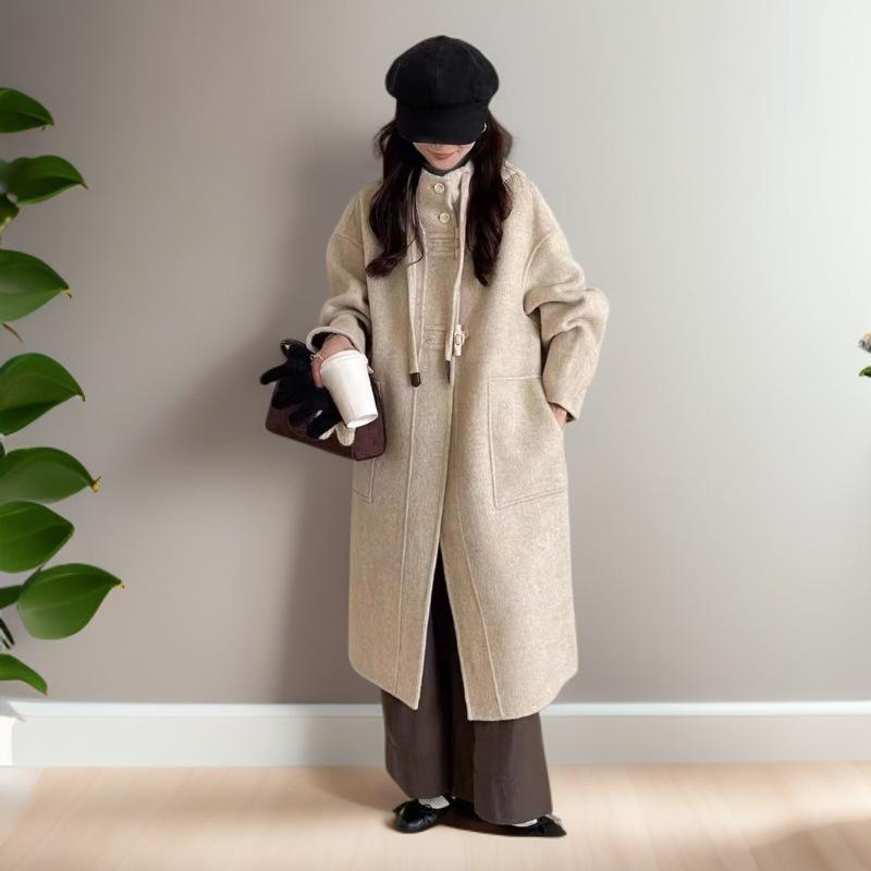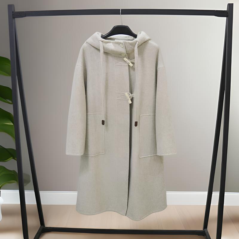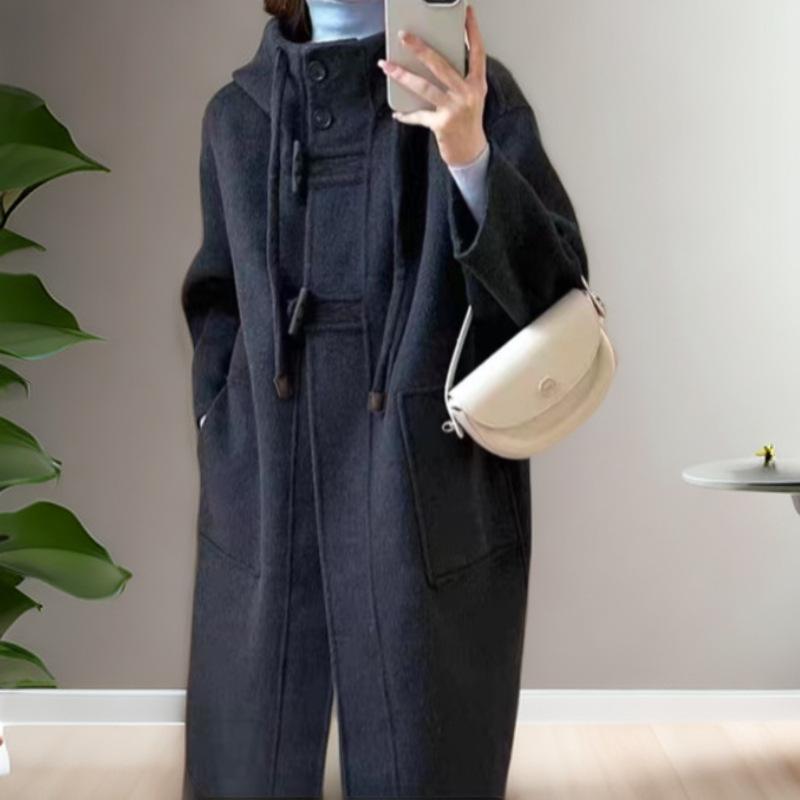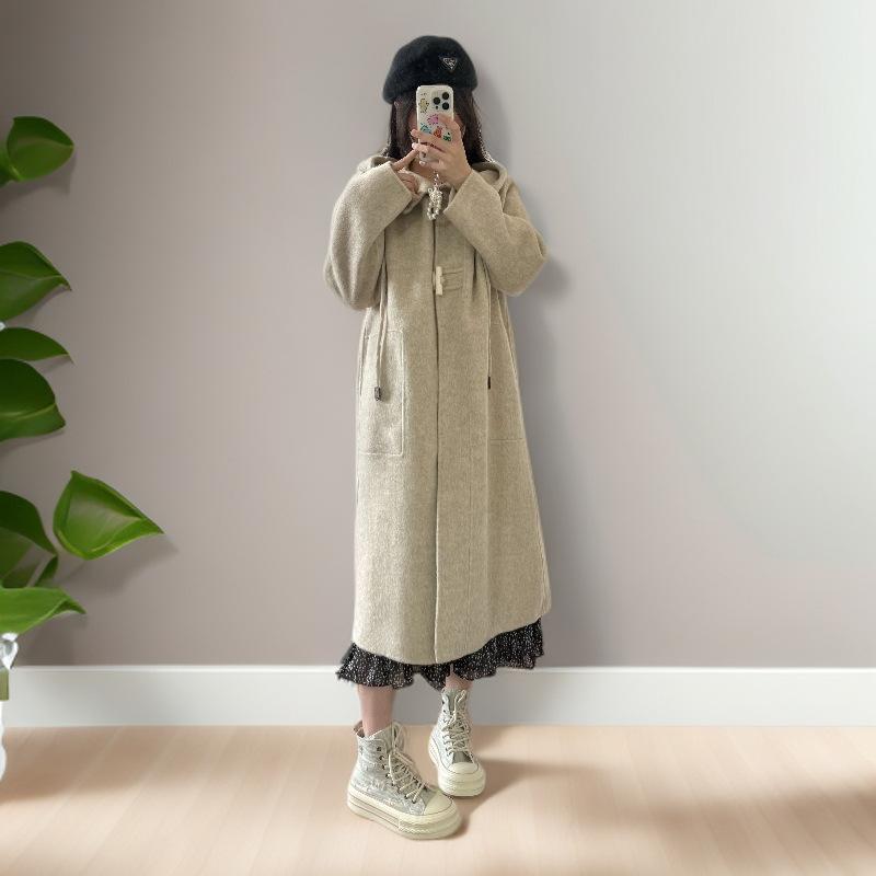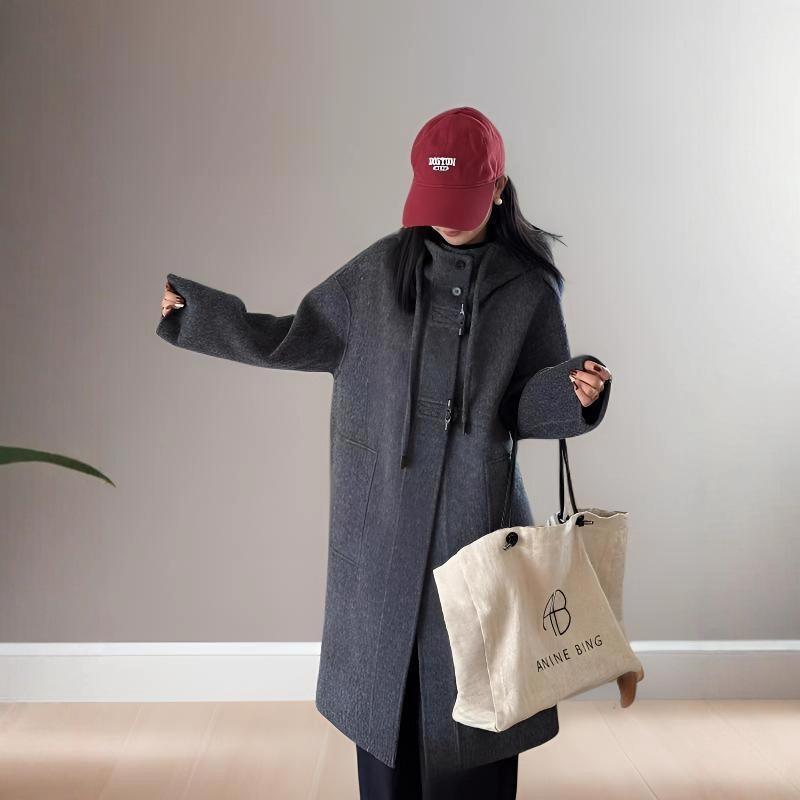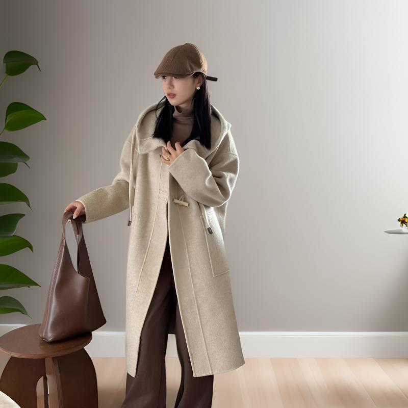 Abrigo de Invierno/Otoño 2025 para Mujer Estilo Coreano Cashmere Doble Faz con Capucha y Toggles Mezcla Gruesa de Lana Estilo Temperamental para Ir al Trabajo