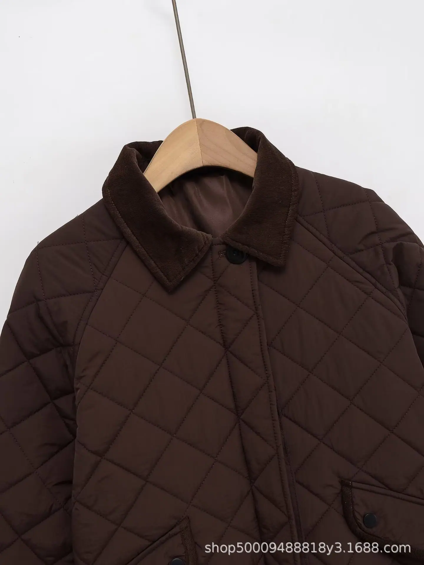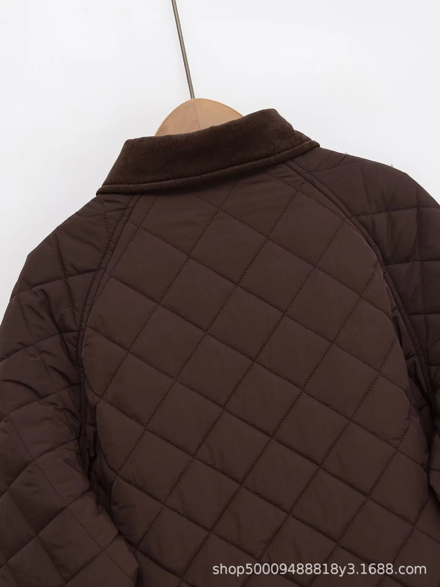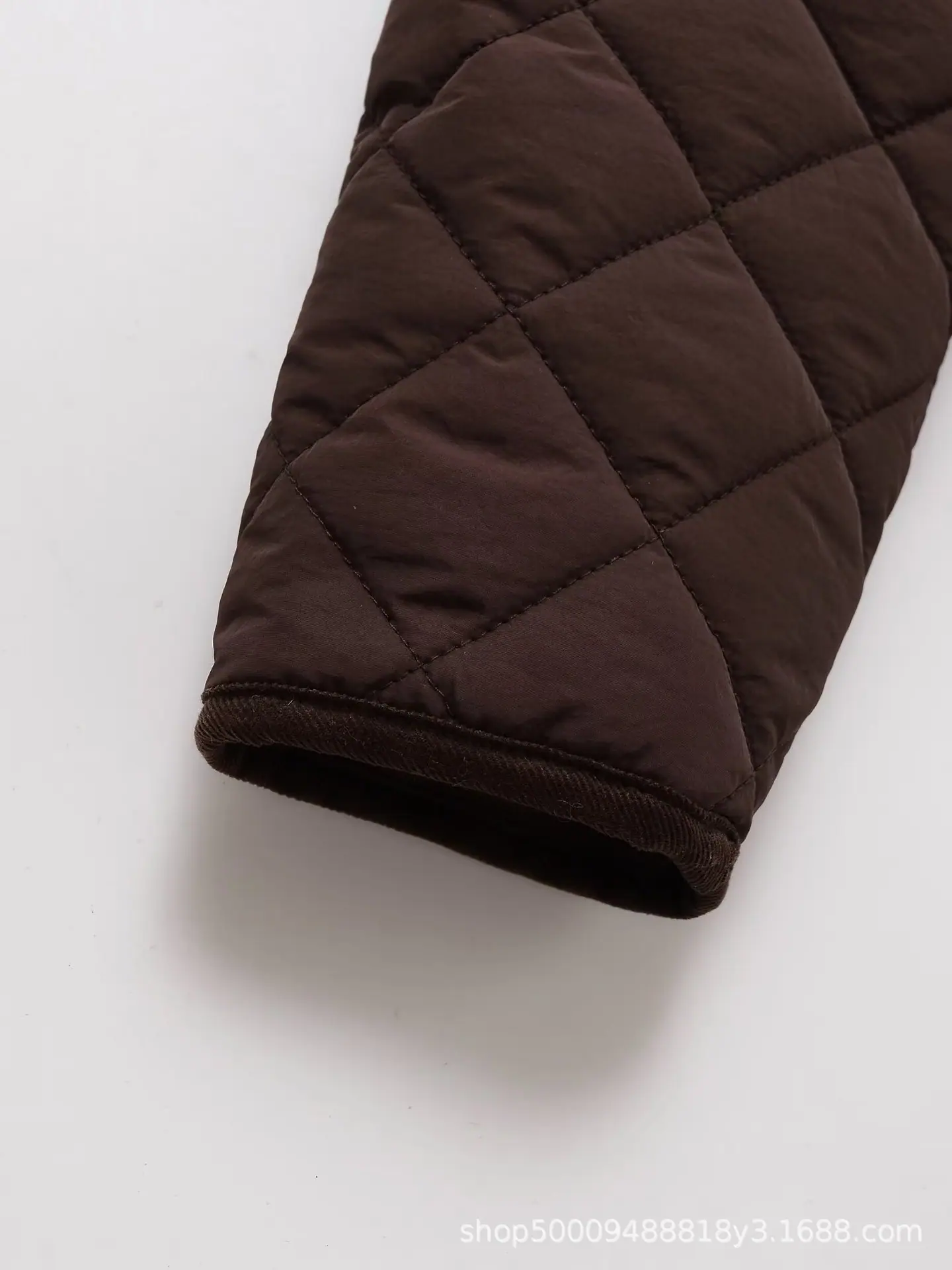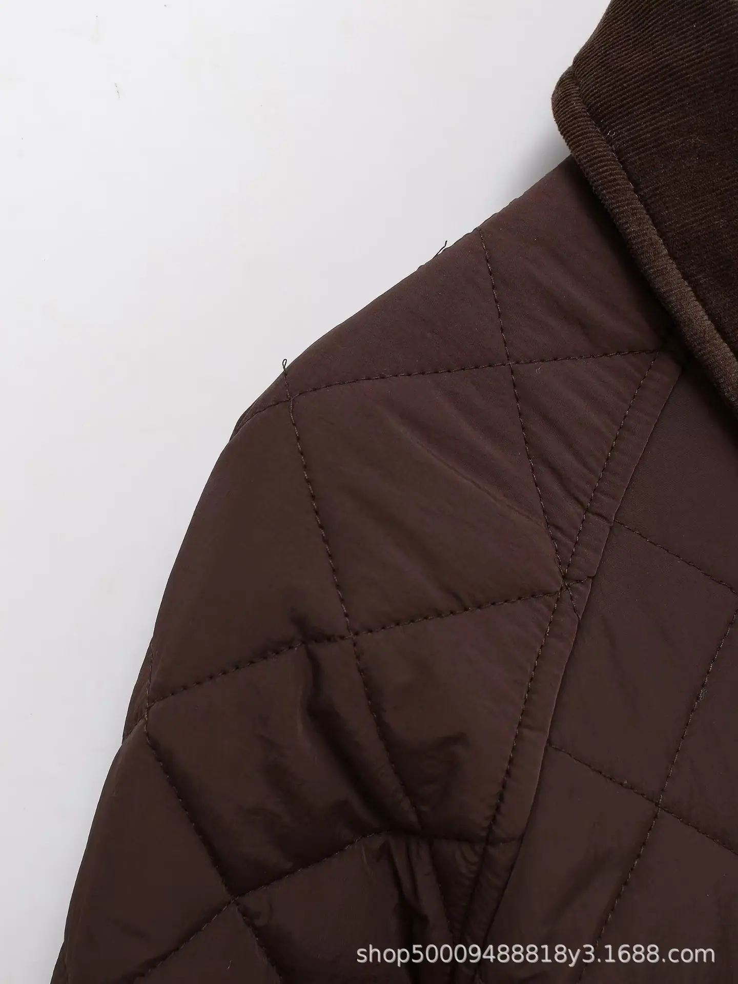 2025 Otoño/Invierno Nuevo Estilo Europeo y Americano Transfronterizo Moda Femenina Calle Patrón Diamante Casual Chaqueta Acolchada de Algodón