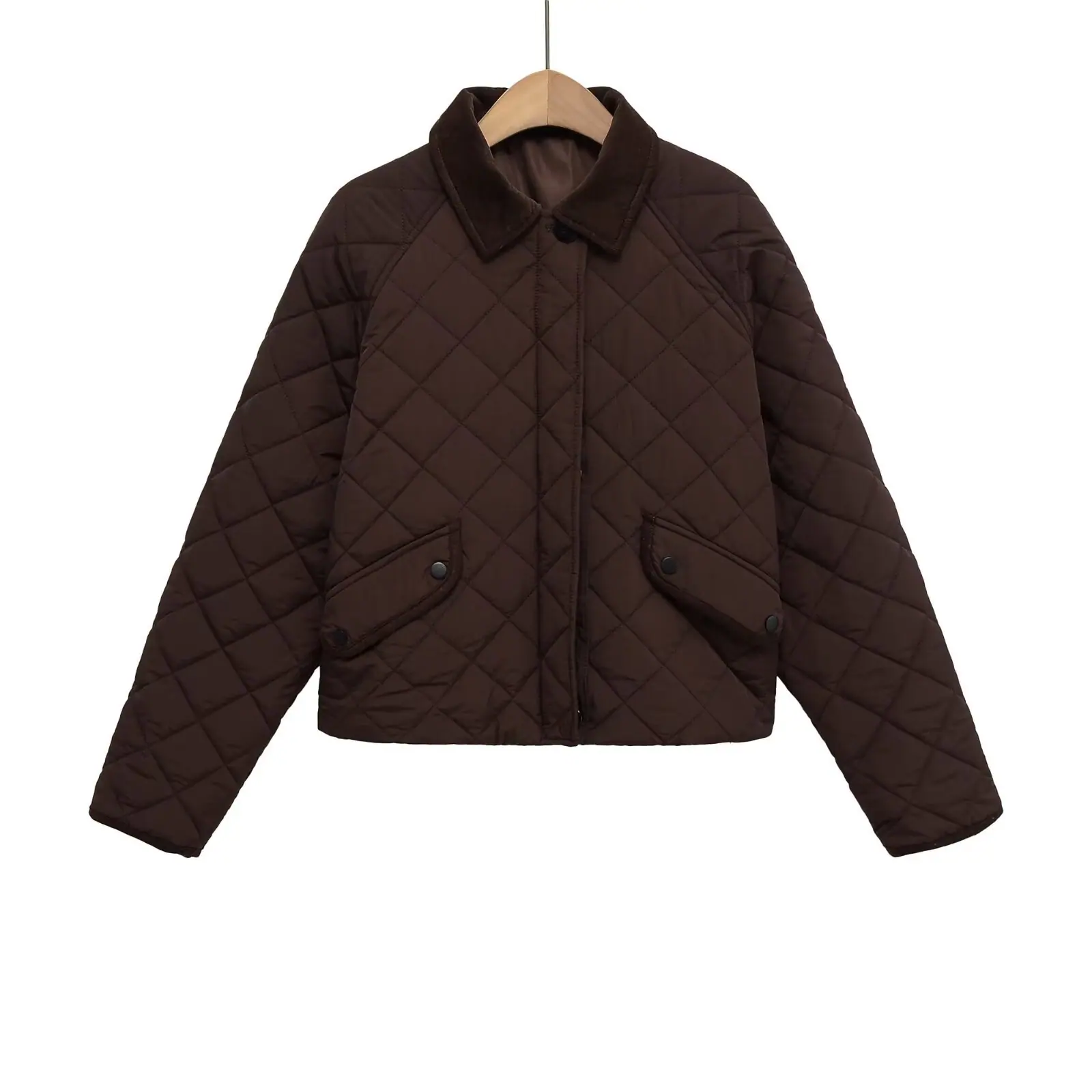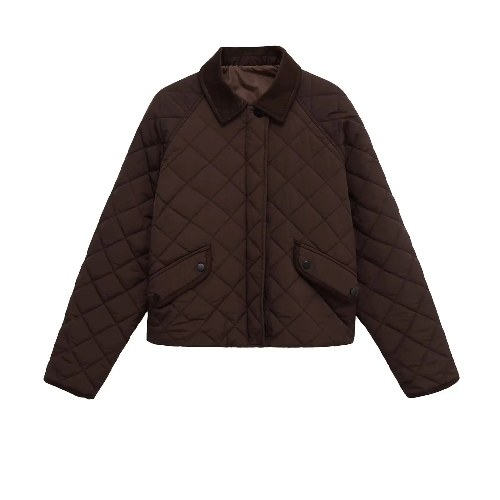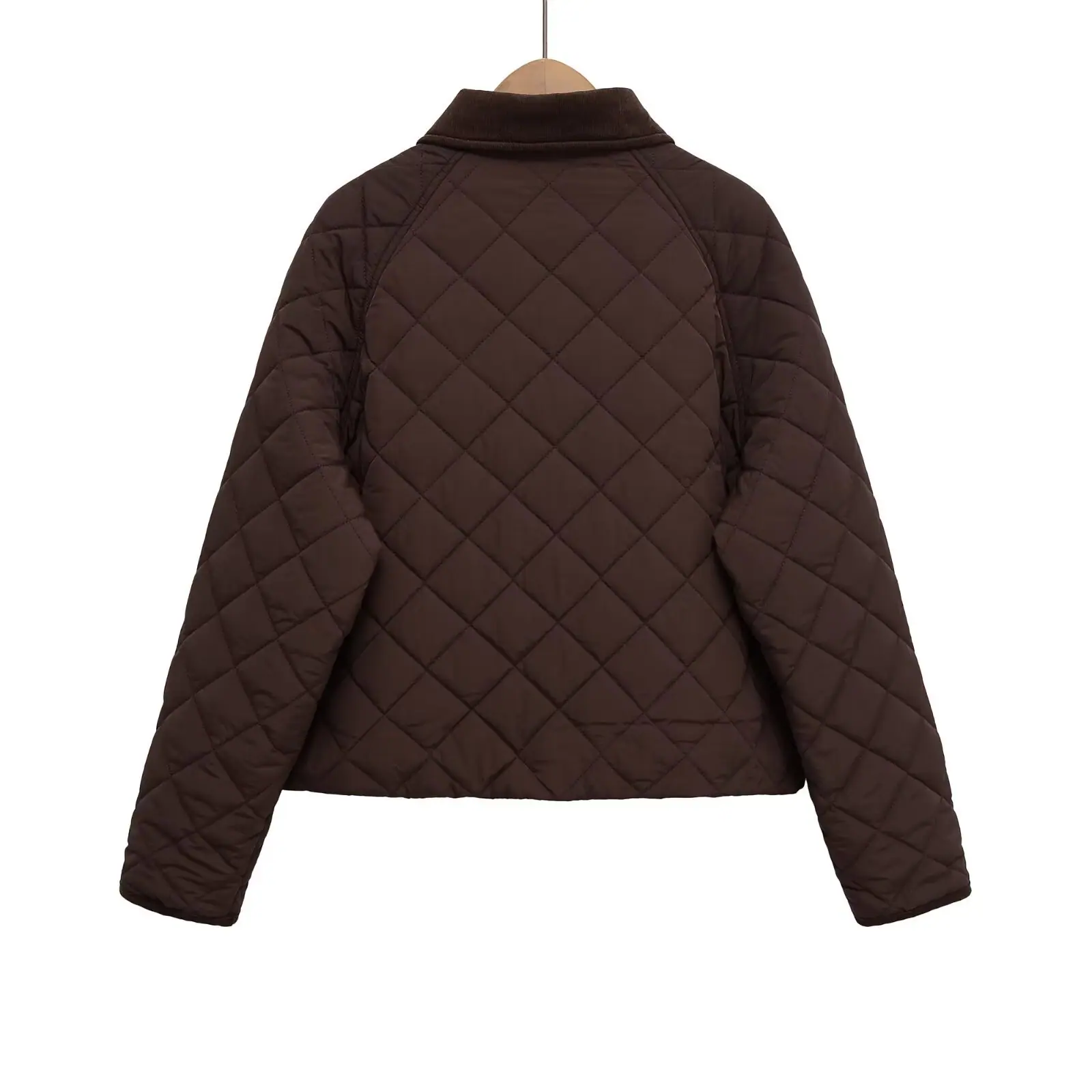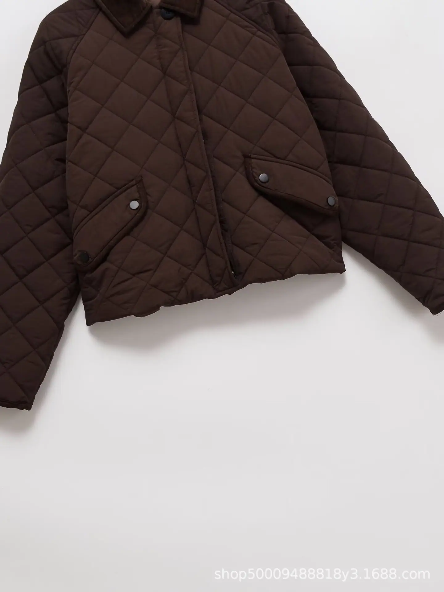 2025 Otoño/Invierno Nuevo Estilo Europeo y Americano Transfronterizo Moda Femenina Calle Patrón Diamante Casual Chaqueta Acolchada de Algodón