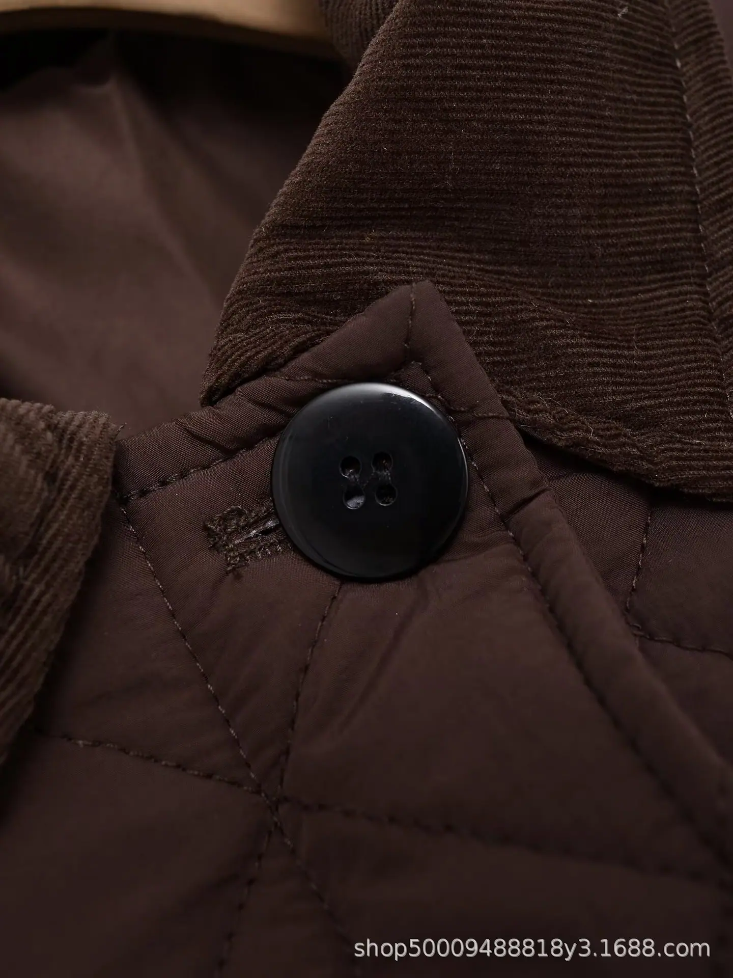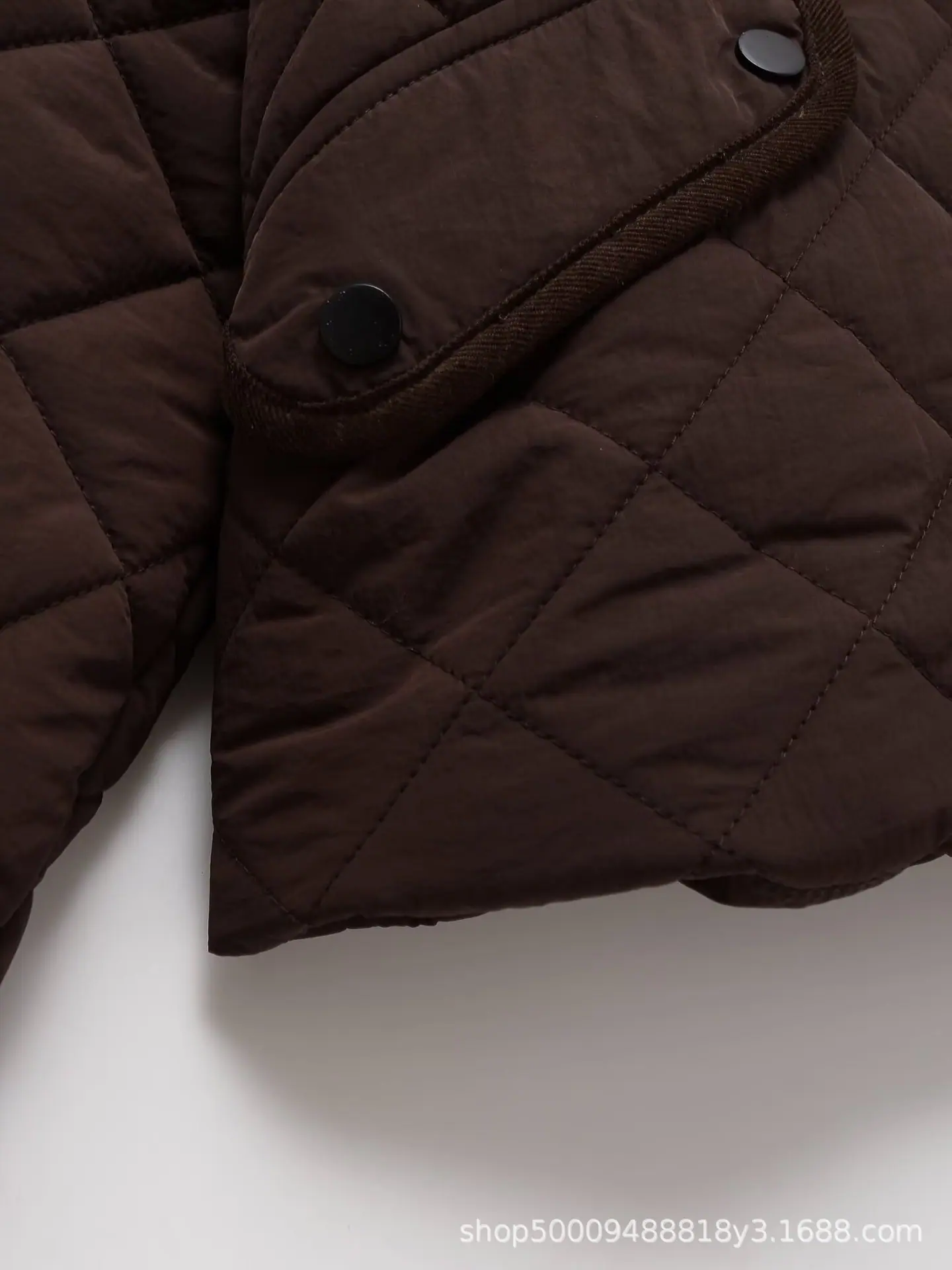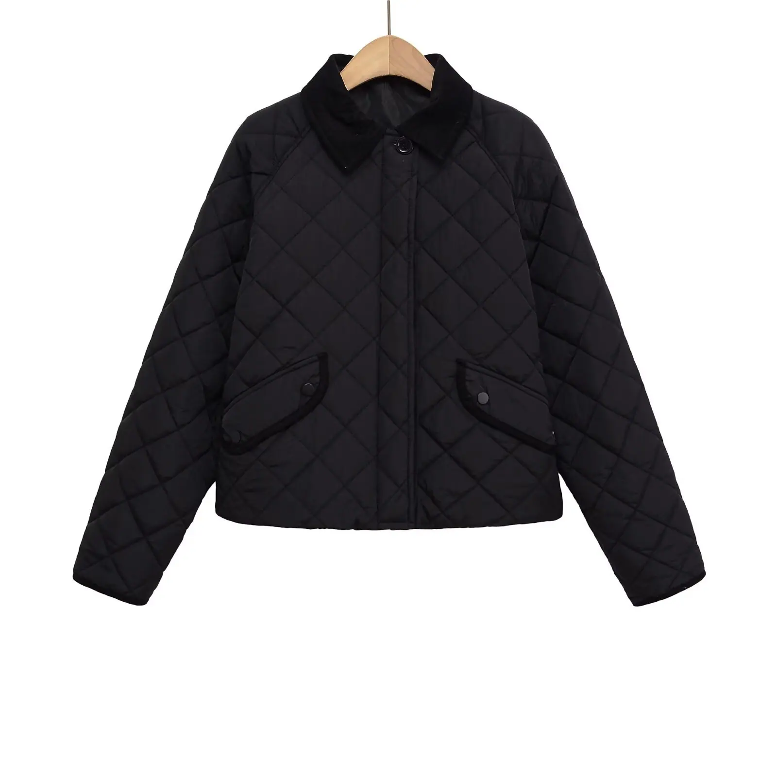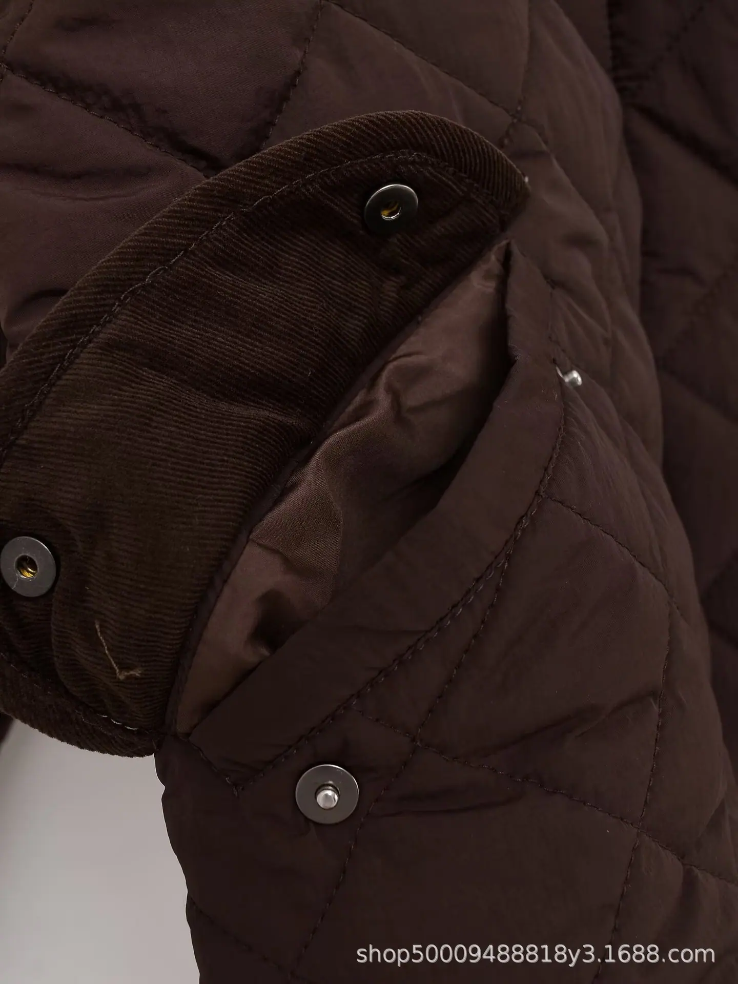 2025 Otoño/Invierno Nuevo Estilo Europeo y Americano Transfronterizo Moda Femenina Calle Patrón Diamante Casual Chaqueta Acolchada de Algodón