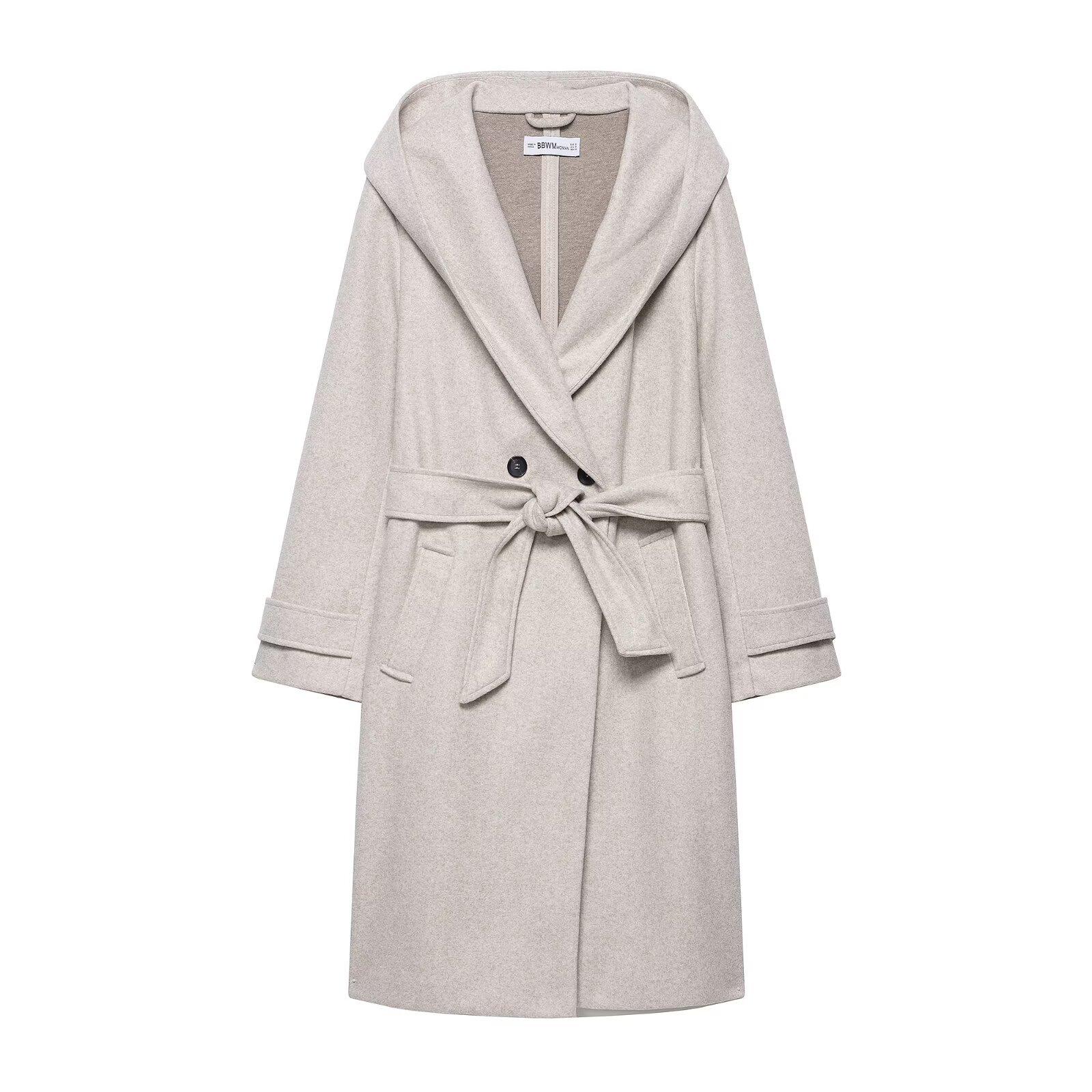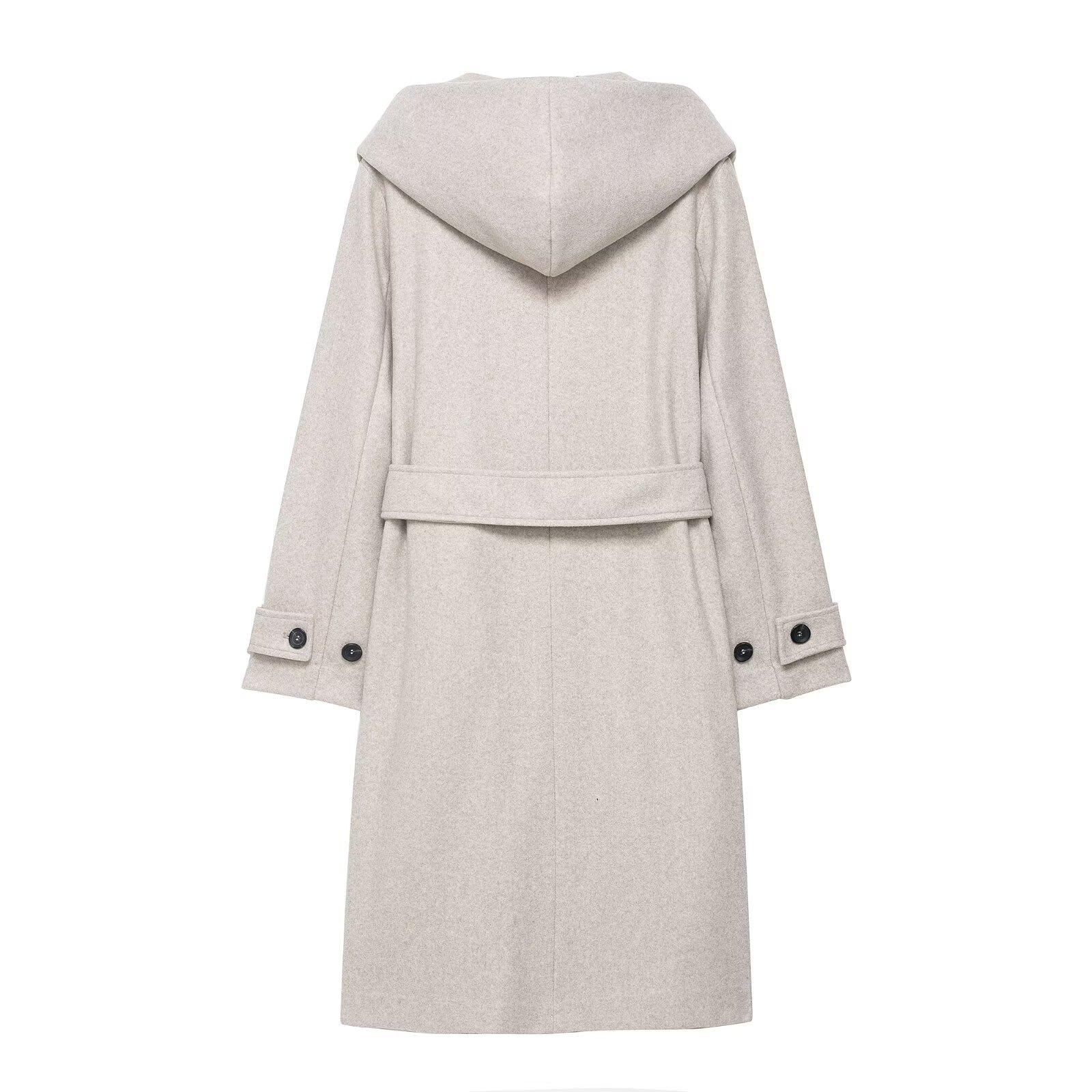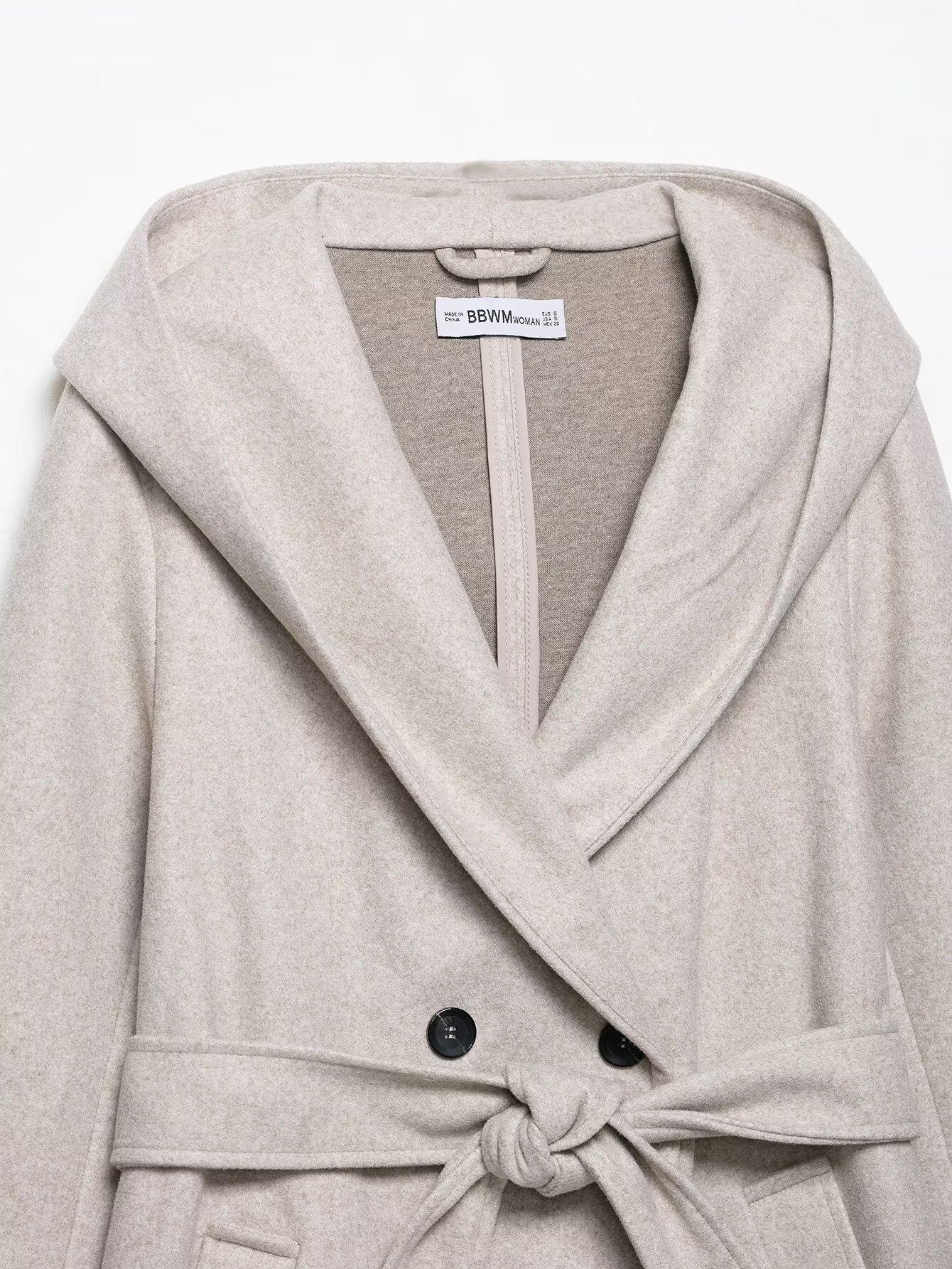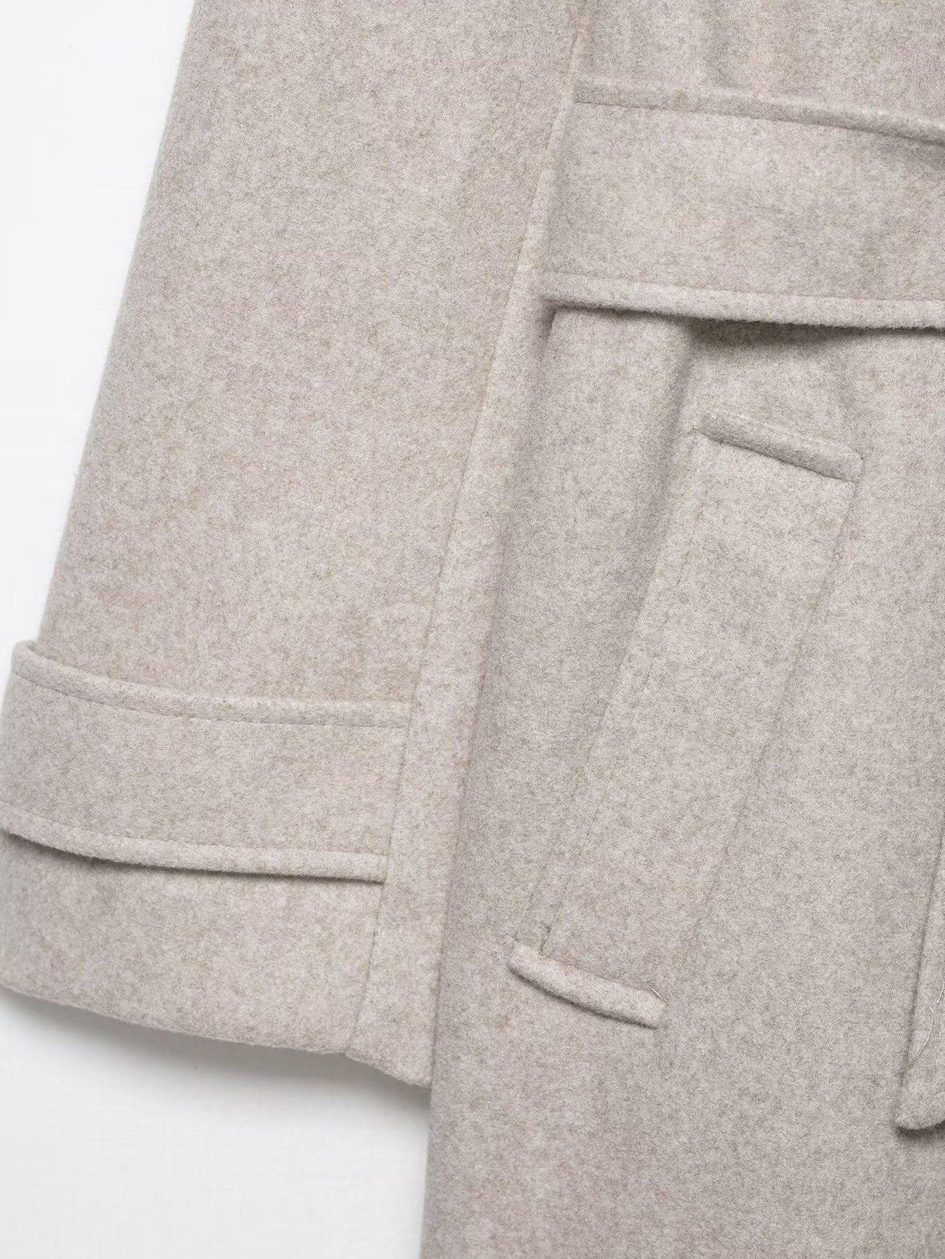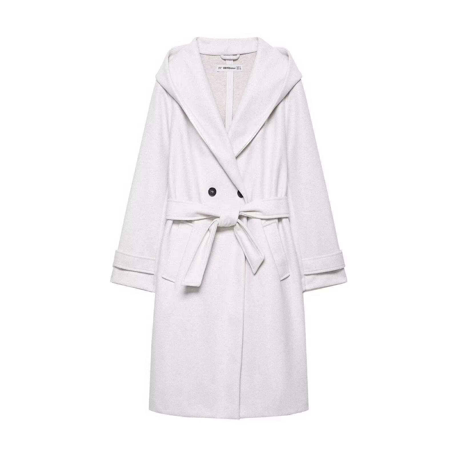 Ropa de Mujer Transfronteriza al por Mayor Otoño Nuevo Estilo Europeo y Americano Abrigo de Lana con Capucha y Lazos Suaves Ropa Exterior 3046273
