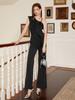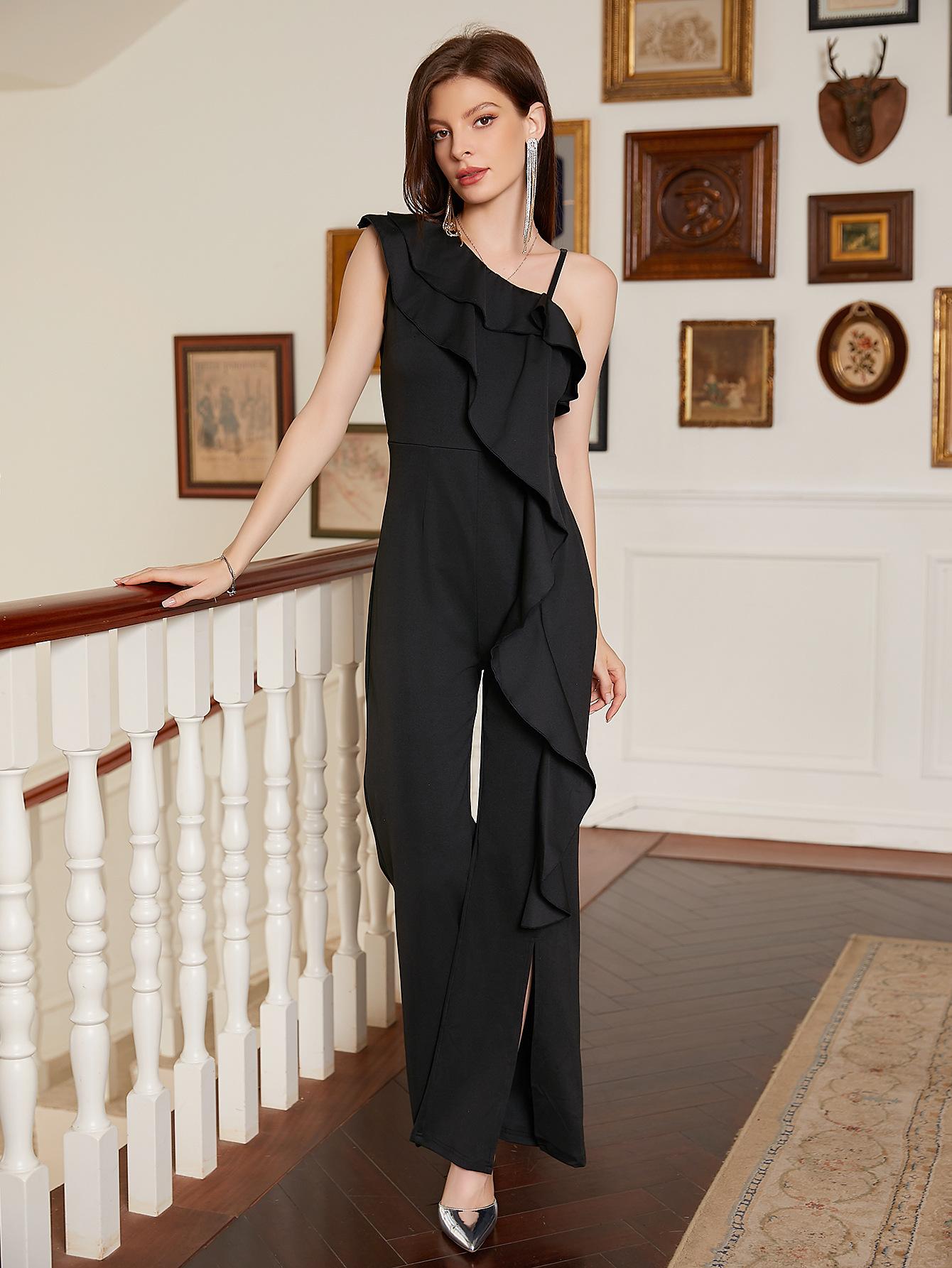2025 Nuevo Monocolor Europeo y Americano Moda Transfronteriza Tirante Negro Elegante Slim Largo Recto Mono