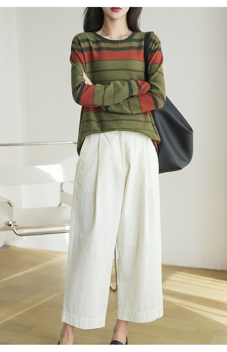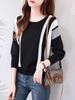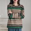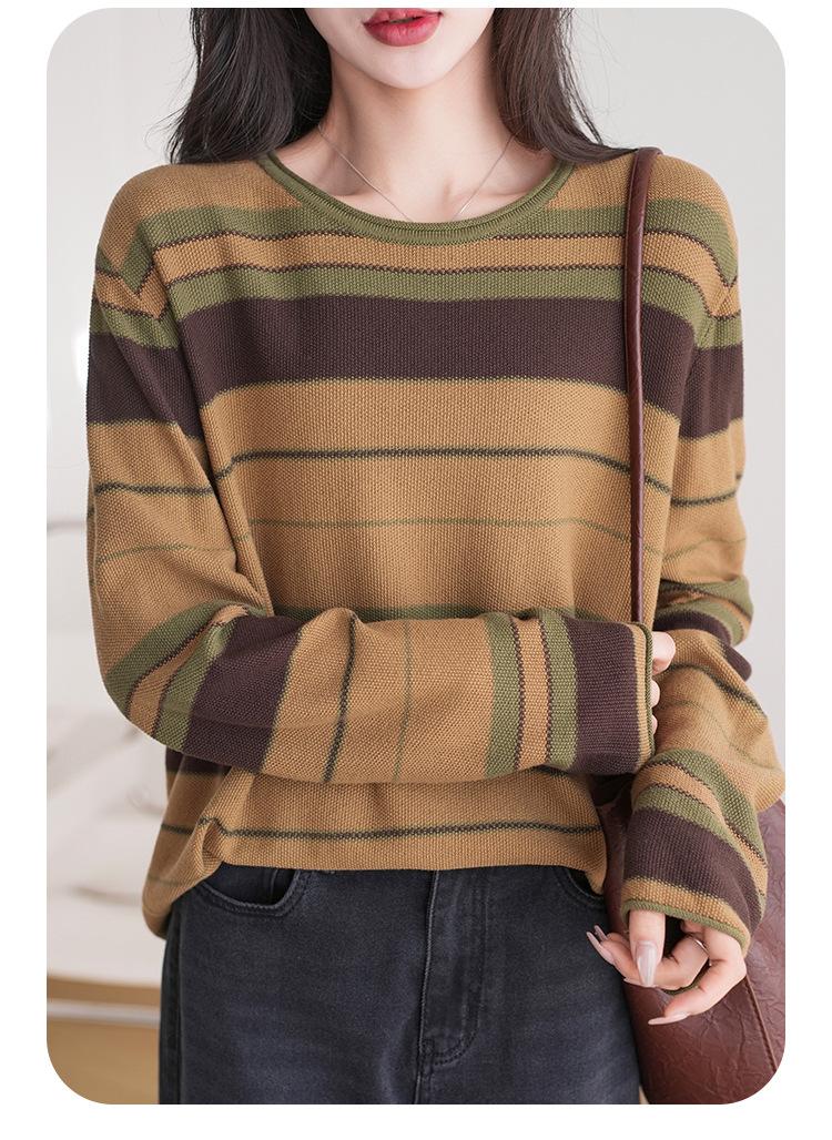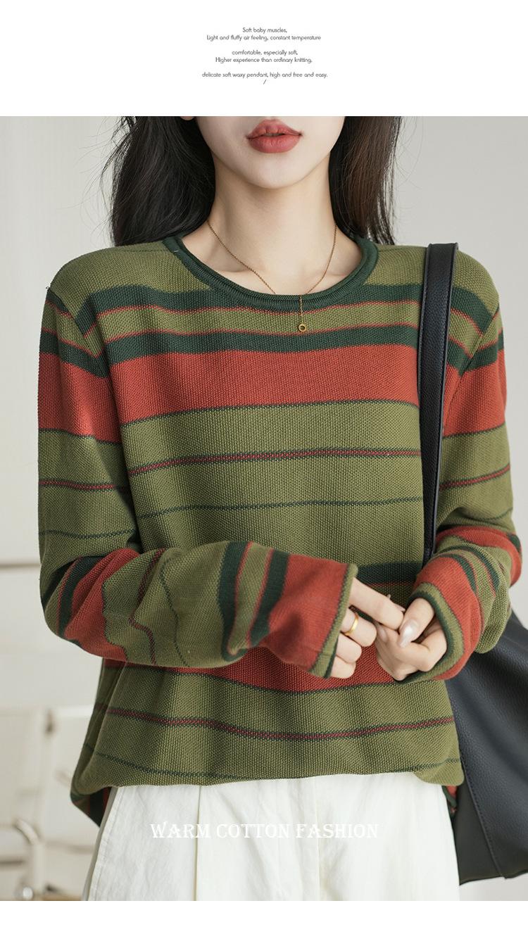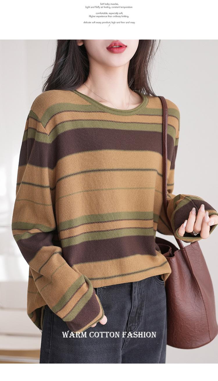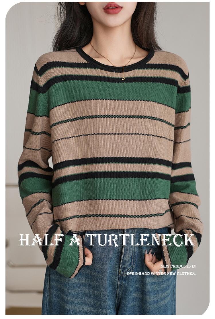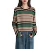 2025 primavera nuevo suéter de cuello redondo de algodón puro manga larga rayas a juego de color holgado versátil jersey camisa básica