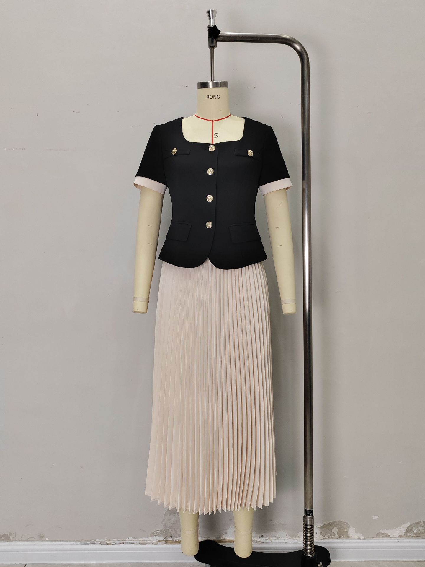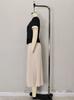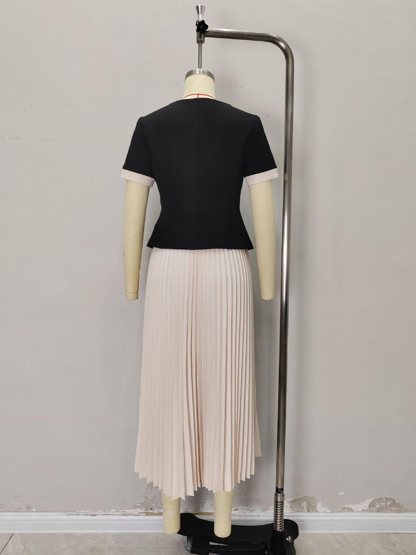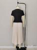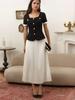 Vestido Mini de Estilo Socialité de Lujo Simple Europeo y Americano, Cuello Redondo, Manga Corta, Bloque de Color Blanco y Negro, Decoración de Botones en la Espalda