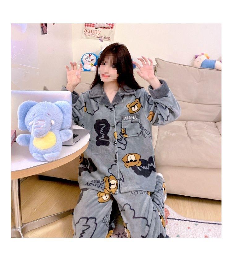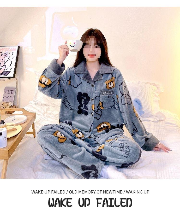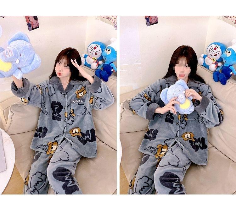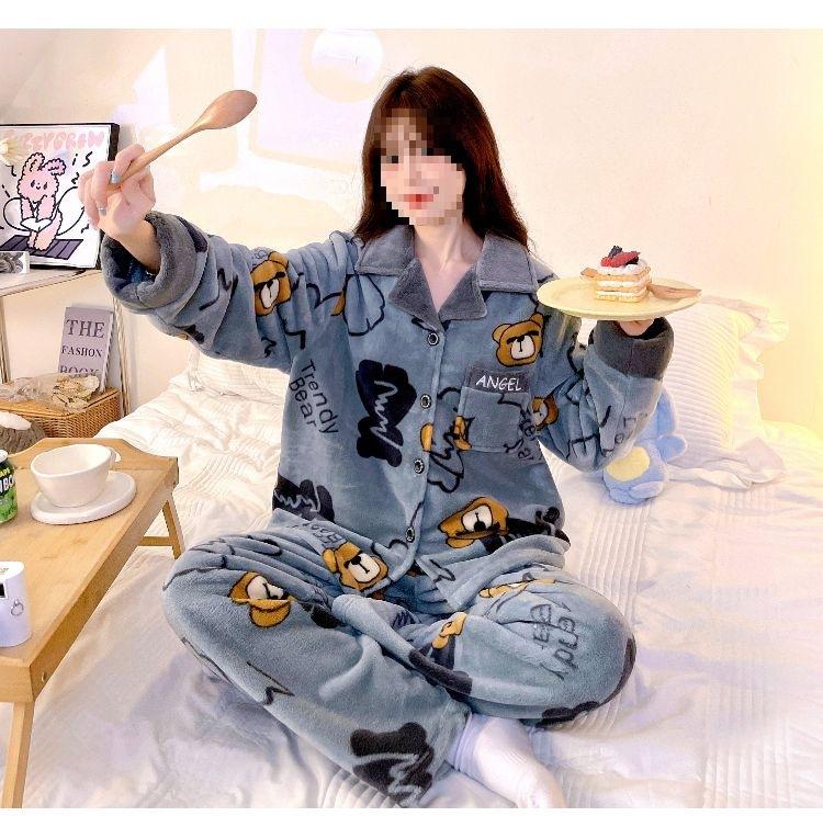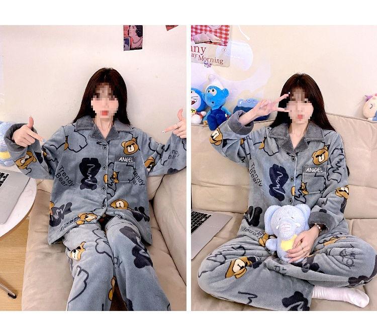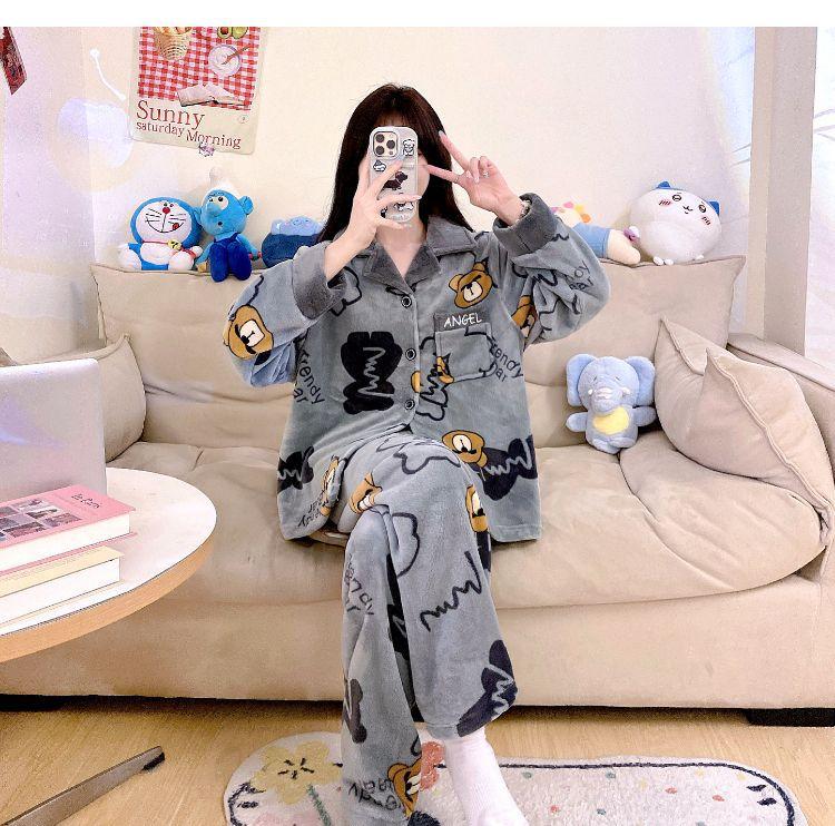 Pijamas para Mujer Otoño e Invierno Conjunto Grueso Ropa para el Hogar Cálido Manga Larga Otoño Nuevo Franela de Forro Polar Coral Se Puede Usar Afuera