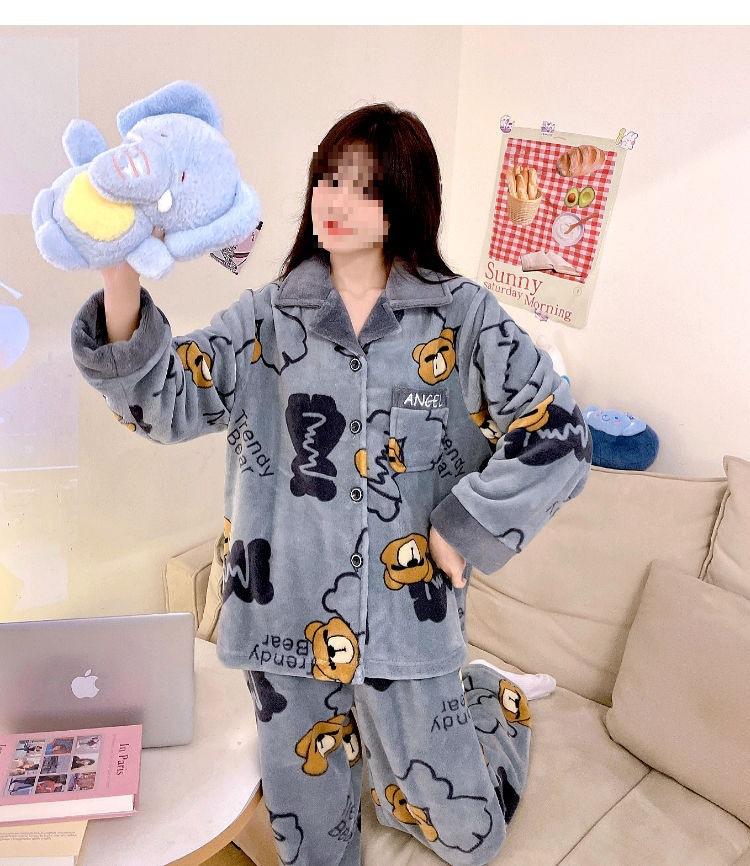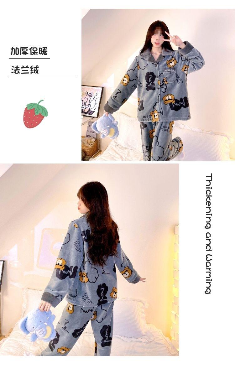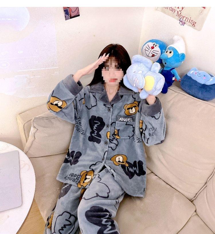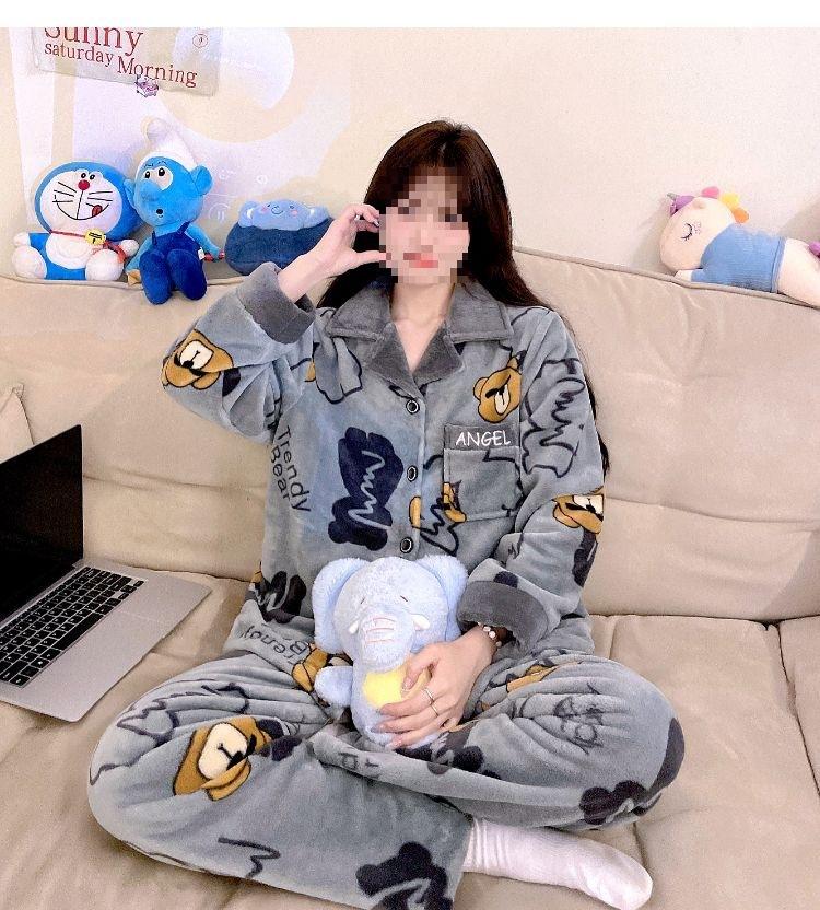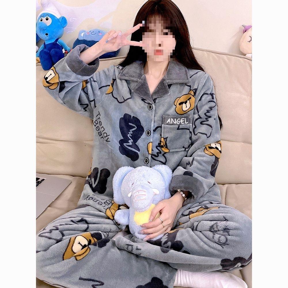 Pijamas para Mujer Otoño e Invierno Conjunto Grueso Ropa para el Hogar Cálido Manga Larga Otoño Nuevo Franela de Forro Polar Coral Se Puede Usar Afuera