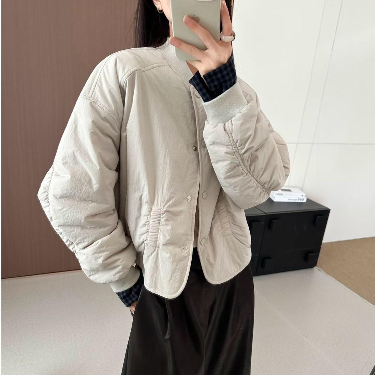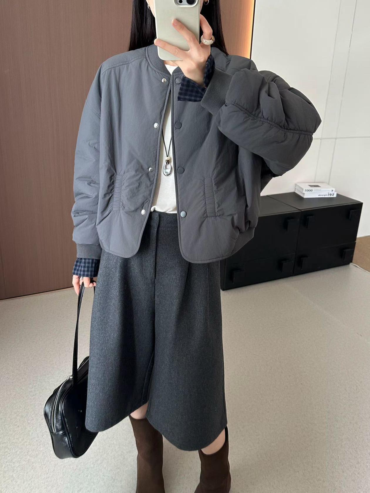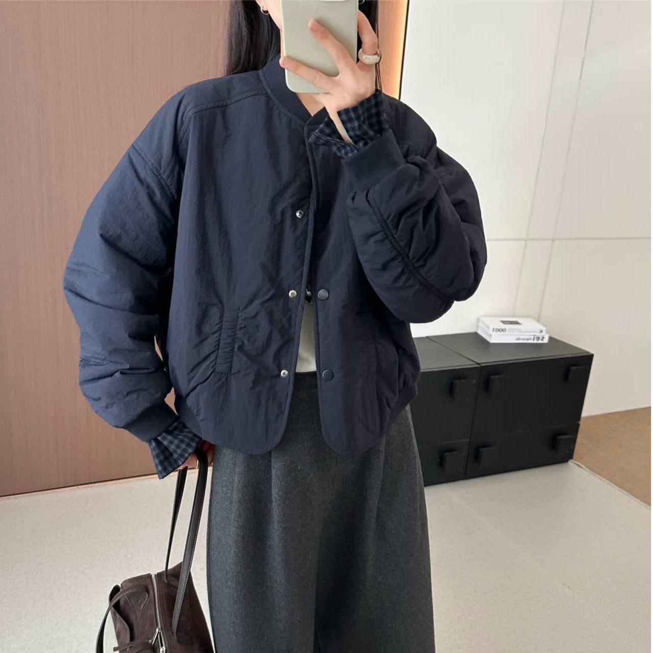 Chaqueta acolchada de algodón de estilo europeo versión coreana con cuello alto para mujer Invierno 2025 Nuevo estilo Acolchada Suelta Petite Abrigo de algodón Chaqueta de béisbol