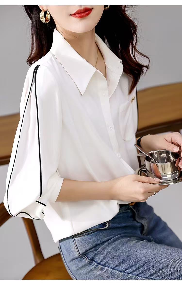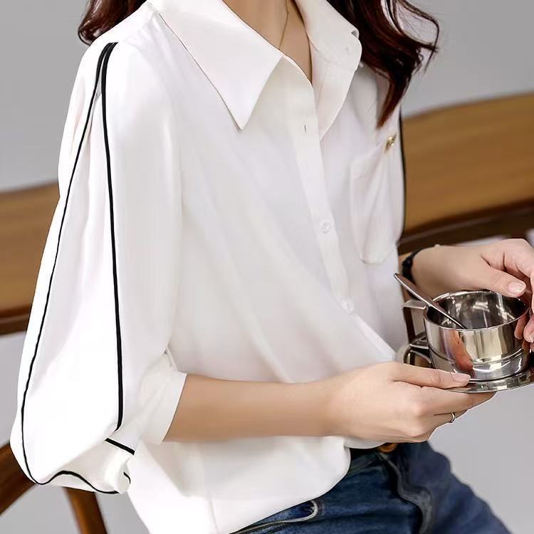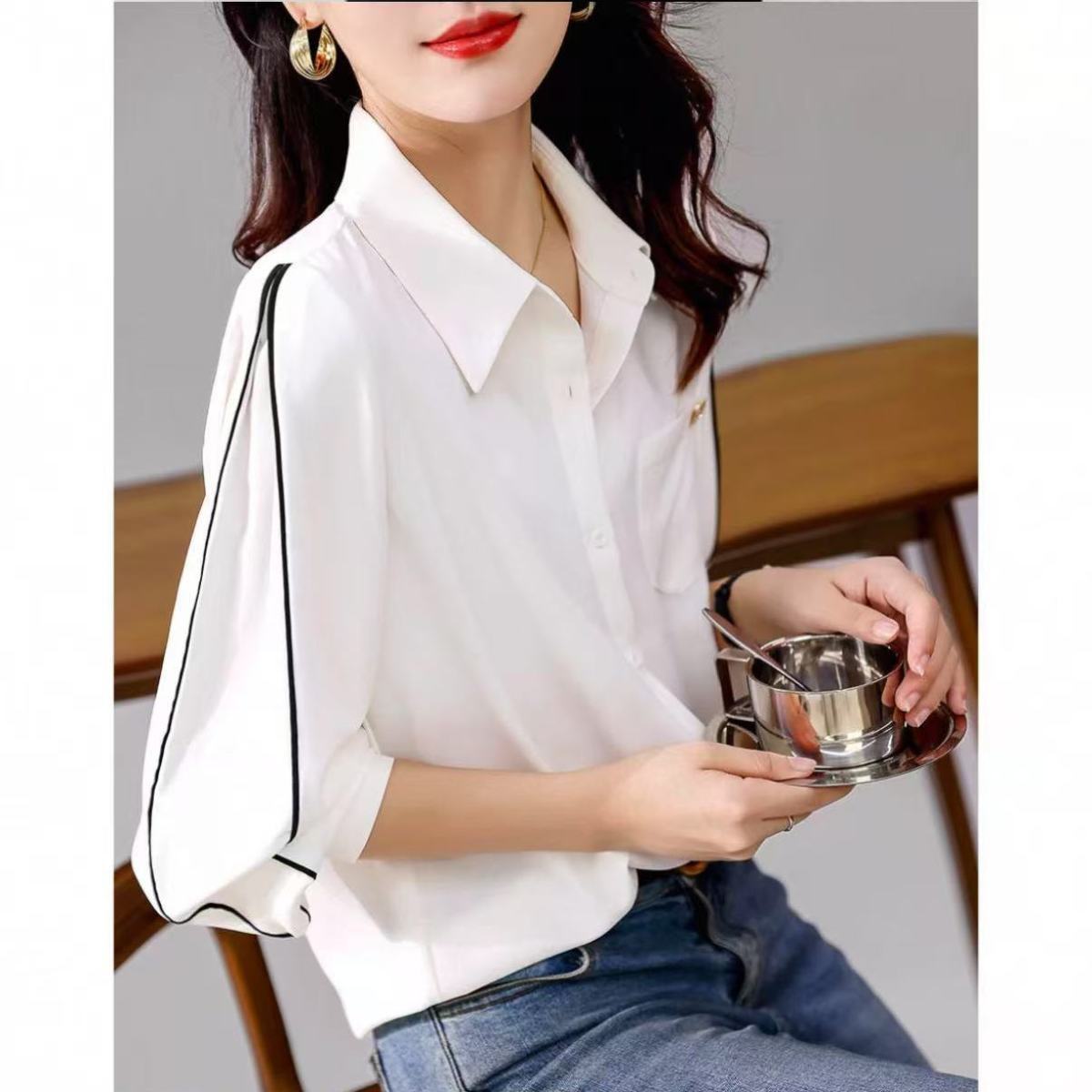 Camisa blanca de manga larga para mujer primavera y otoño 2025 nueva moda estilo extranjero sentido del diseño nicho casual camisa top de dama