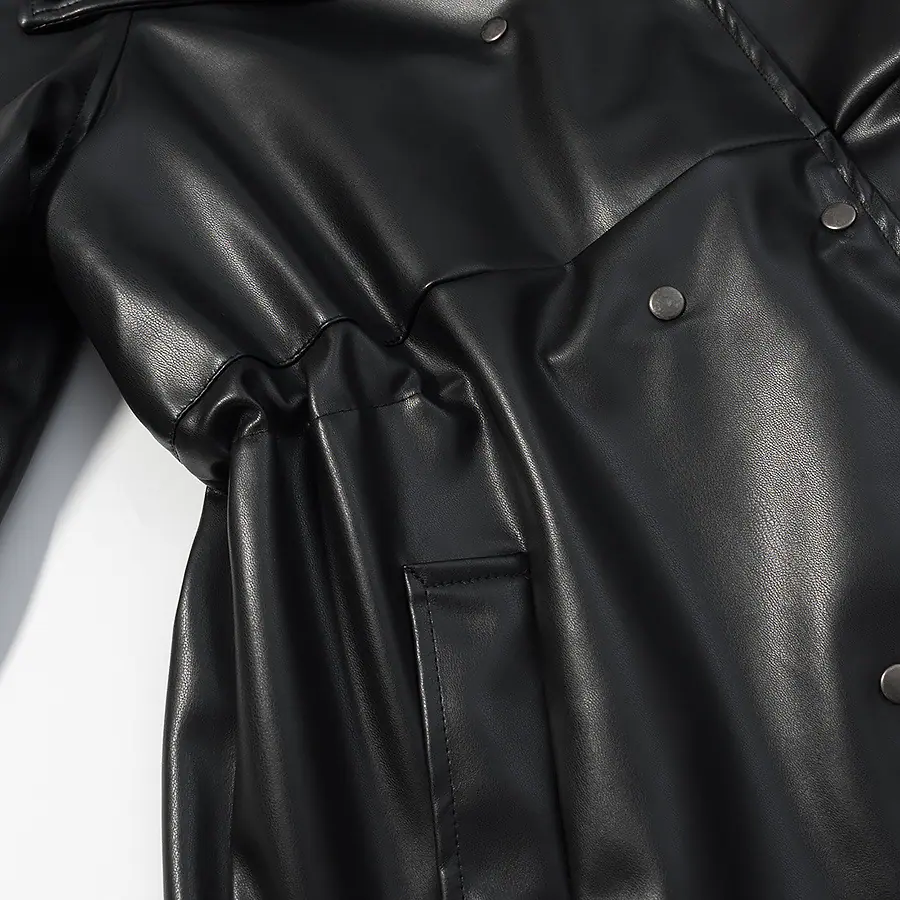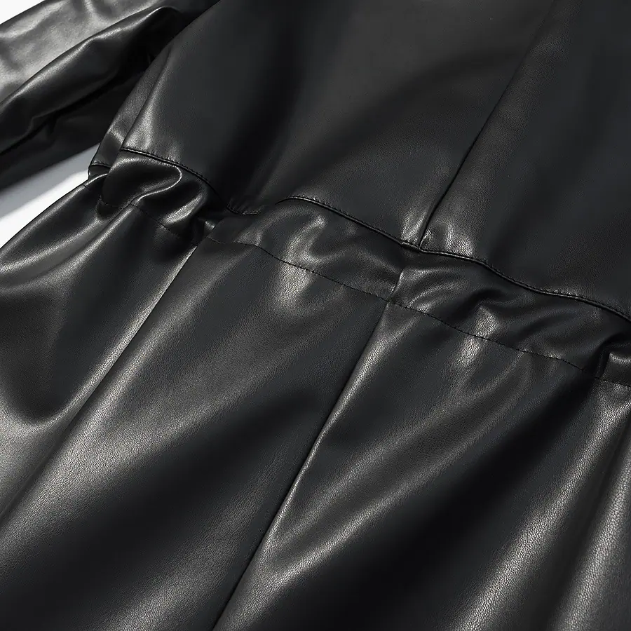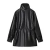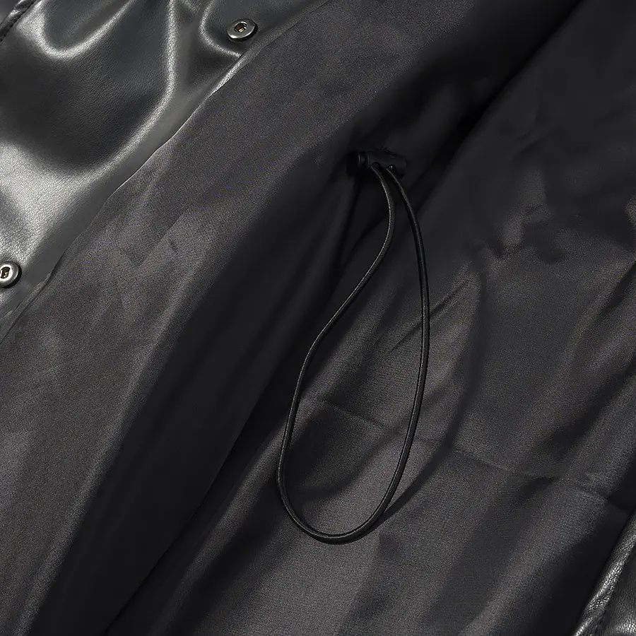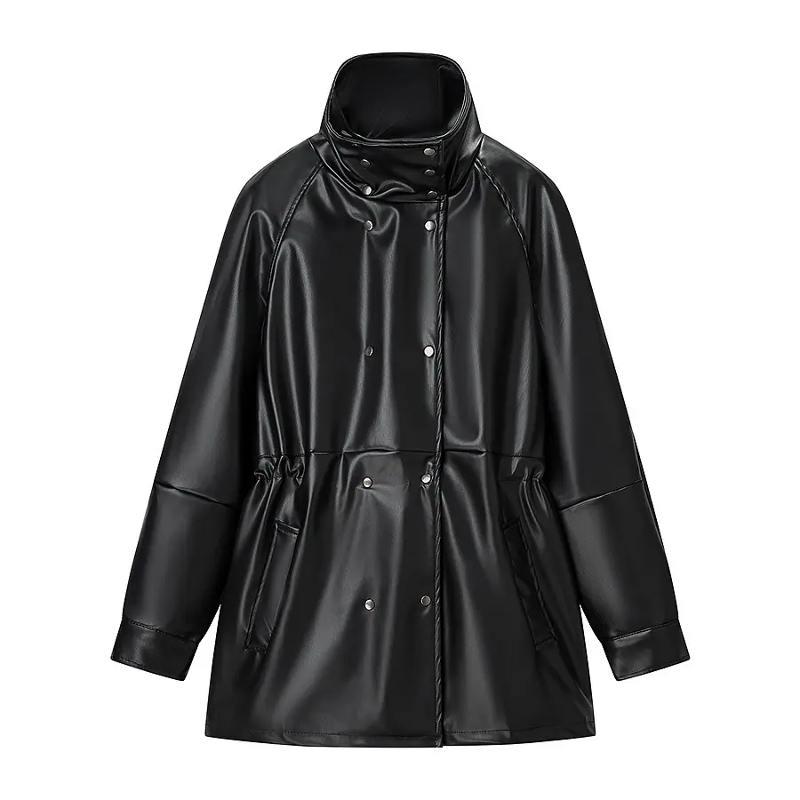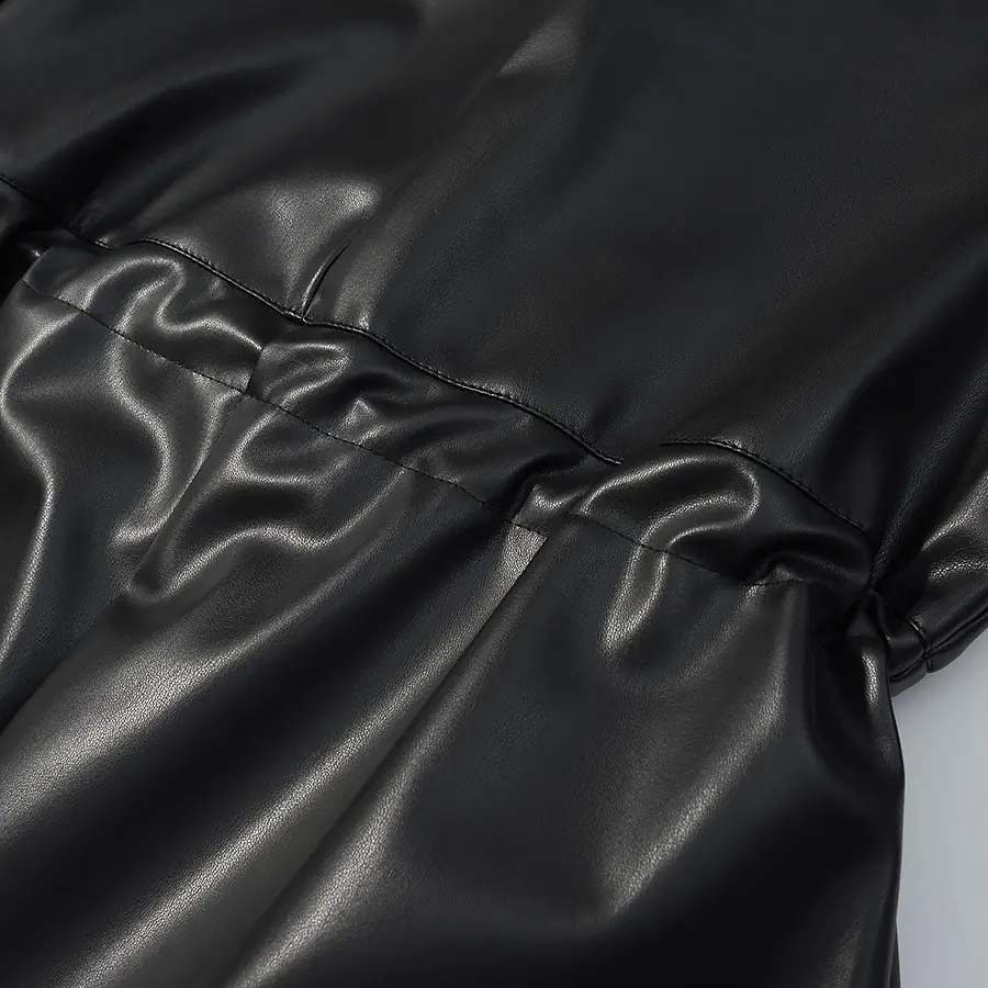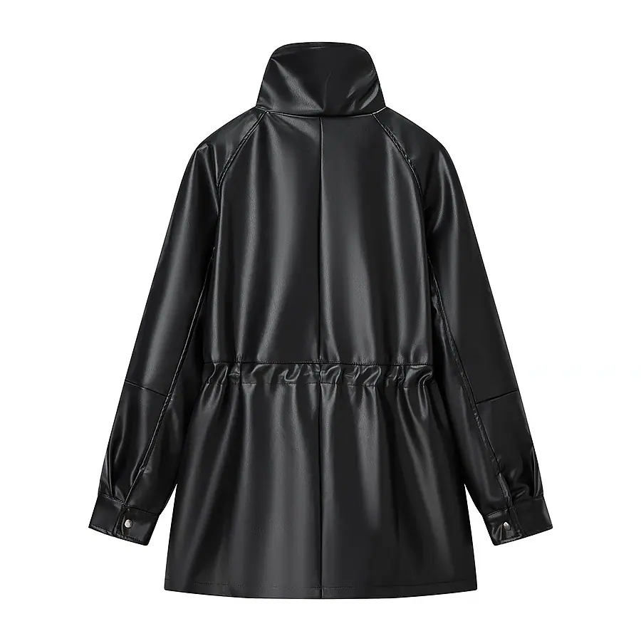 Ropa de Mujer de Comercio Exterior Transfronterizo 2025 Otoño/Invierno Estilo Europeo y Americano Cuello Alto Manga Larga Cintura con Cordón Largo Medio Chaqueta Abrigo PU Mujeres