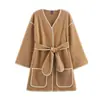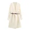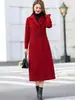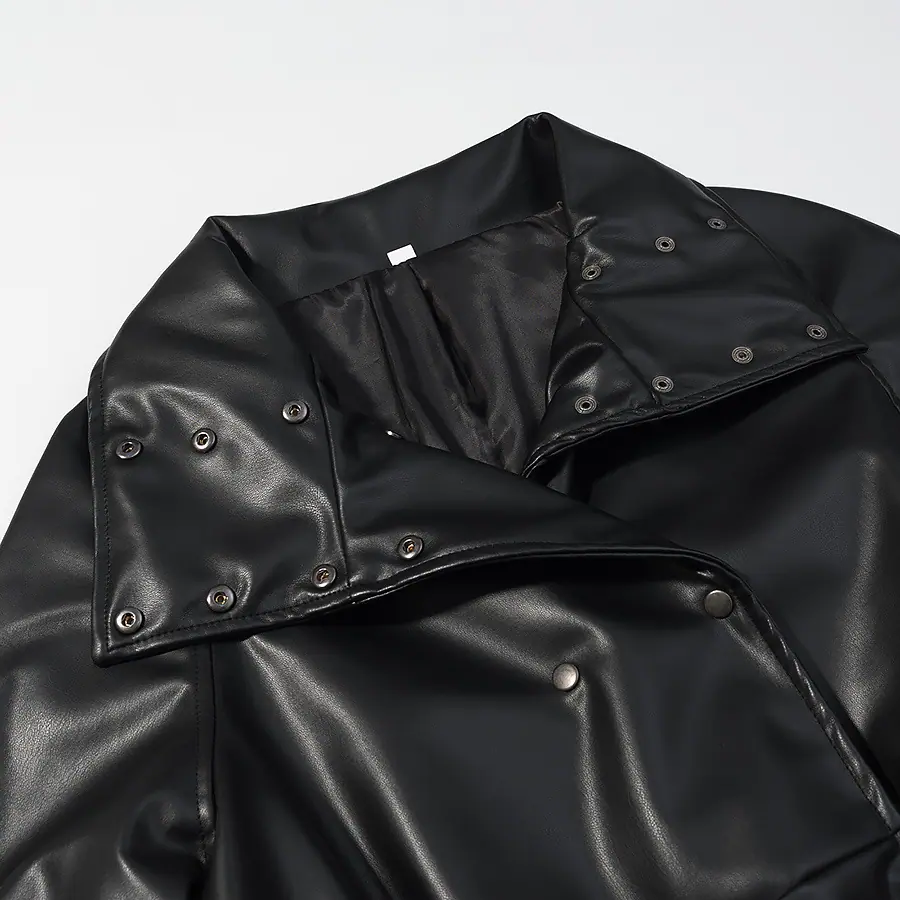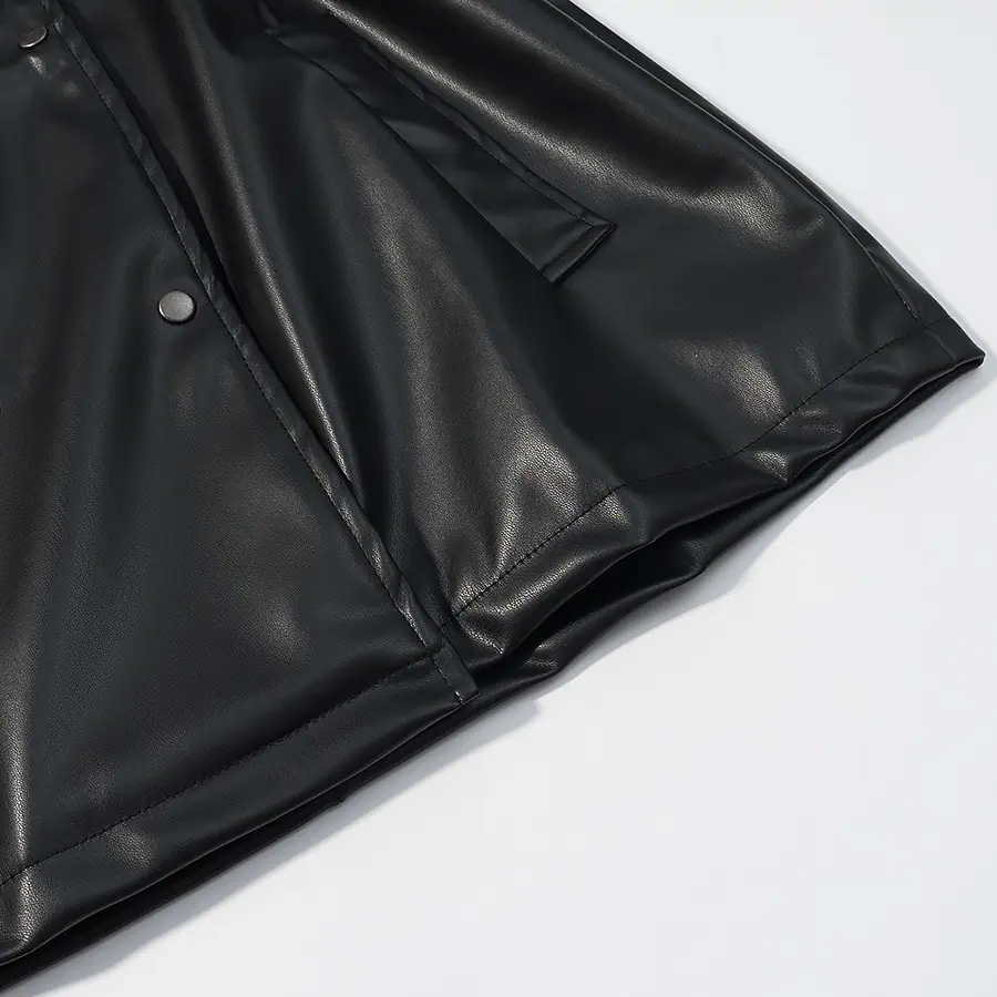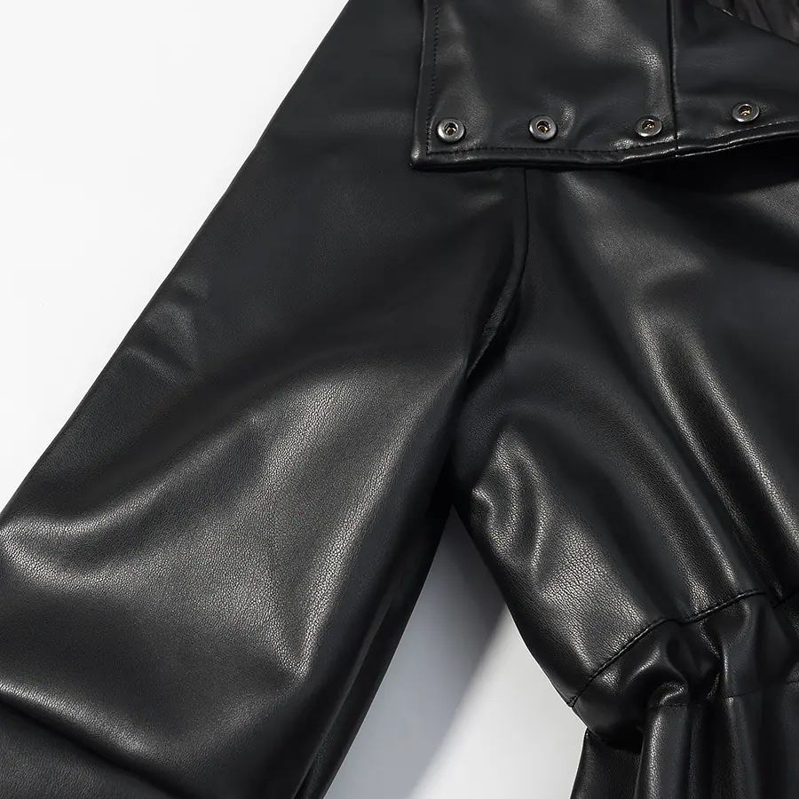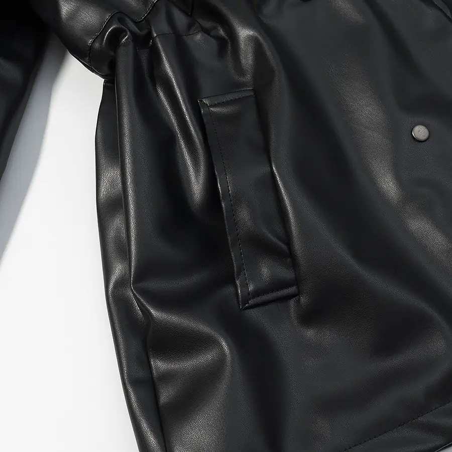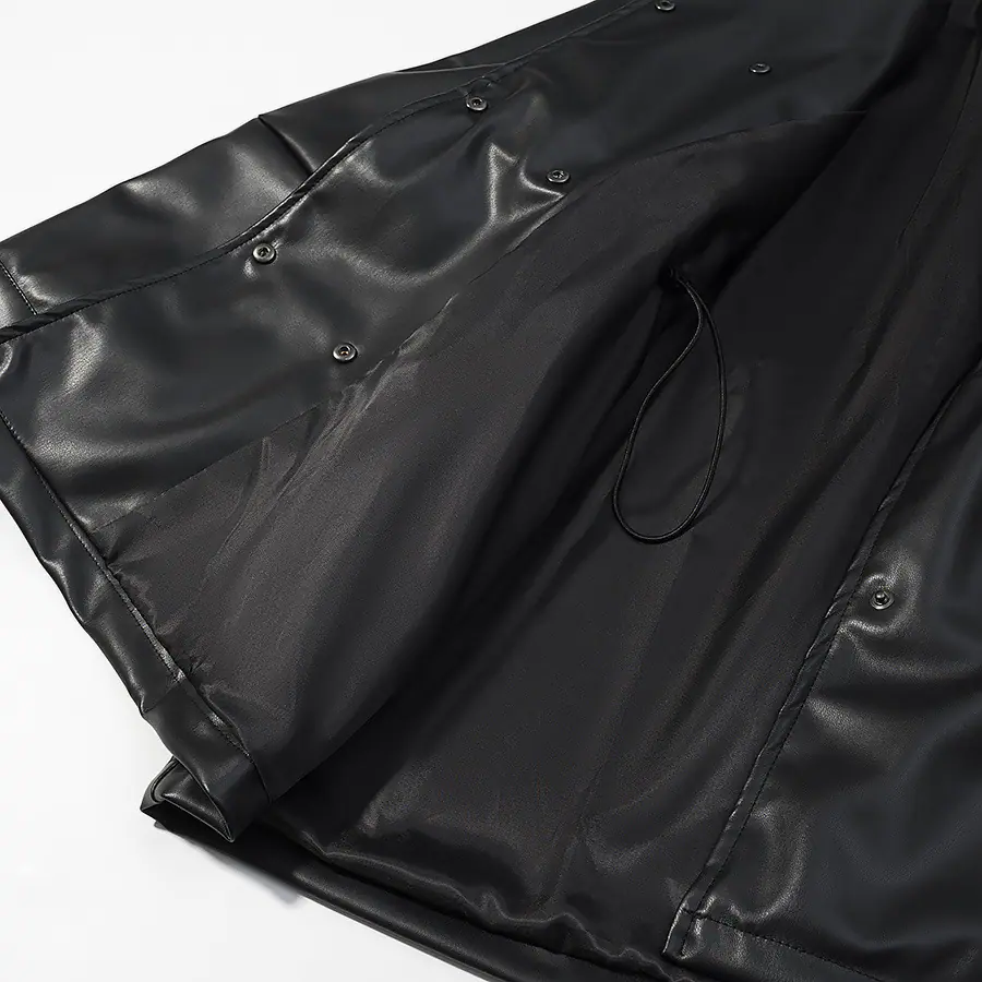 Ropa de Mujer de Comercio Exterior Transfronterizo 2025 Otoño/Invierno Estilo Europeo y Americano Cuello Alto Manga Larga Cintura con Cordón Largo Medio Chaqueta Abrigo PU Mujeres