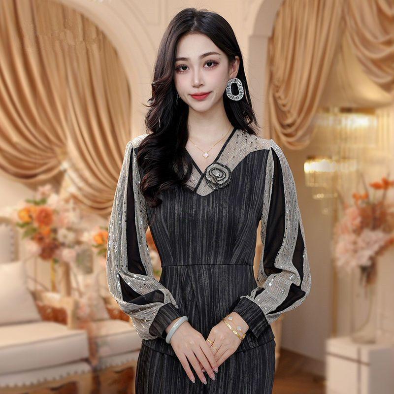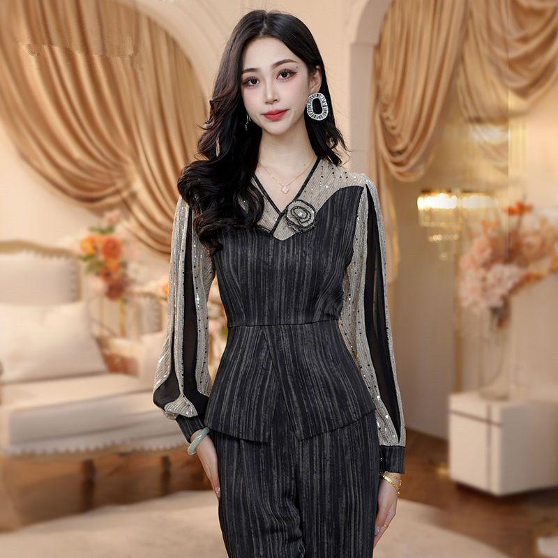 Compra Camisa de manga larga de hombro recto estilo francés para mujer 2025 otoño nueva cuello en V bloque de color diseño nicho sentido slim fit top al por mayor en Joom.pro