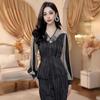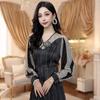 Camisa de manga larga de hombro recto estilo francés para mujer 2025 otoño nueva cuello en V bloque de color diseño nicho sentido slim fit top