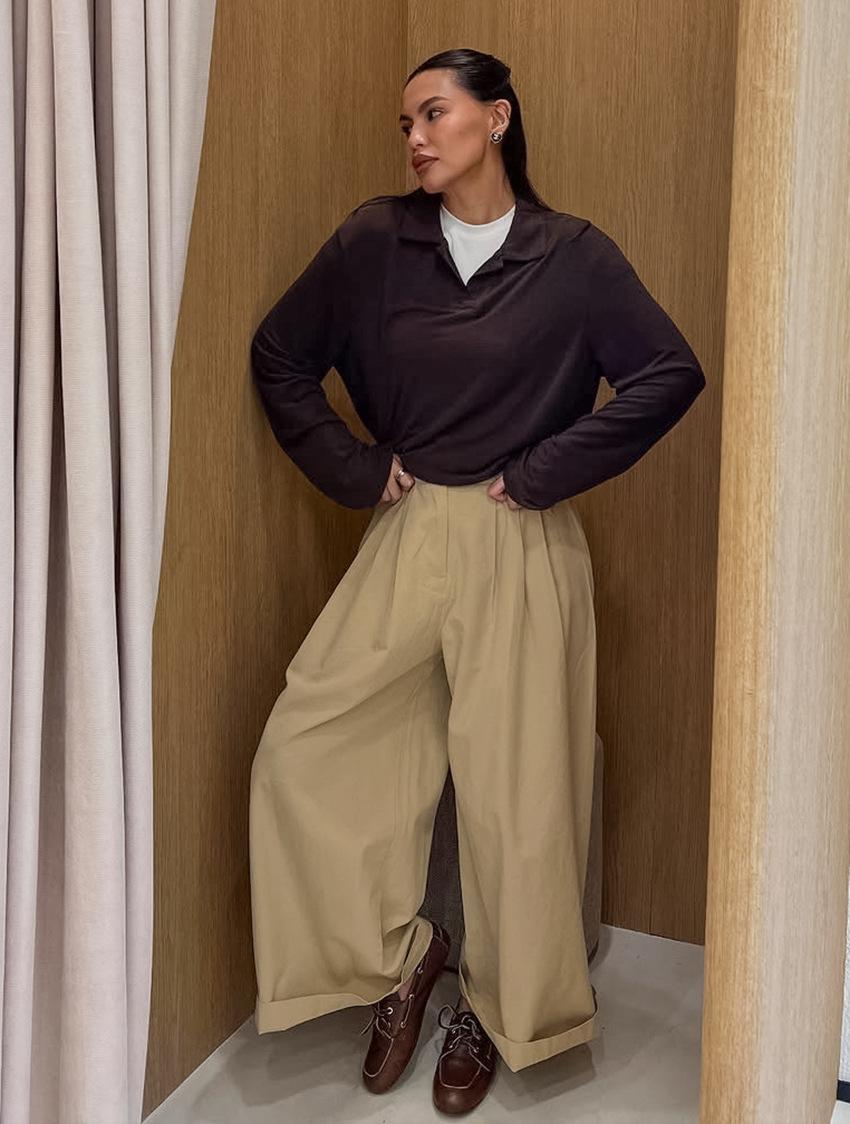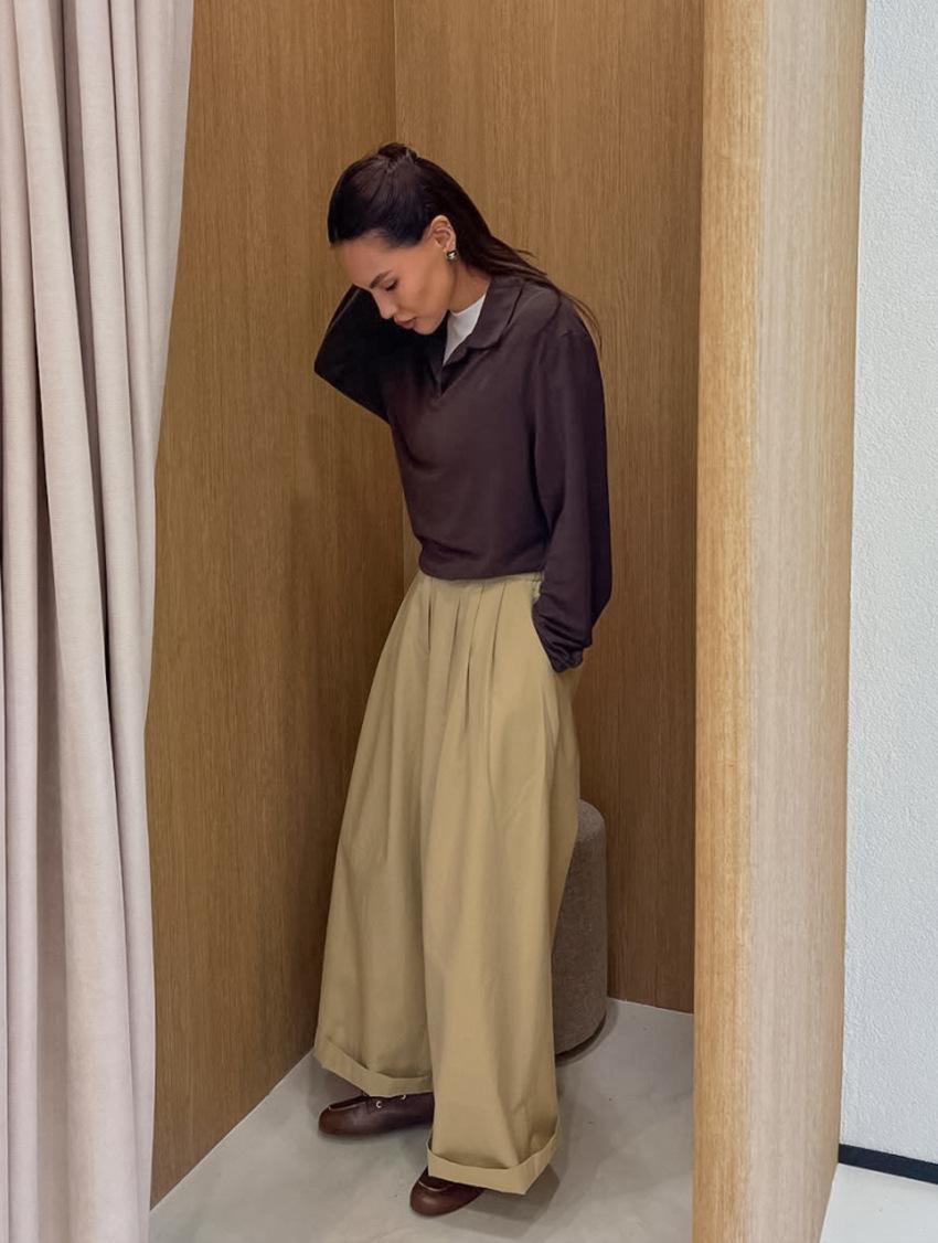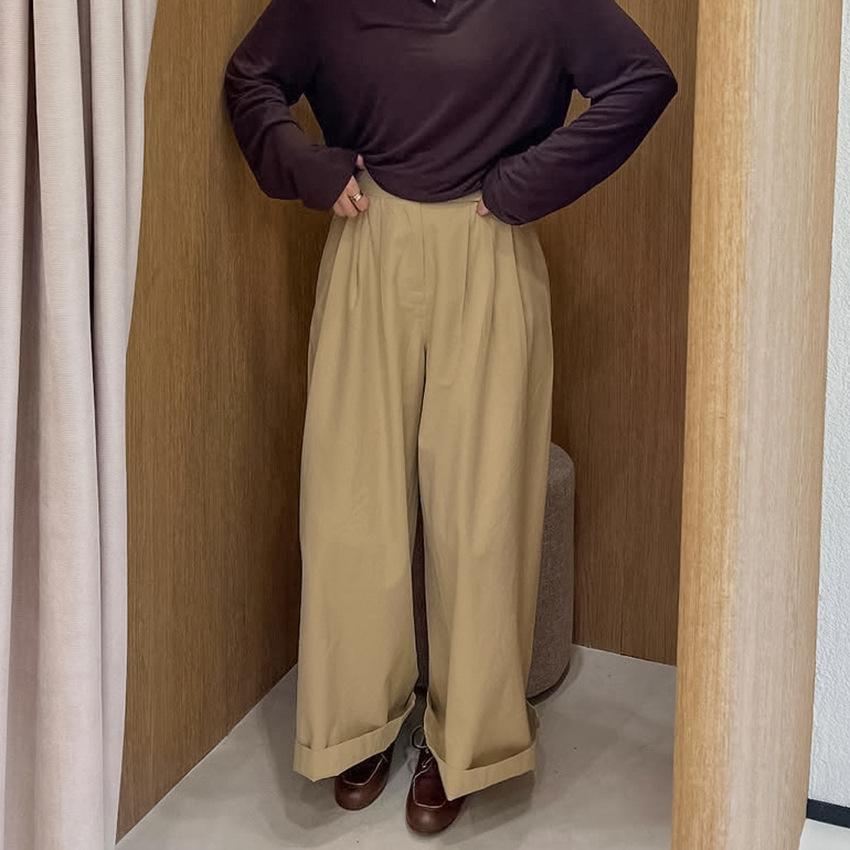 Otoño Europeo y Americano transfronterizo nuevo pantalón casual suelto y versátil para mujer de cintura alta adelgazante plisado de pierna recta versión traje pantalón largo