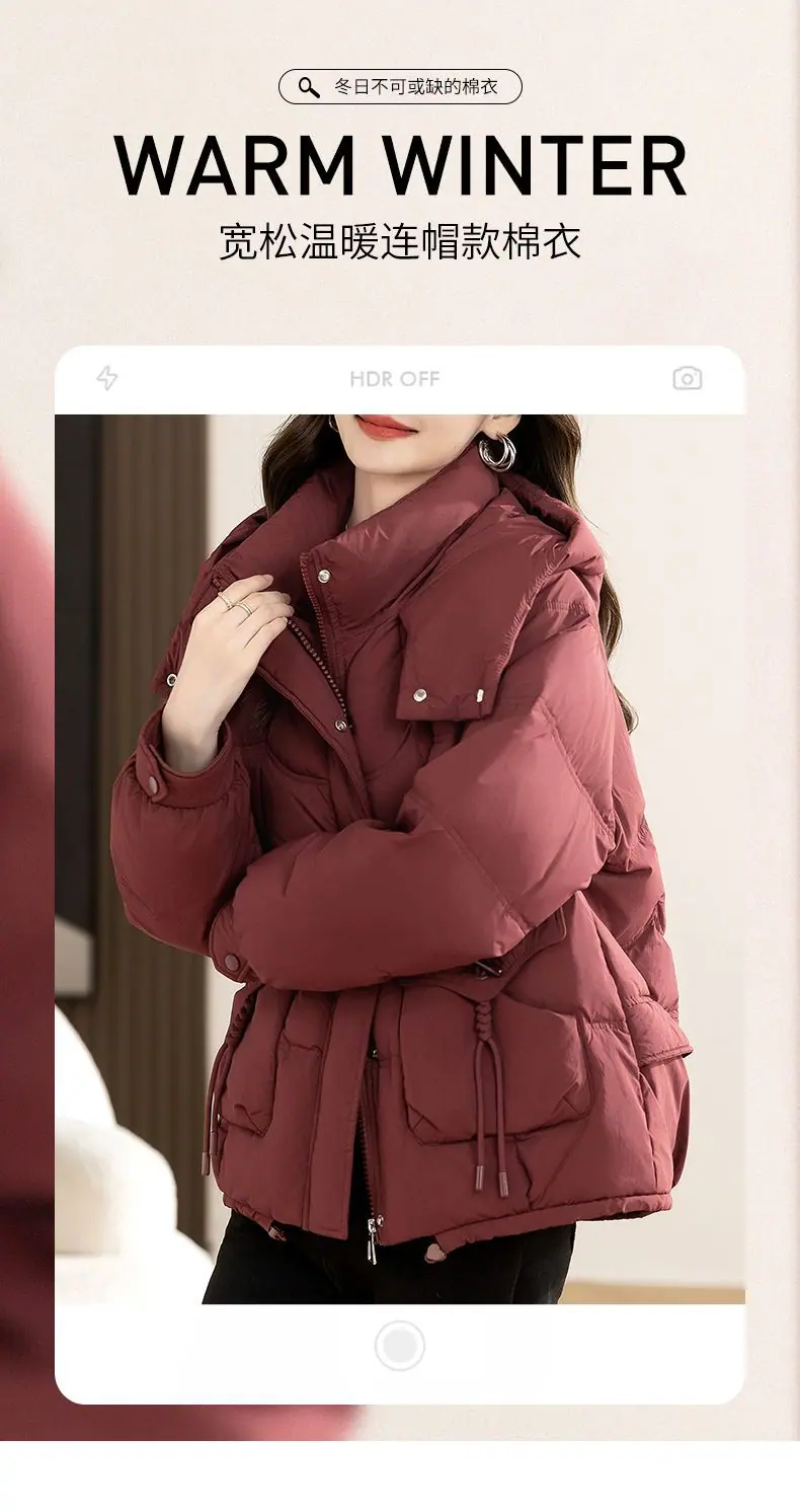 Chamarra de Algodón Plumón para Mujer 2025 Invierno Nuevo Abrigo de Algodón Corto Moda Estilo Coreano Suelto con Capucha Engrosado Cálido Acolchado de Algodón Marea