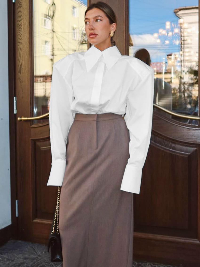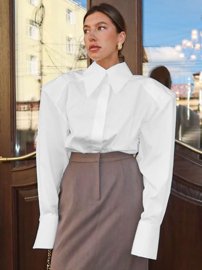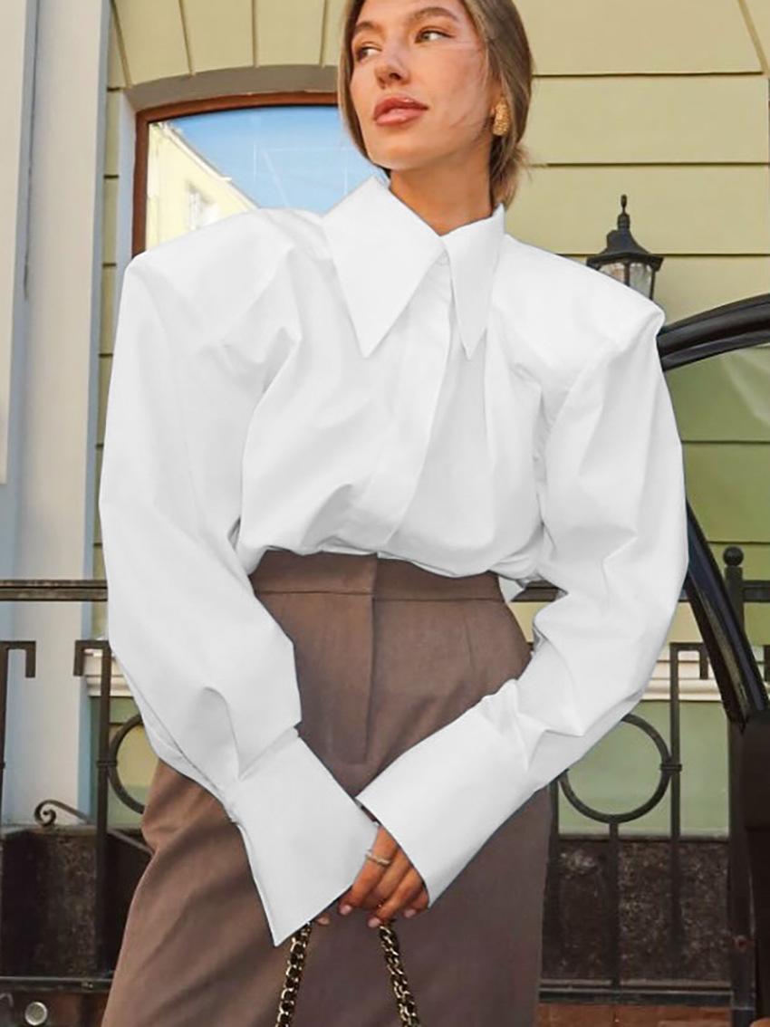 Camisa de Manga Larga Nueva Primavera 2026 Mujer Oficina Profesional Señoras Top Camisa Blanca Manga Abullonada