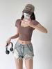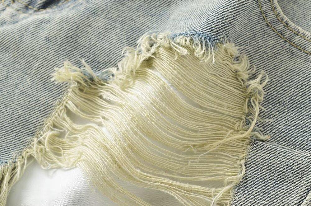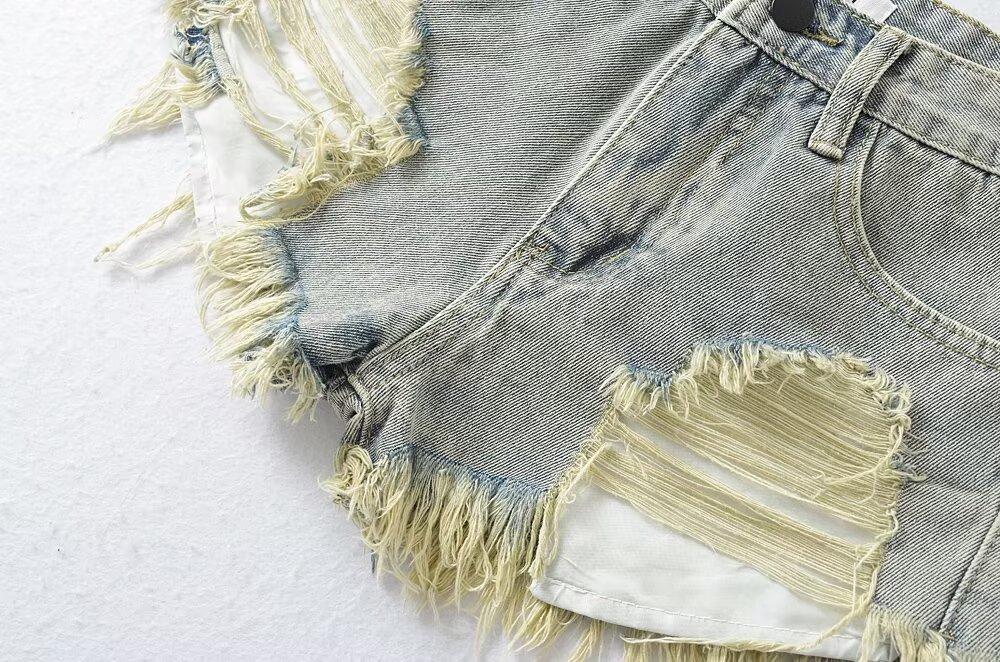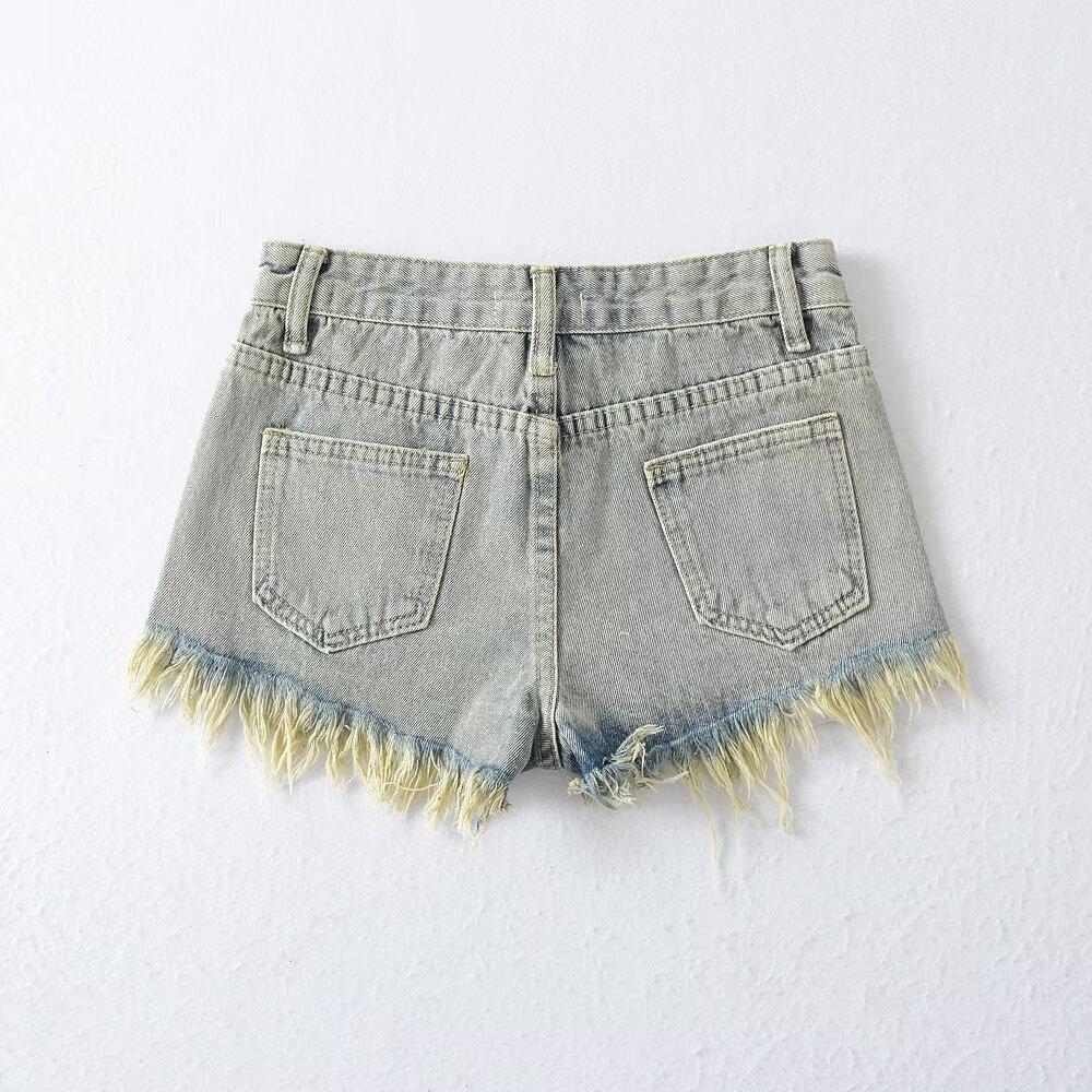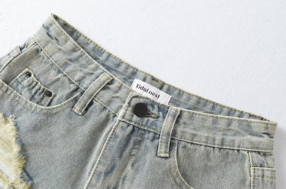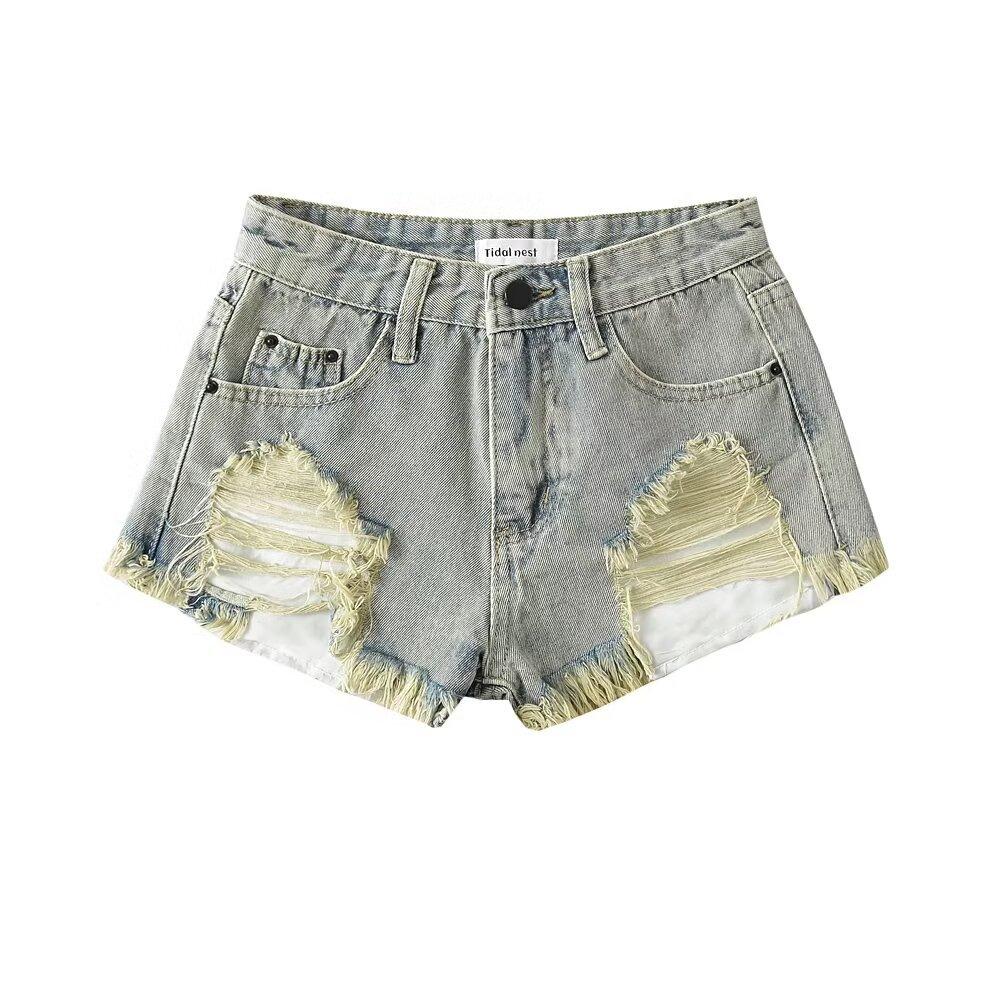 Shorts de mezclilla retro americanos para mujer 2024 nuevos de verano con agujeros rasgados sexy modernos pantalones cortos calientes jeans rasgados