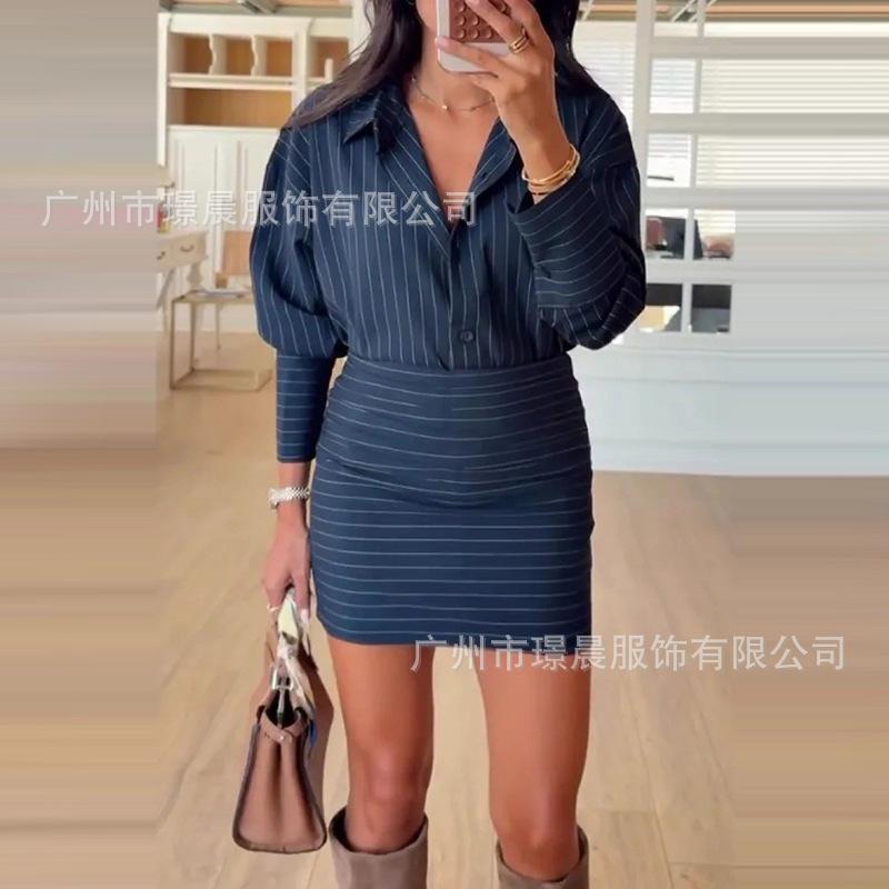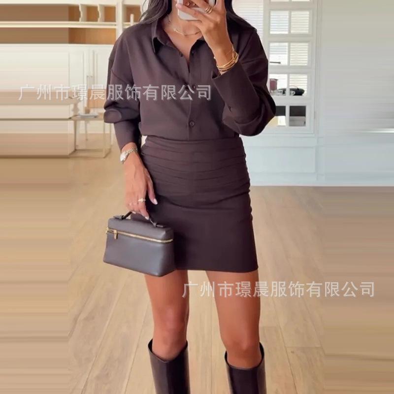 Amazon Transfronterizo 2025 Otoño Comercio Exterior Europeo y Americano Nueva Moda para Mujer Conjunto Elegante Top de Manga Larga Falda Ajustada