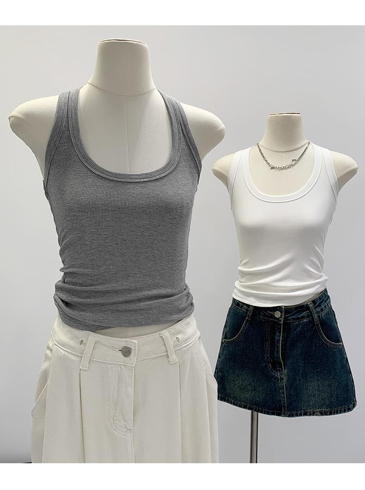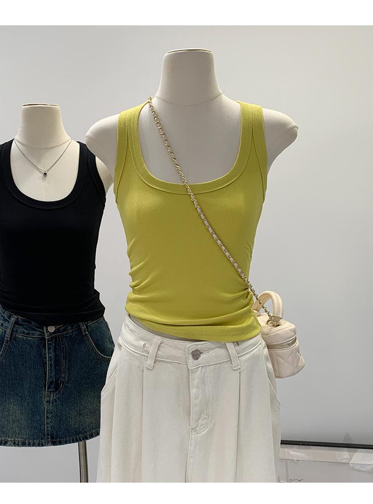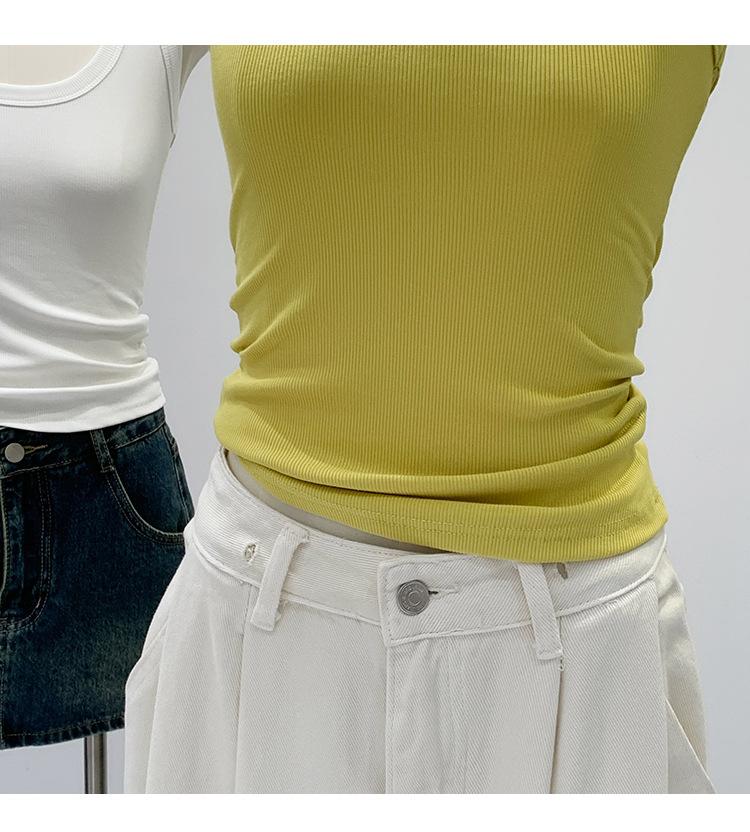 Chaleco Americano de Verano para Mujer con Cuello Cuadrado, Tirantes en I, Corte Ajustado, Top Interior Básico Antiroce