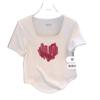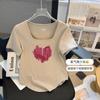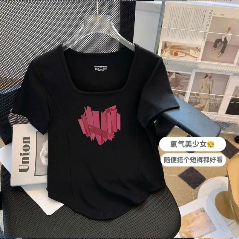 Cuello Cuadrado Hombro Recto Manga Corta Talla Grande Chubby MM Camiseta Mujer Verano Nuevo Chica Picante Diseño Corto Casual Nicho Top