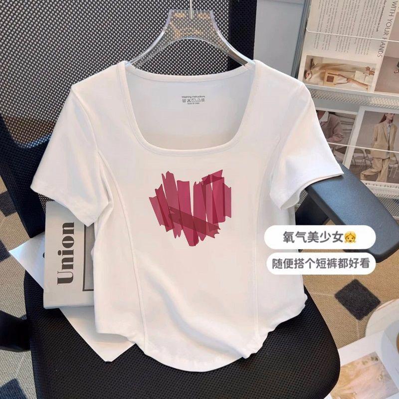 Compra Cuello Cuadrado Hombro Recto Manga Corta Talla Grande Chubby MM Camiseta Mujer Verano Nuevo Chica Picante Diseño Corto Casual Nicho Top al por mayor en Joom.pro