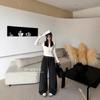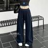 Otoño versátil estilo perezoso cordón pierna recta adelgazante pierna ancha pantalones largos mujer 2025 nuevo cintura alta pantalones casuales pantalones de chándal
