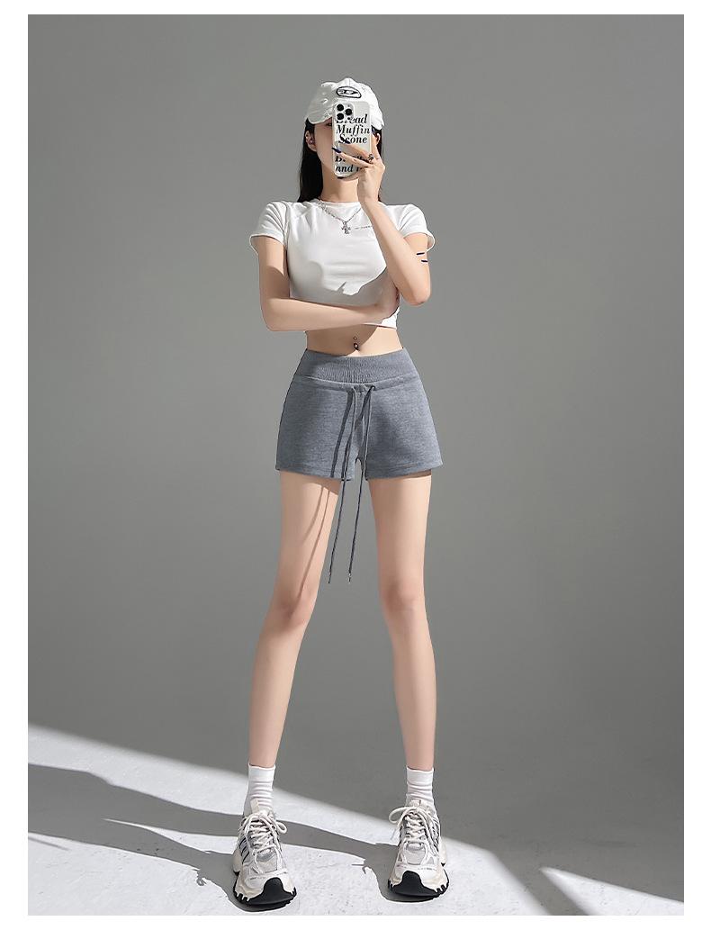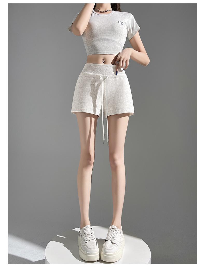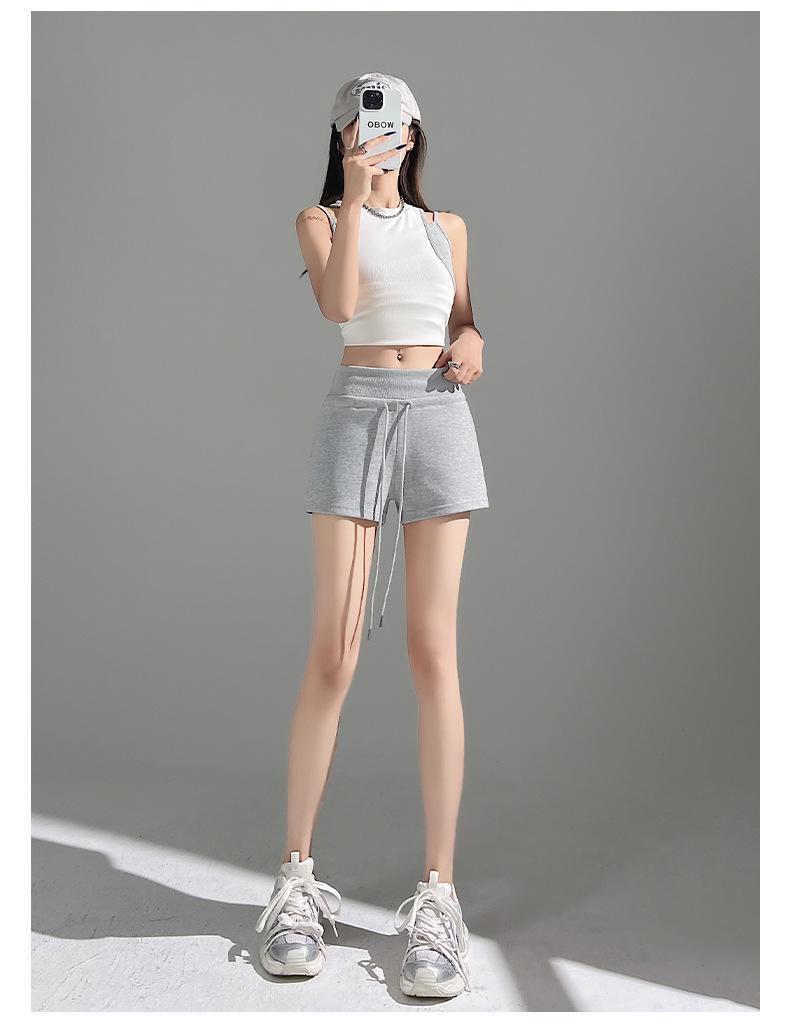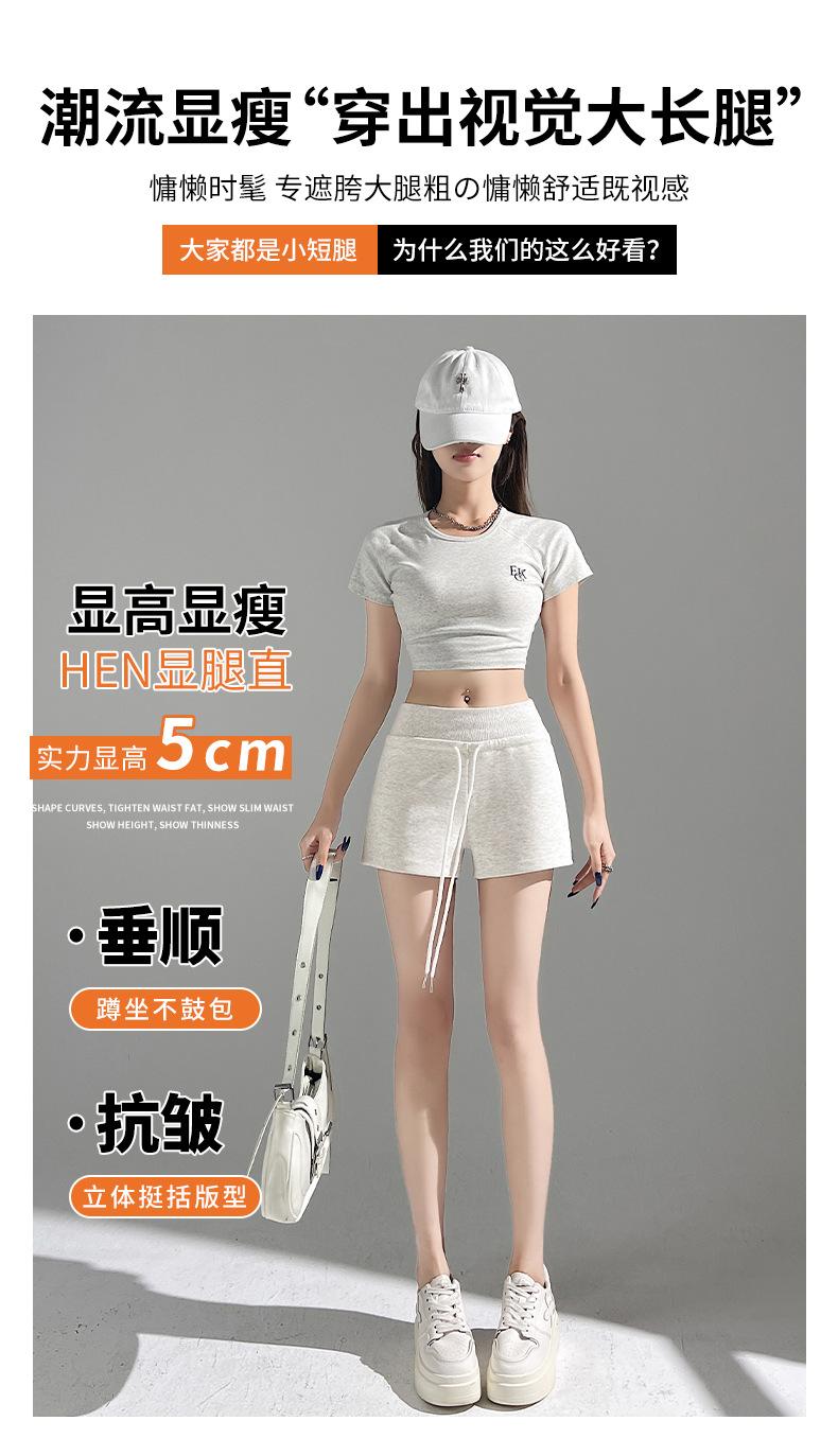 Shorts Casuales Deportivos Grises Americanos para Mujer Verano 2025 Nuevo Estilo Sueltos Cintura Alta Adelgazantes Cortos Pantalones Rectos