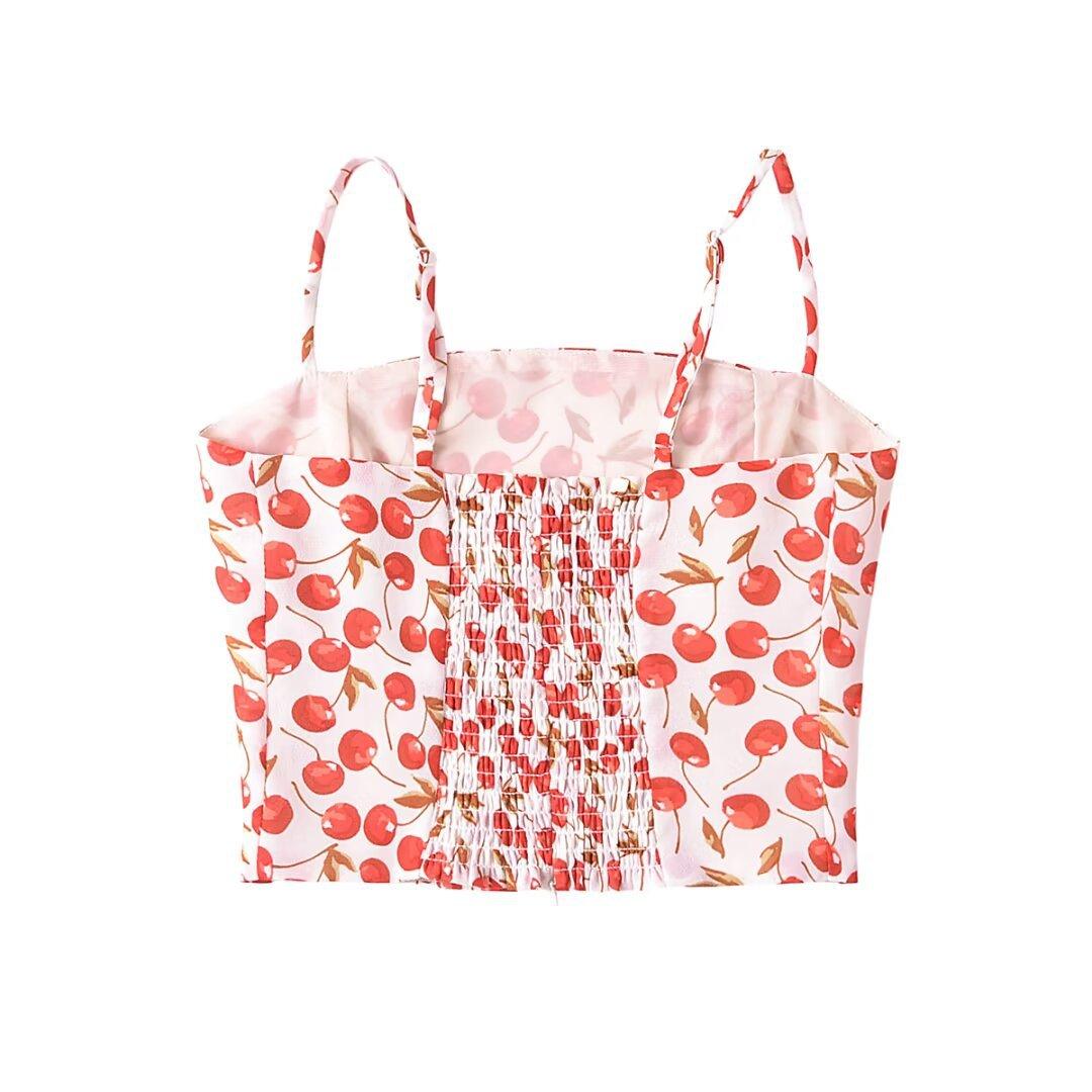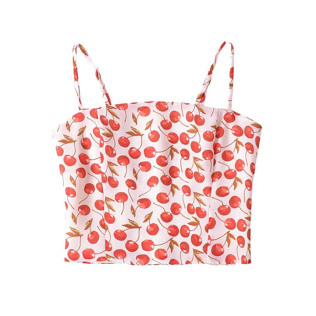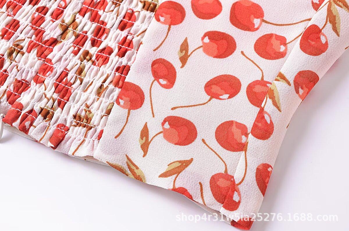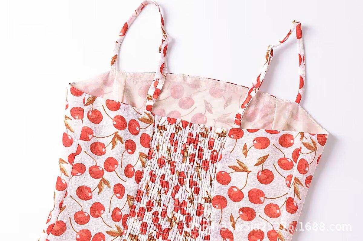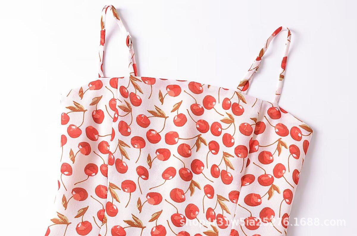 Nuevo camisola sexy adelgazante con estampado de cerezas retro francés europeo y americano primavera y verano 2024