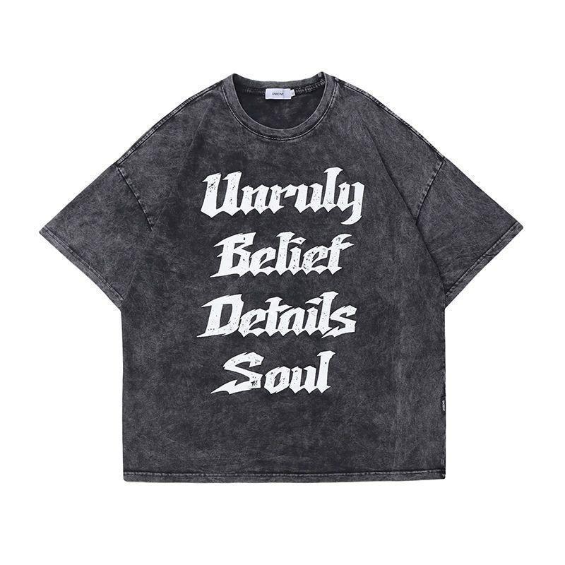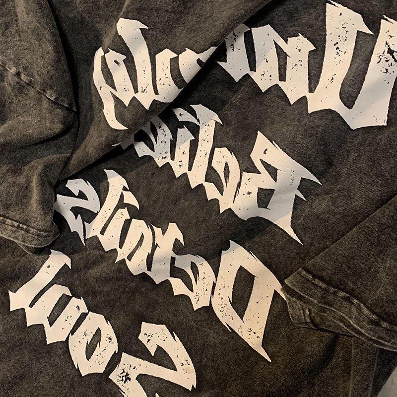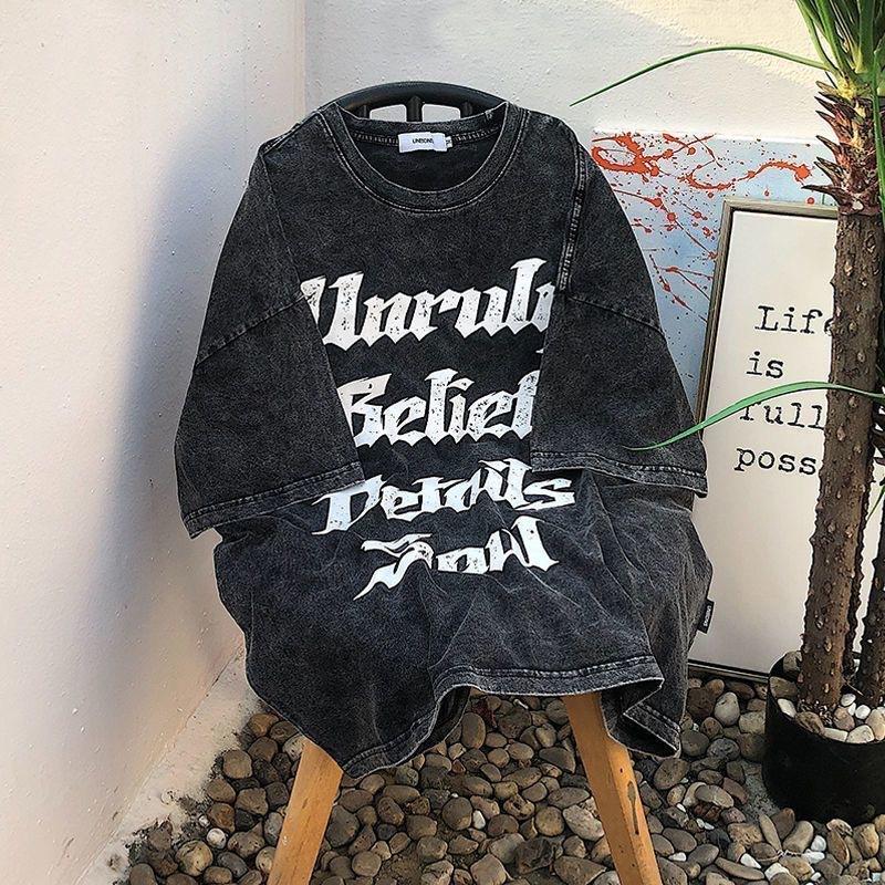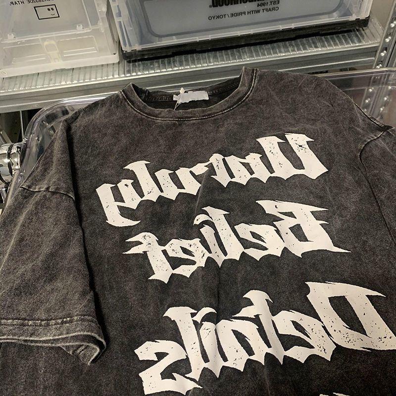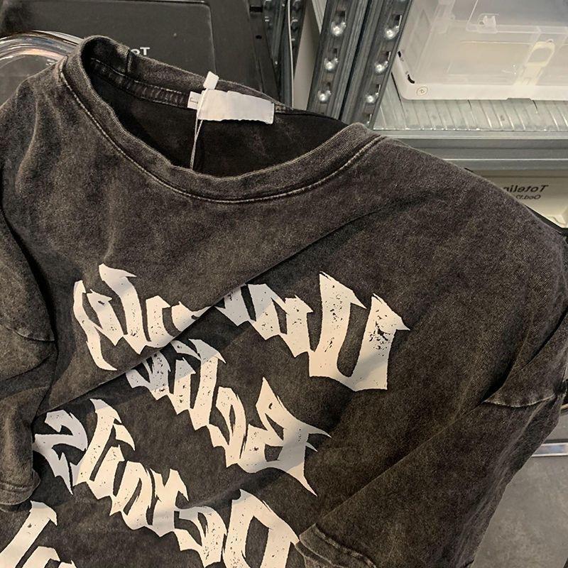 Camisetas de Manga Corta Lavadas y Desgastadas Estilo Hong Kong para Hombre y Mujer en Verano Americano Retro Marca Trendy con Letras Impresas Tops Holgados