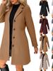 Ropa de Otoño 2025 Nueva para Mujer Europea y Americana Transfronteriza de Moda de Alta Gama Color Sólido Solapa Lana Estilo Inglés Chaqueta Abrigo para Mujer