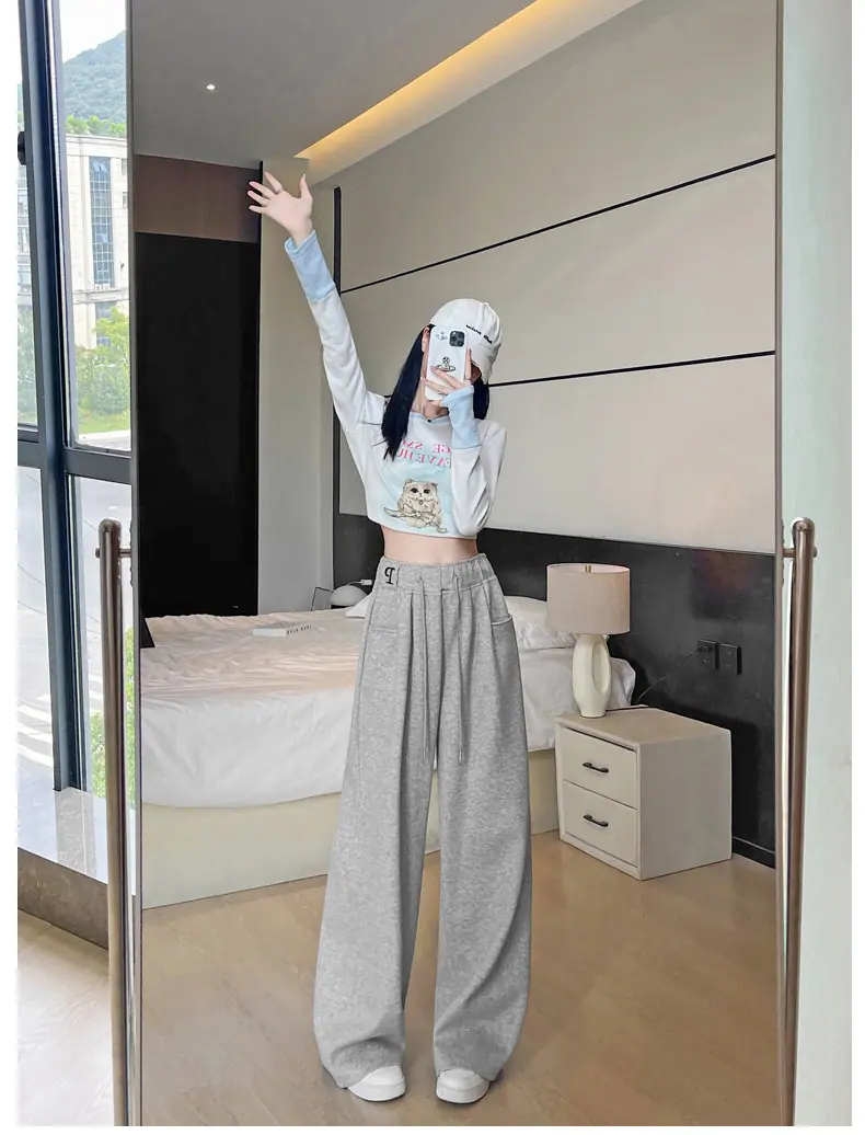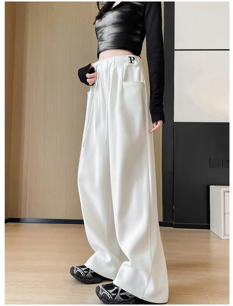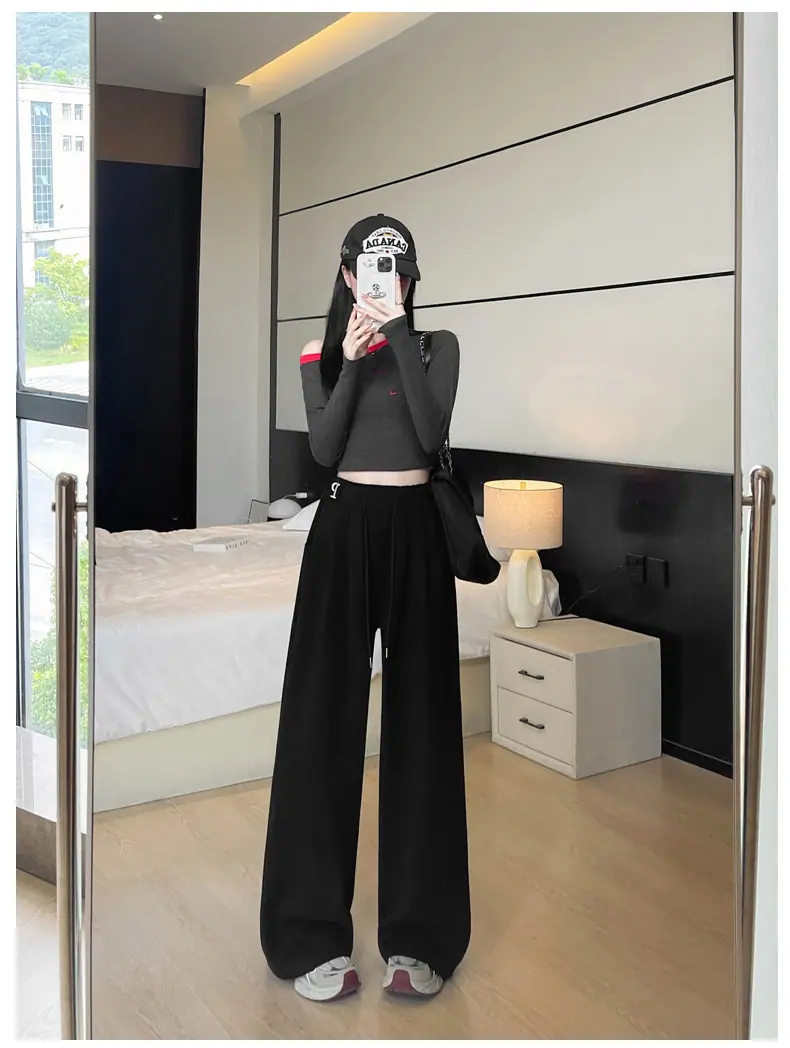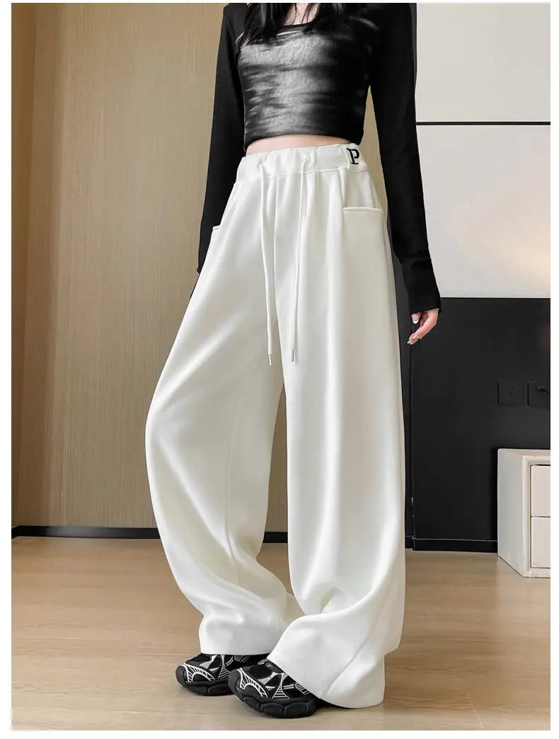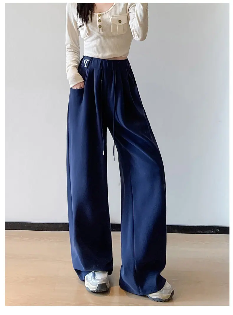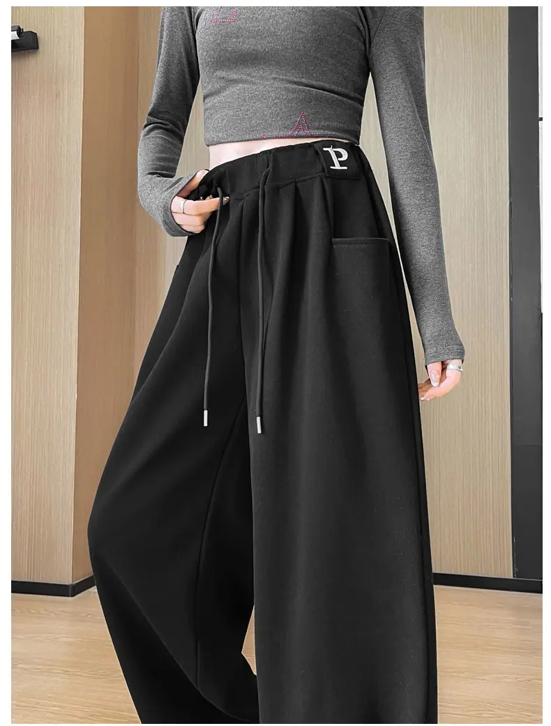 Pantalones deportivos estilo americano para mujer, primavera otoño, nuevos, cintura alta, holgados, de pierna ancha, adelgazantes, versátiles, de pierna recta, pantalones casuales