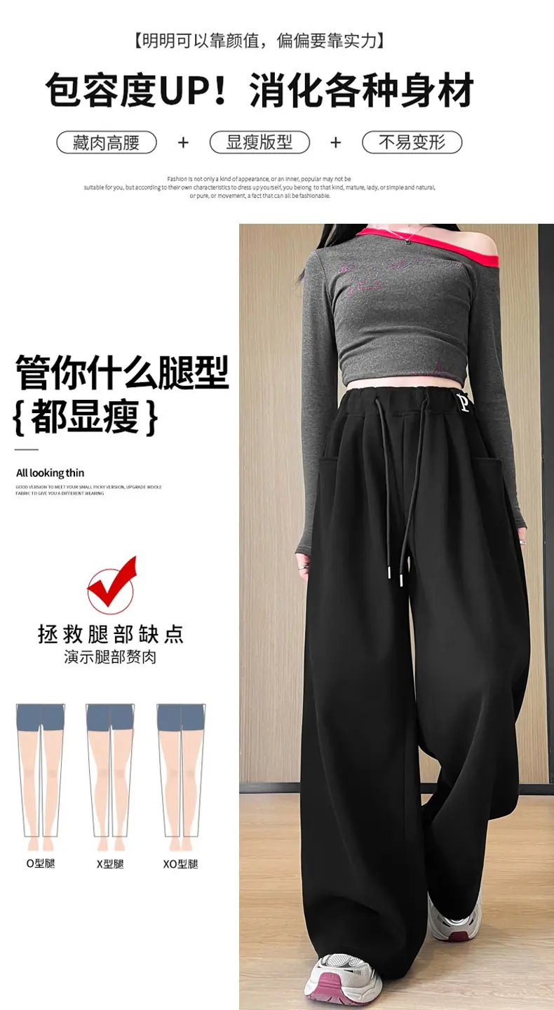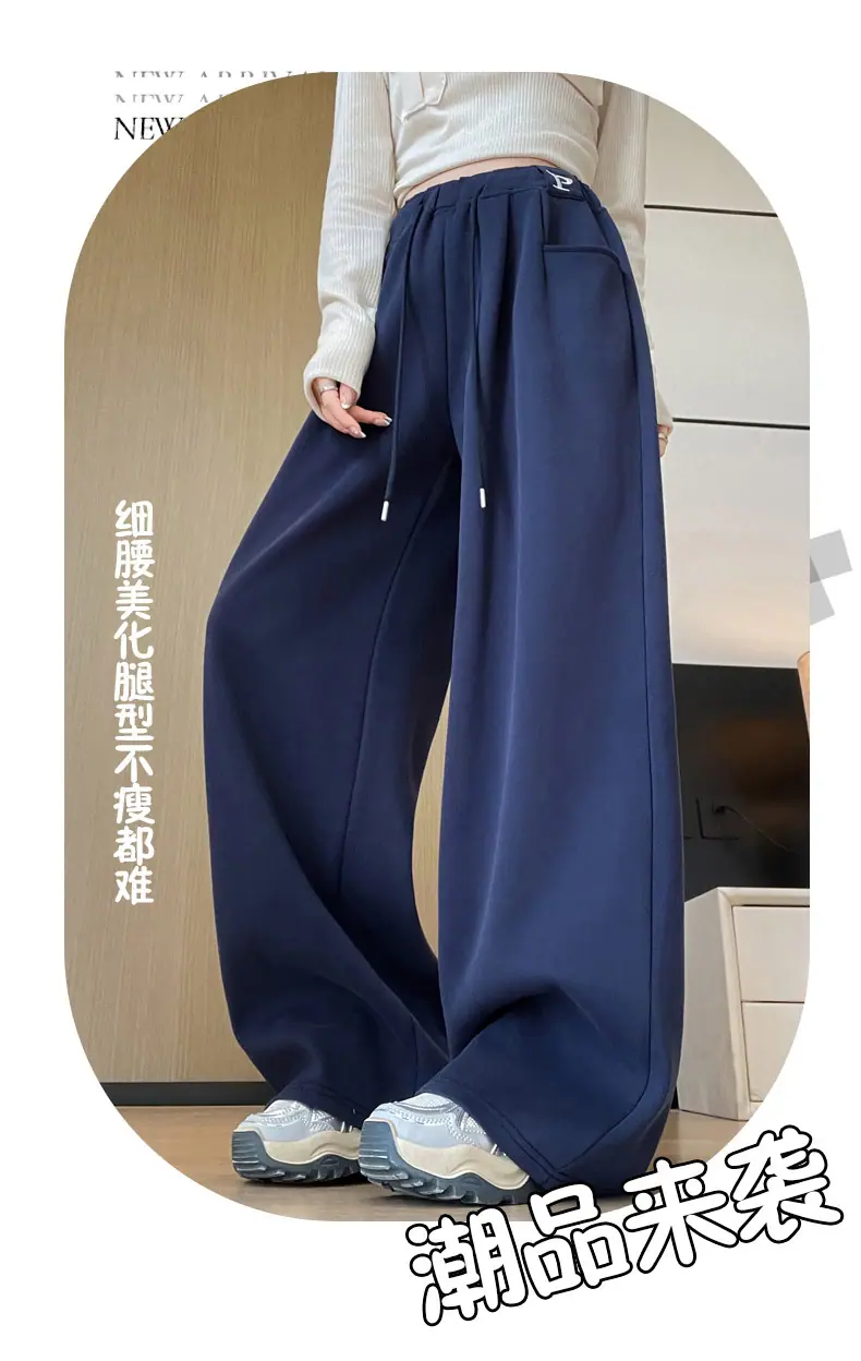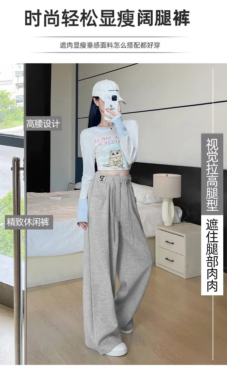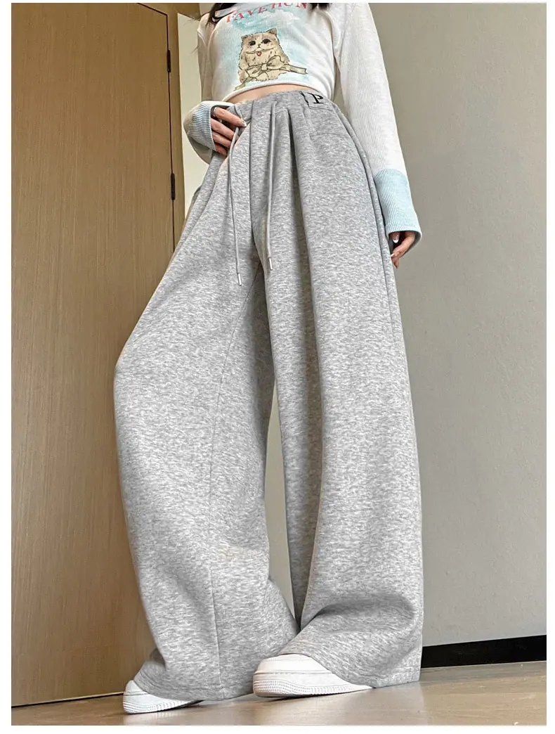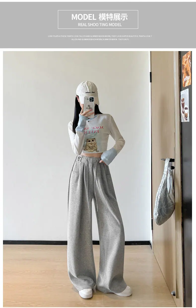 Pantalones deportivos estilo americano para mujer, primavera otoño, nuevos, cintura alta, holgados, de pierna ancha, adelgazantes, versátiles, de pierna recta, pantalones casuales