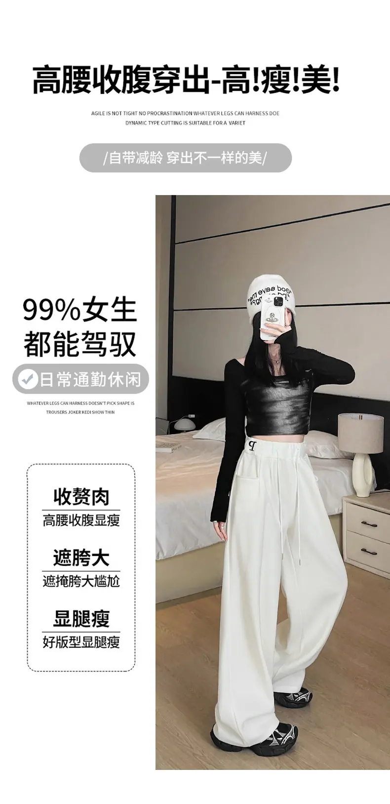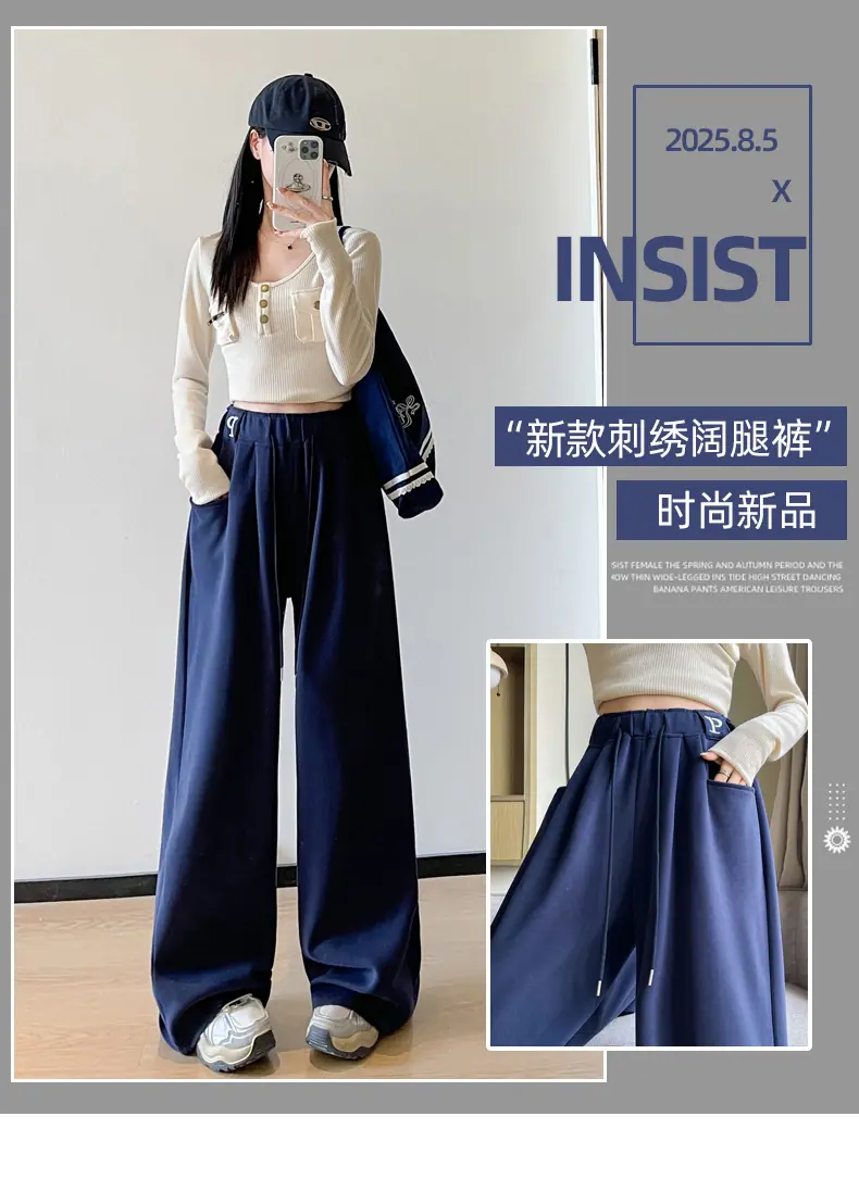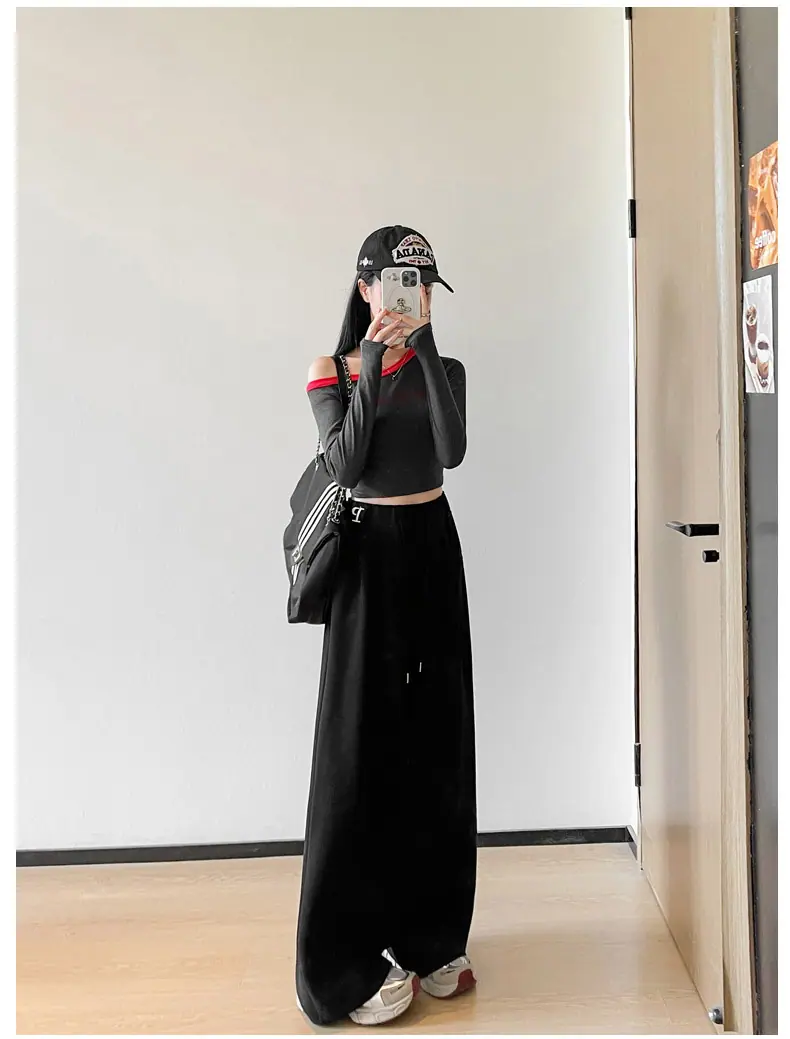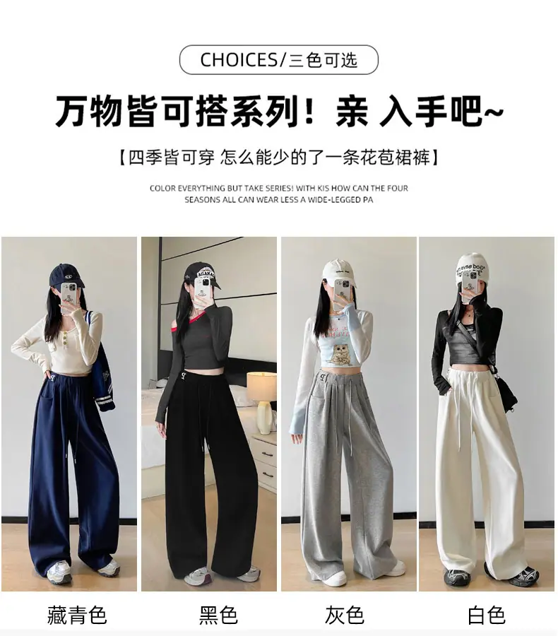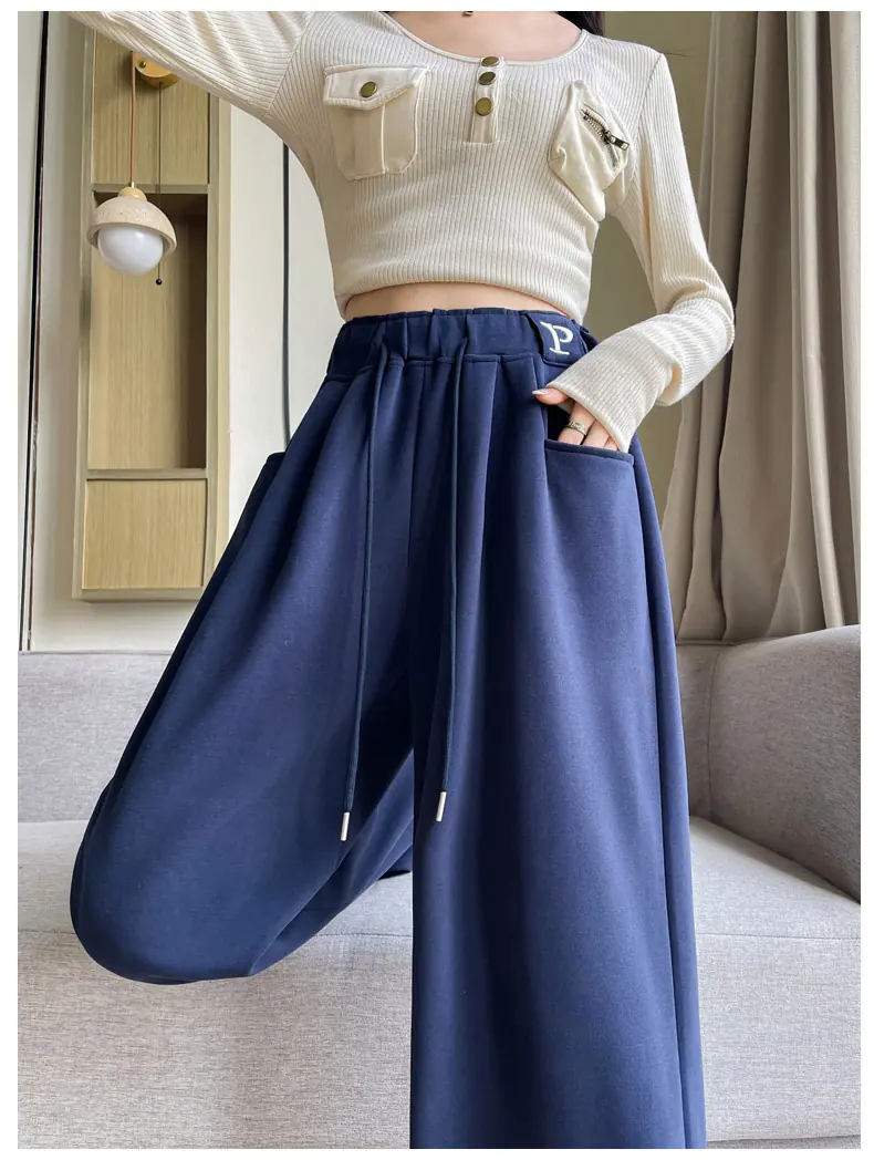 Pantalones deportivos estilo americano para mujer, primavera otoño, nuevos, cintura alta, holgados, de pierna ancha, adelgazantes, versátiles, de pierna recta, pantalones casuales
