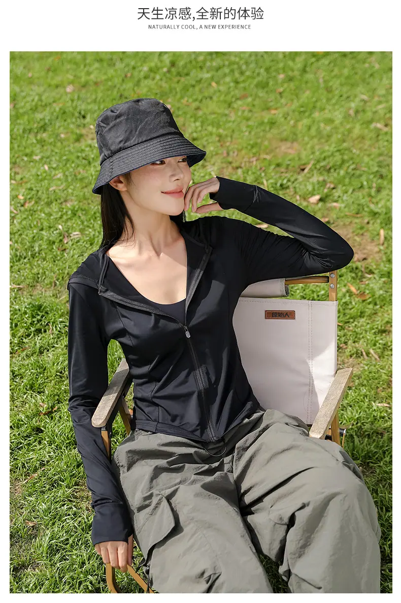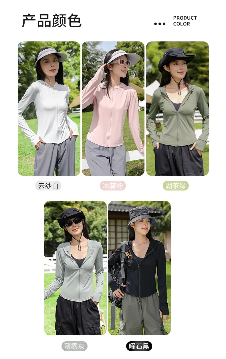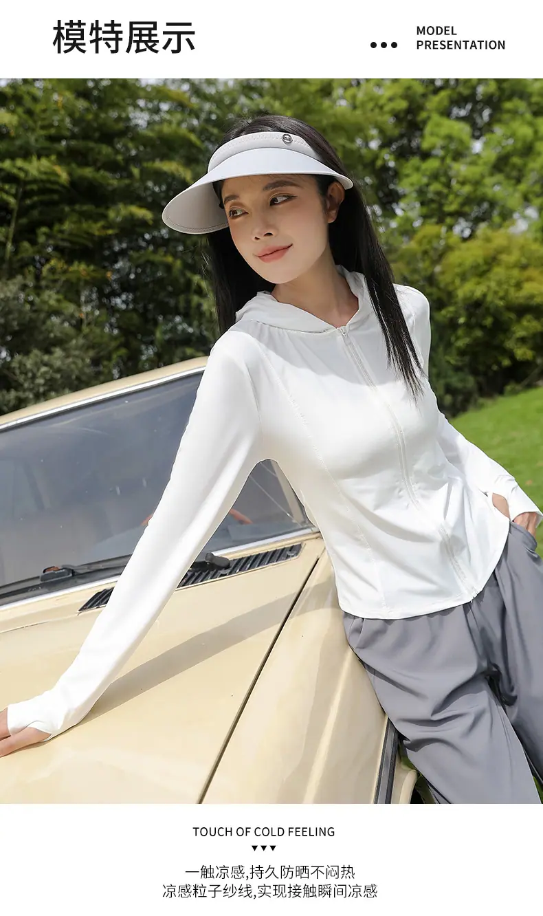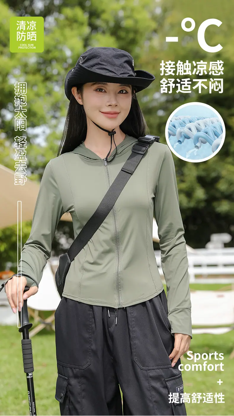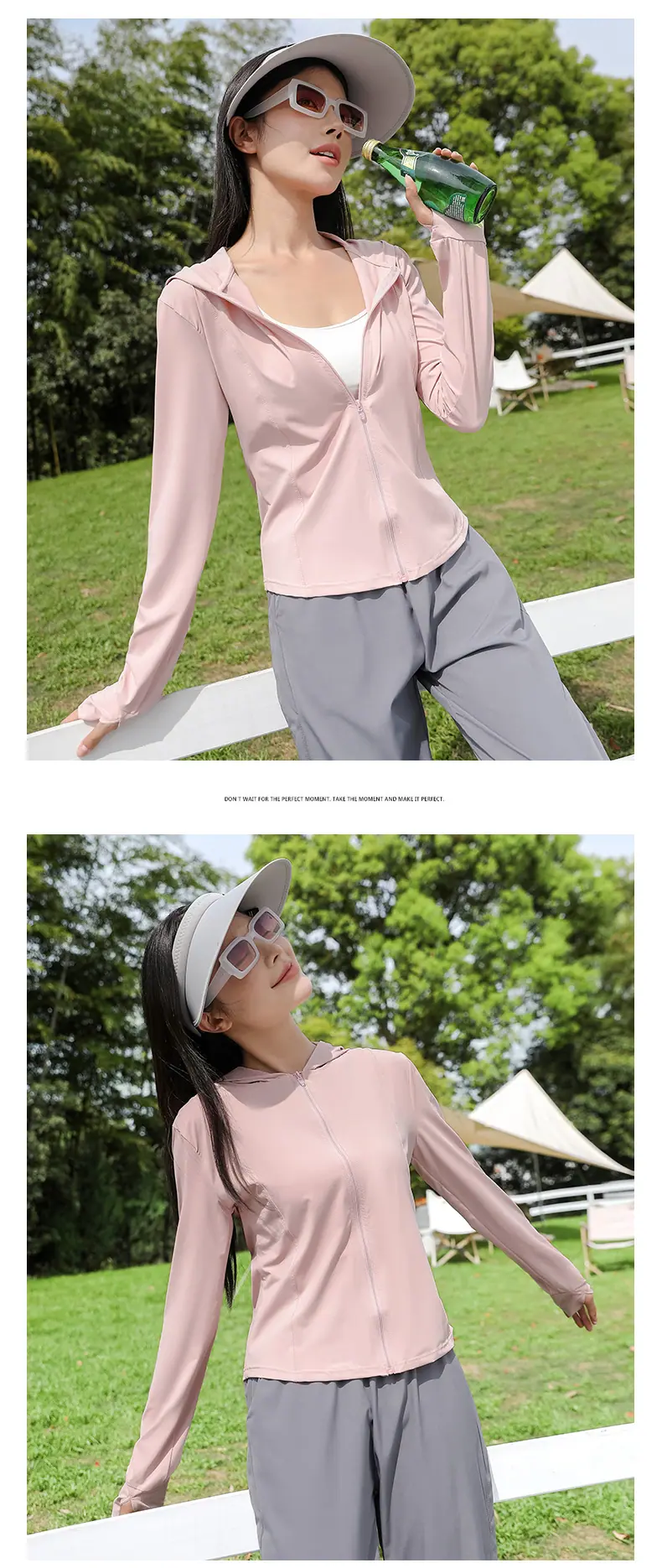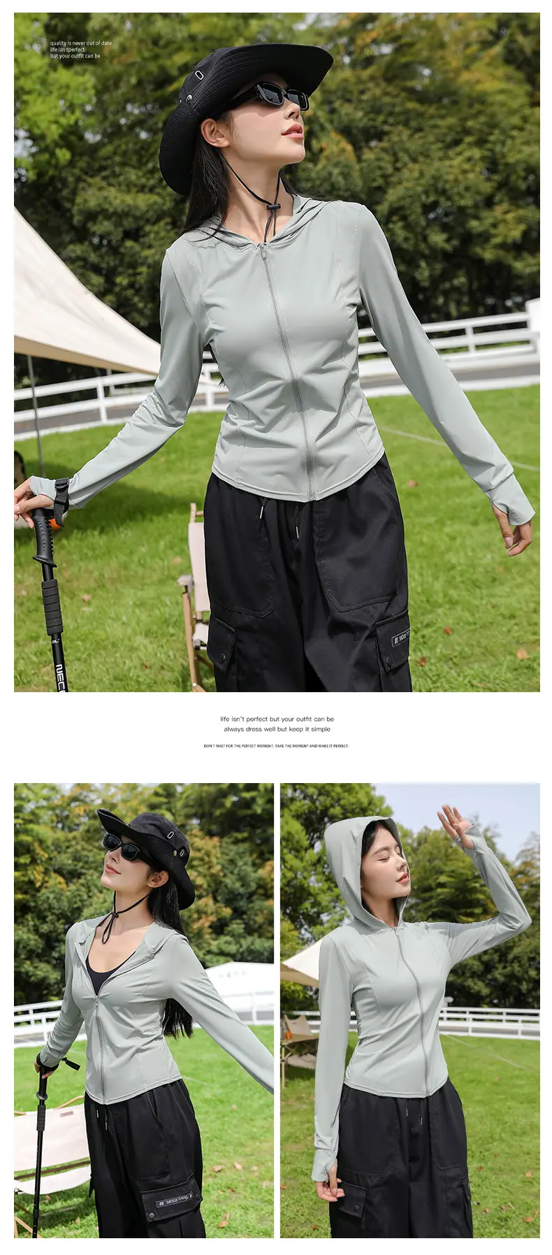 Ropa Transpirable de Seda de Hielo con Protección Solar Verano Nuevo Ligera de Secado Rápido con Capucha Ropa de Protección Solar Ajustada Anti-UV Chaqueta Deportiva