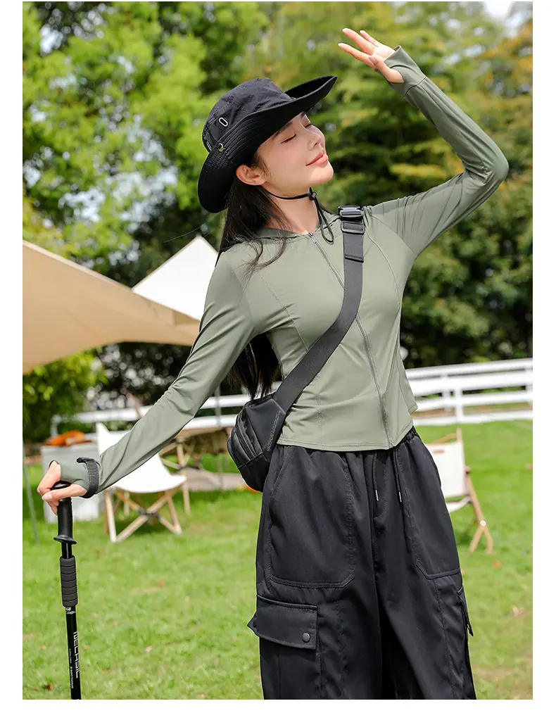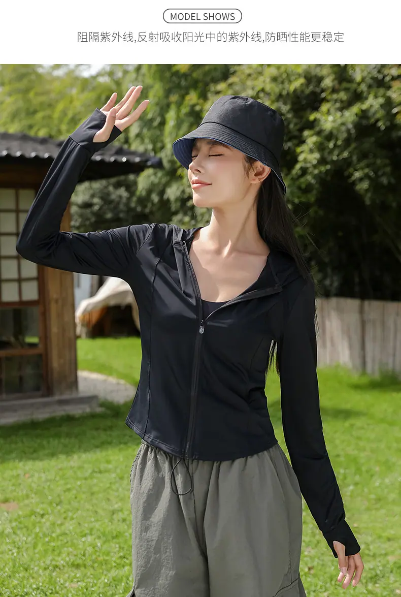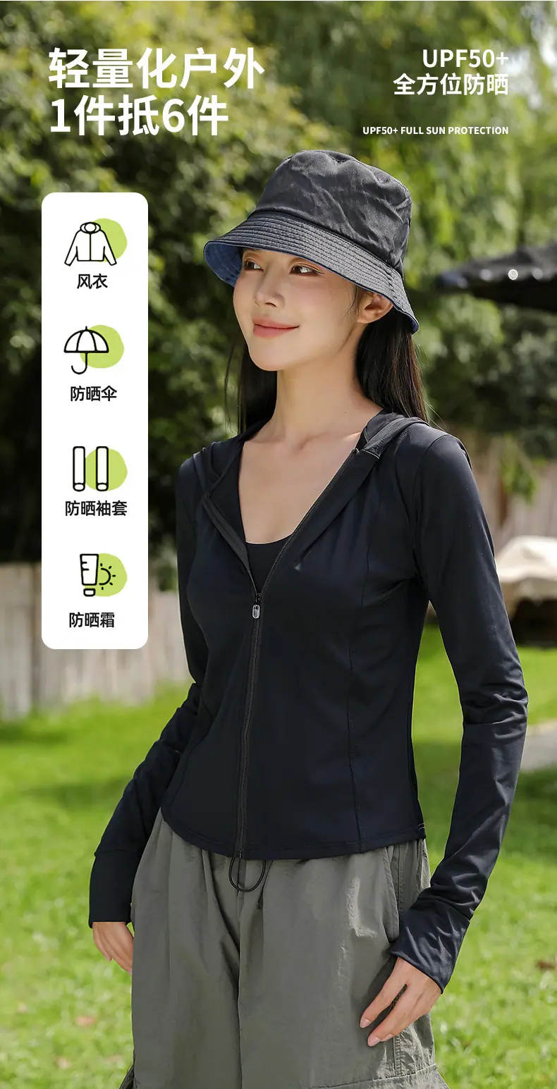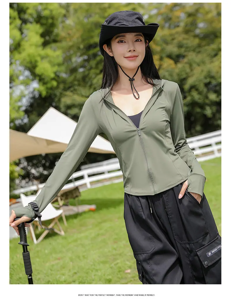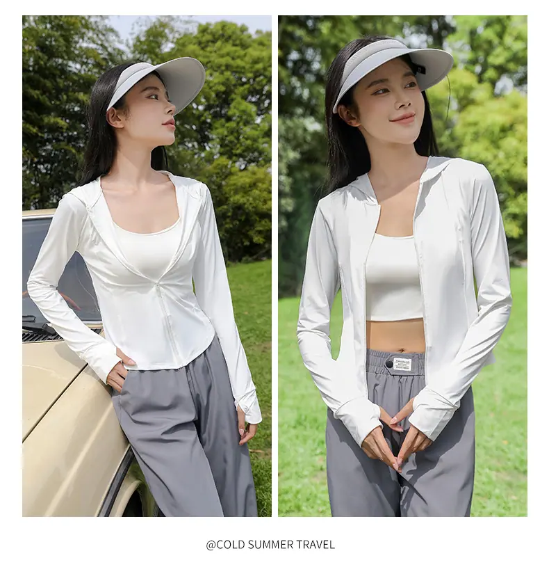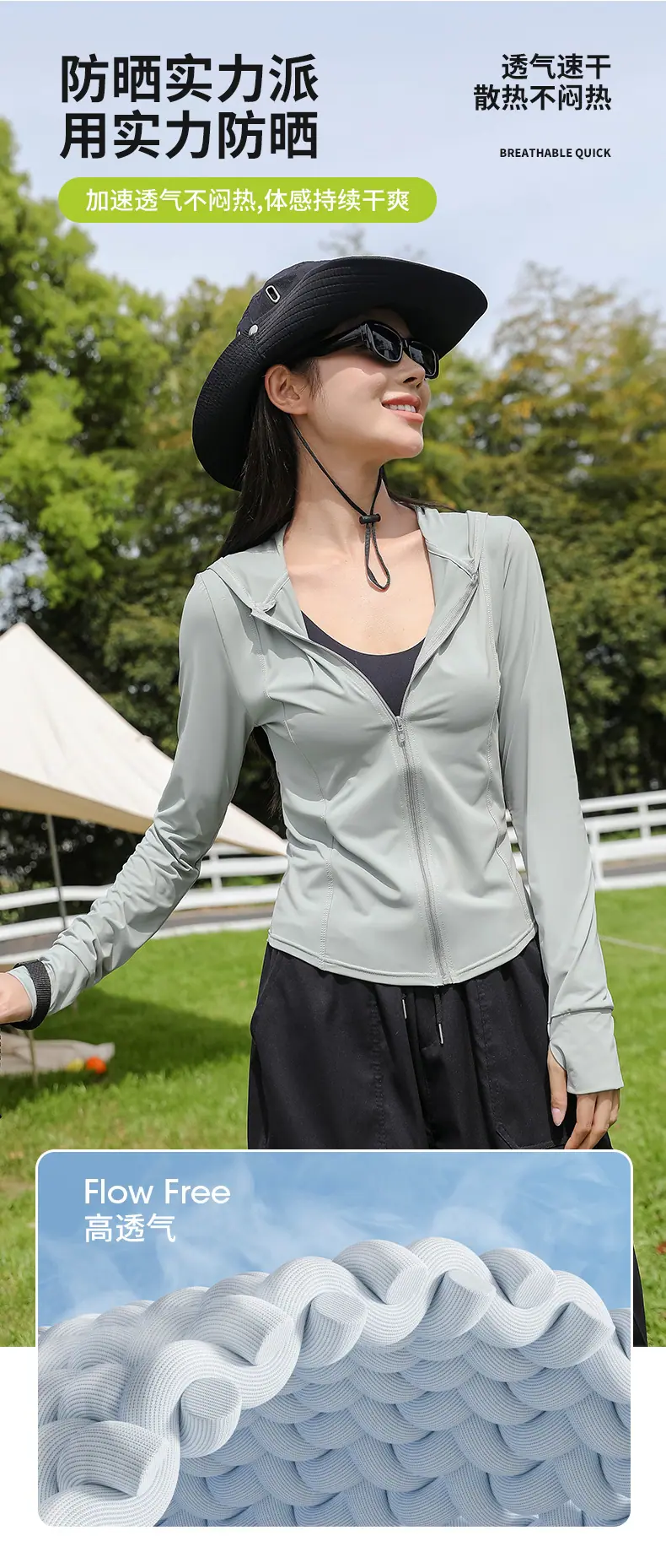 Ropa Transpirable de Seda de Hielo con Protección Solar Verano Nuevo Ligera de Secado Rápido con Capucha Ropa de Protección Solar Ajustada Anti-UV Chaqueta Deportiva