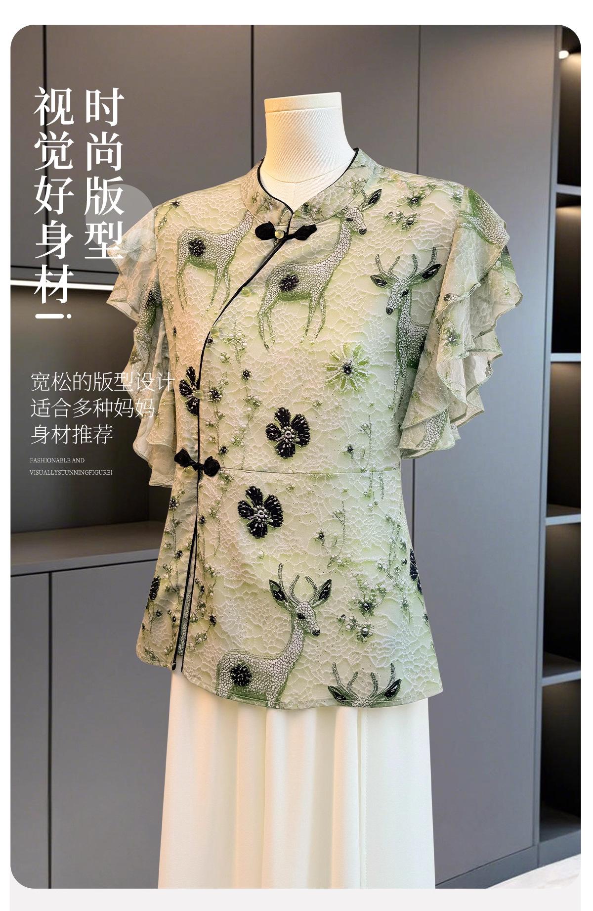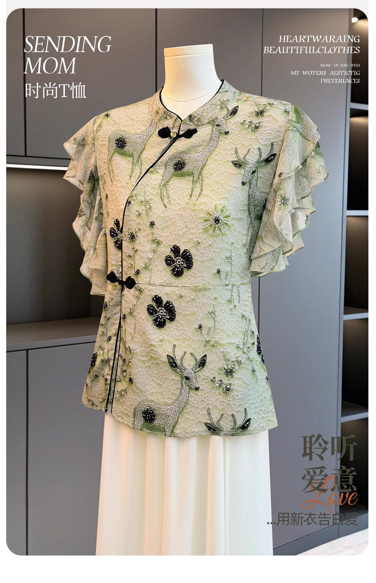 2025 Nuevo Estilo Ropa de Mamá Nuevo Estilo Nacional Moda de Verano Ropa para Mujeres de Mediana Edad y Mayores Elegante Conjunto de Camiseta Blusa Top
