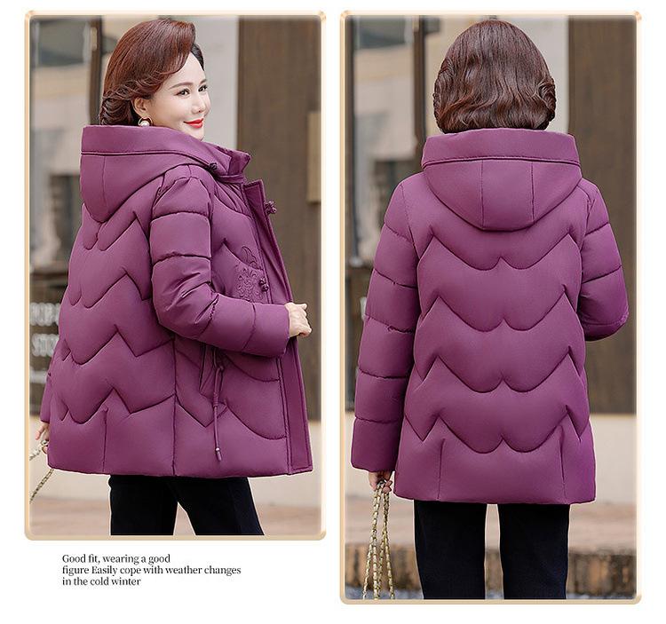 Abrigo de Invierno para Mamá de Algodón Acolchado para Mujer, Chaqueta de Algodón Gruesa y Cálida, Abrigo Holgado de Talla Grande para Edad Media y Avanzada