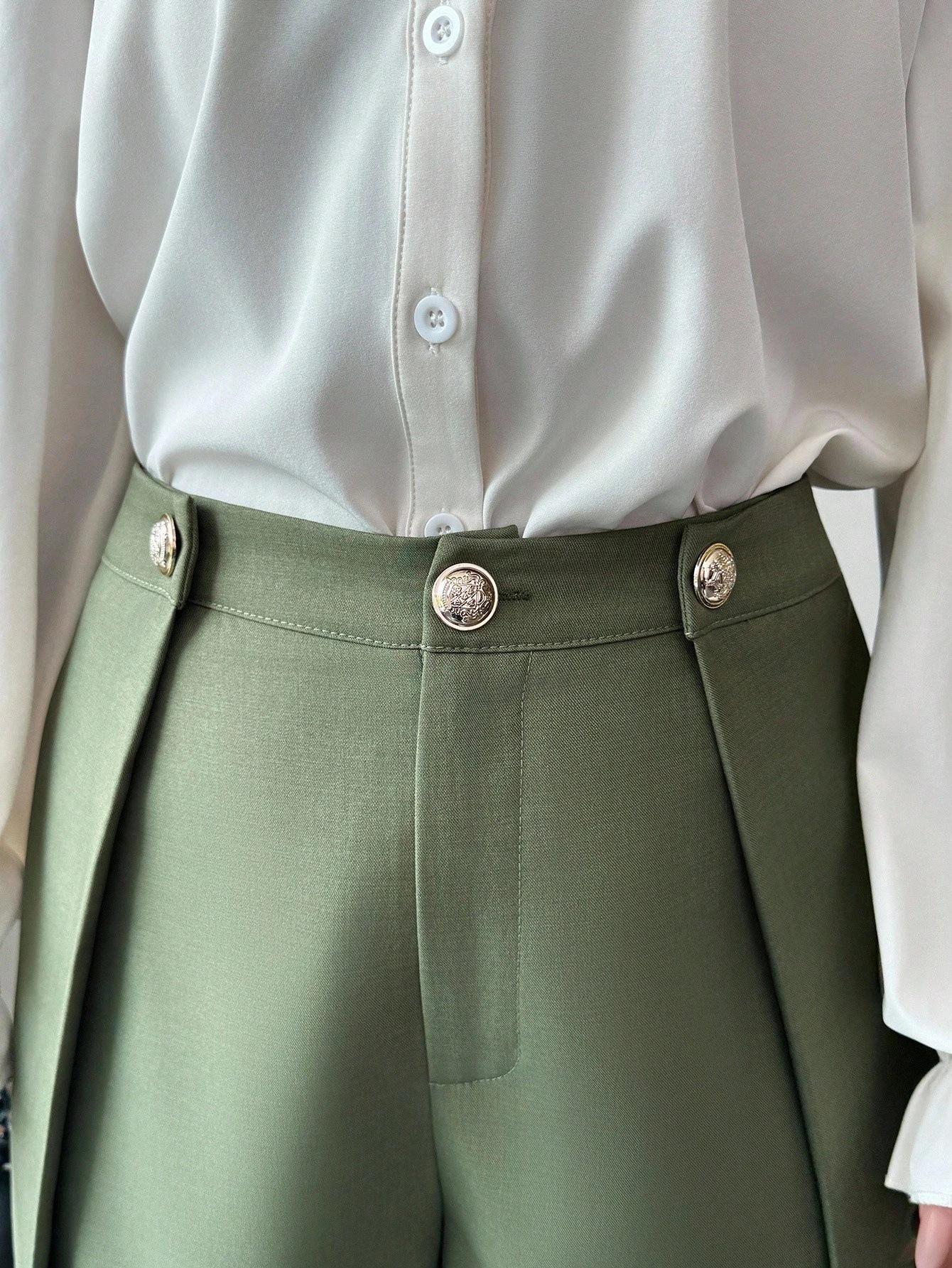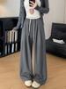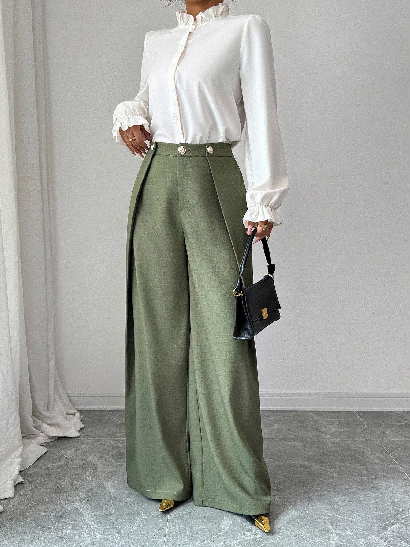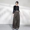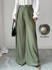 Pantalones Casuales Elegantes de Pierna Ancha Plisados para Mujer Estilo Otoño Drapeados Sueltos de Pierna Recta Pantalones Occidentales Silueta Vintage