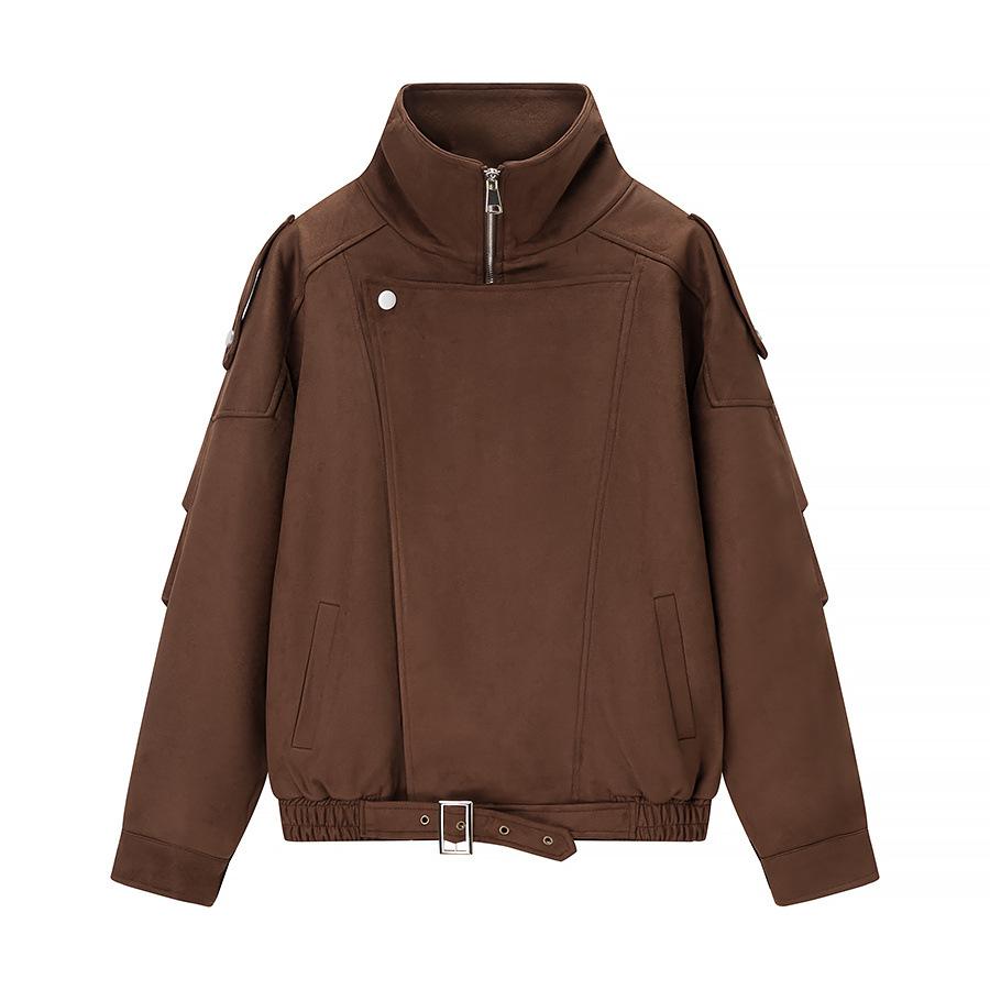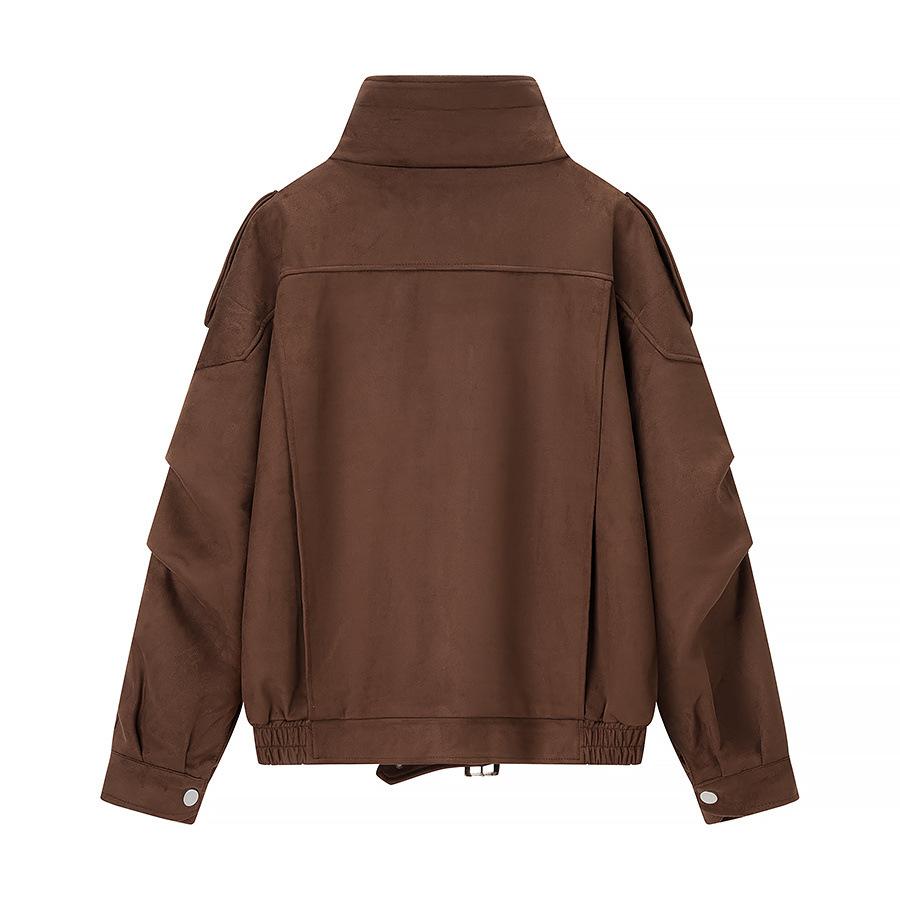 Europa y América transfronterizo 2025 Otoño Nuevo Ropa de Mujer Maillard Moda Retro Casual Gamuza Suelta Chaqueta Abrigo para Mujer