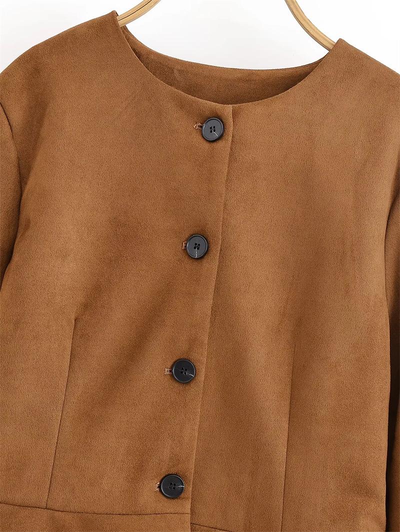 2025 Otoño Estilo Europeo y Americano Moda Cuello Redondo Un Botón Chaqueta Exterior Temperamento Top 6318232