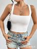 Camisola Corta de Punto con Cuello Cuadrado Blanco Transfronteriza Europea y Americana para Mujer Ropa Exterior Verano 2025 Sin Mangas Top Interior