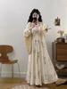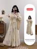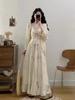 Vestido de Temperamento Francés de Alta Gama de Talla Grande para Mujer Primavera y Otoño Nuevo Vestido Largo Retro Cárdigan de Punto de Manga Larga Conjunto de Dos Piezas